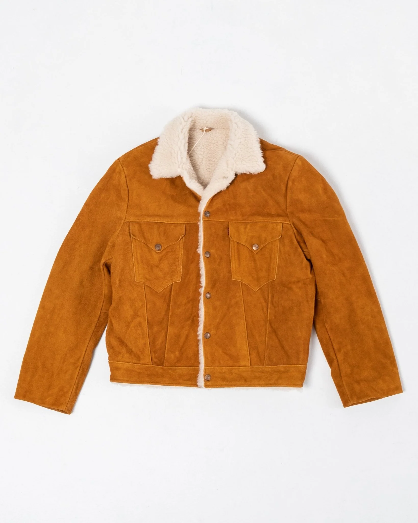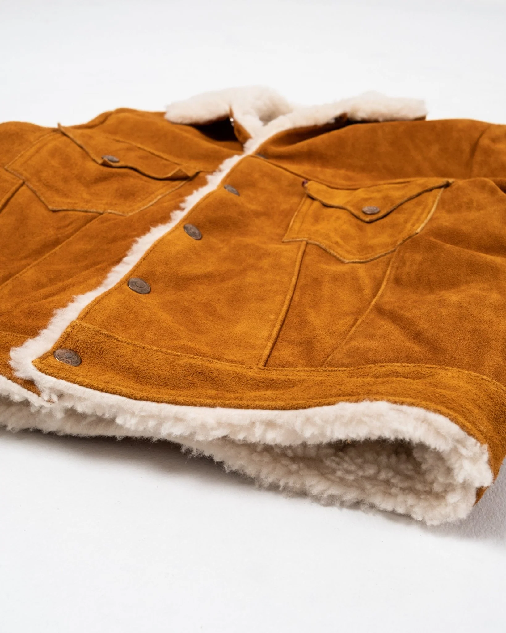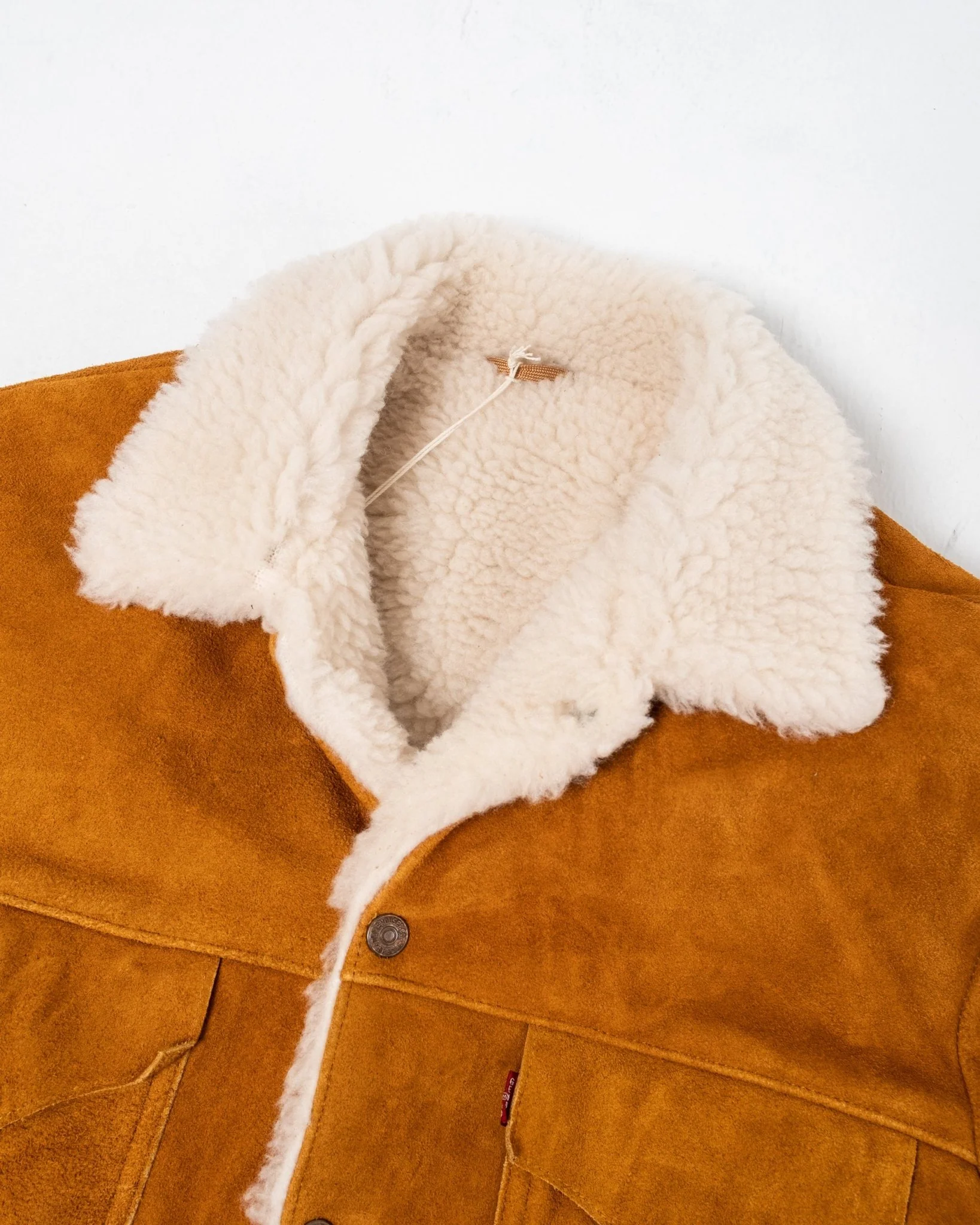 Belle veste de ranch en daim dans une belle cuve de vache. Avec un front de bouton slim classique et de bouton-instant. Terminé avec deux poches de poitrine, un ourlet réglable et une languette de logo sur la poche gauche. Le corps est entièrement bordé d’une toison boa en acrylique moelleuse pour vous garder au chaud. Fait au Japon.
