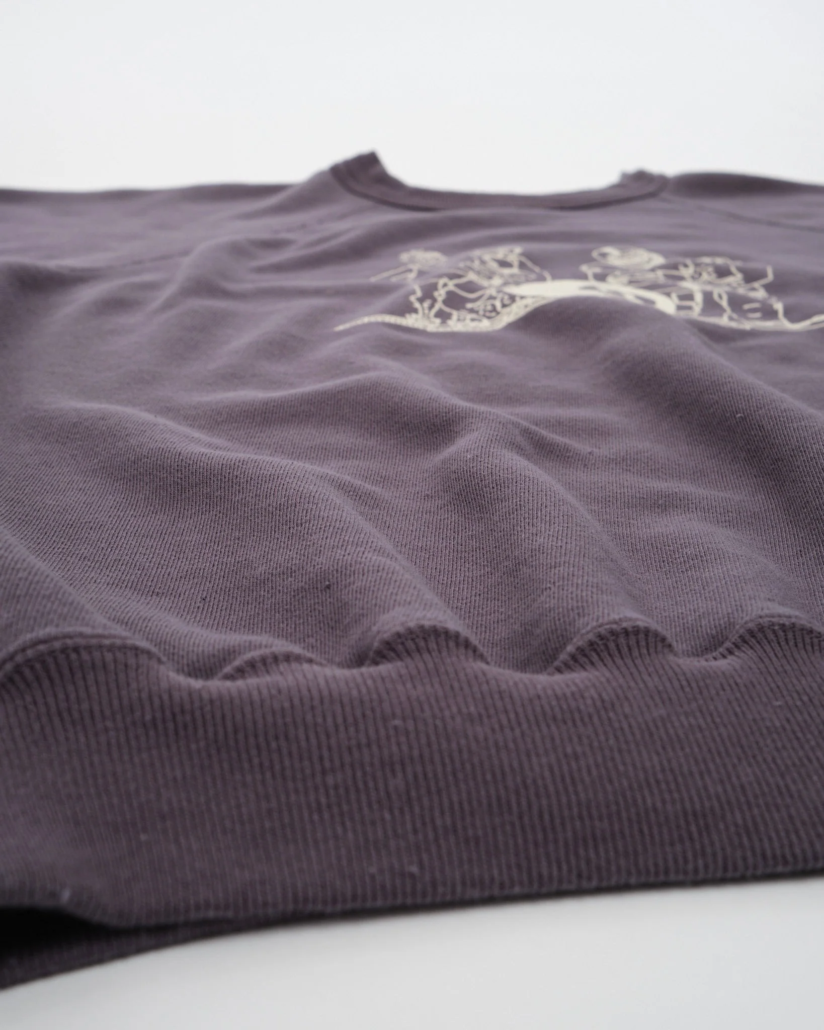 Exploitant les connaissances des vêtements d’occasion, des techniques d’impression avancées ont été utilisées pour recréer les imperfections des articles vintage, tels que les fausses de tissus et les distorsions d’impression. La taille distinctive du vêtement reflète parfaitement les proportions insaisissables de vêtements vintage. Uniquement, cette pièce n’a pas de finition brossée sur son tissu à roues en boucle, offrant une sensation rafraîchissante qui est particulièrement appréciée dans le climat du Japon.
