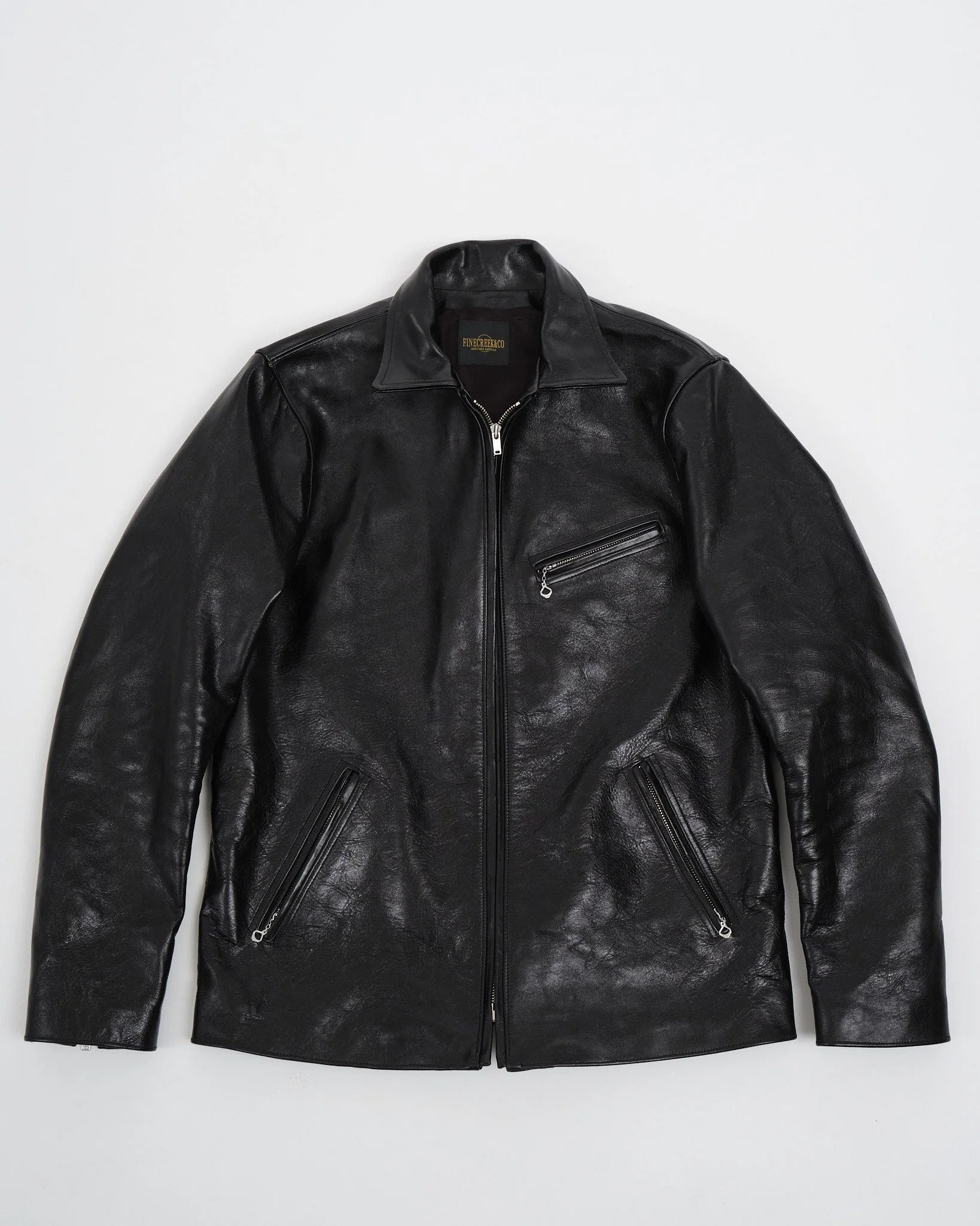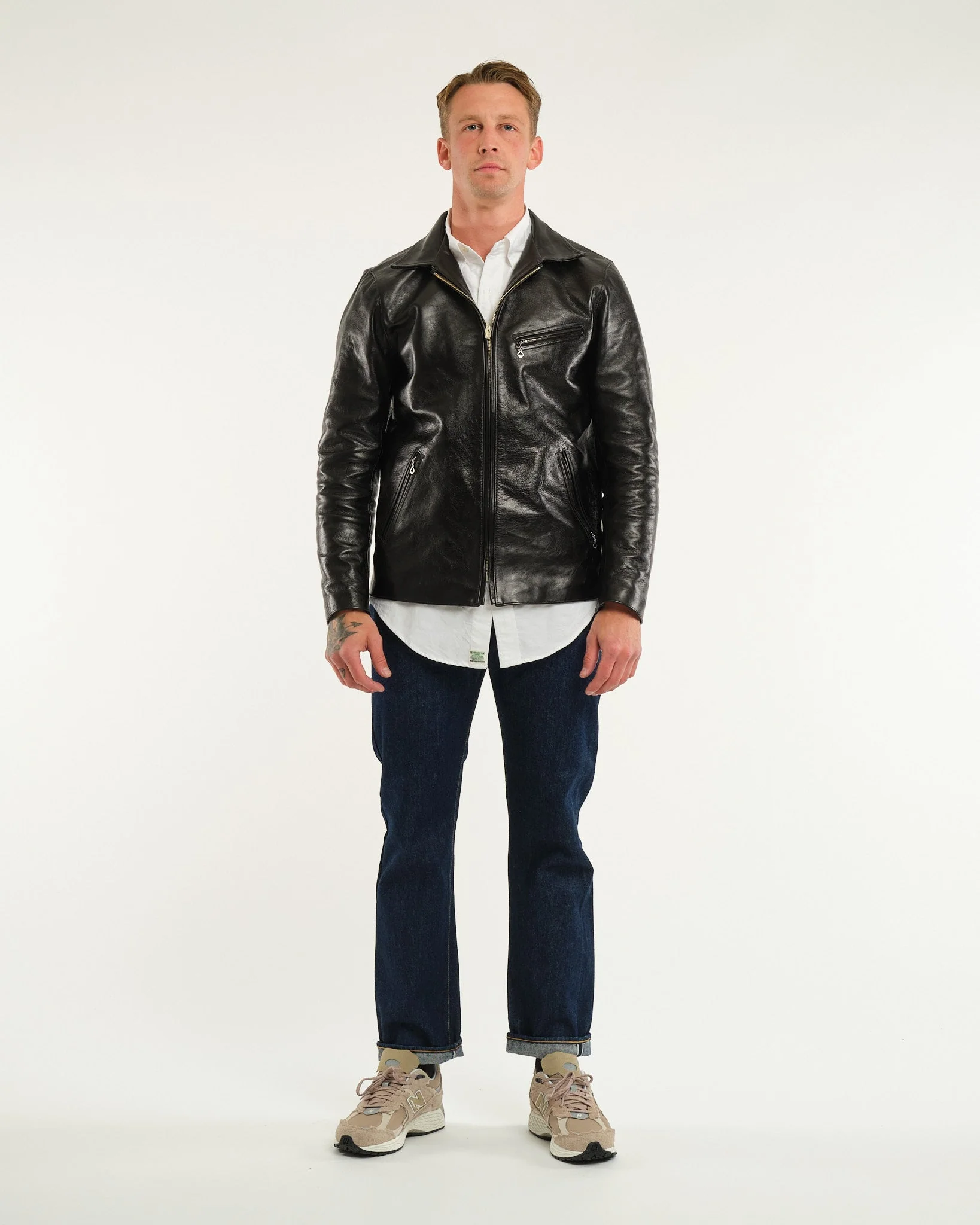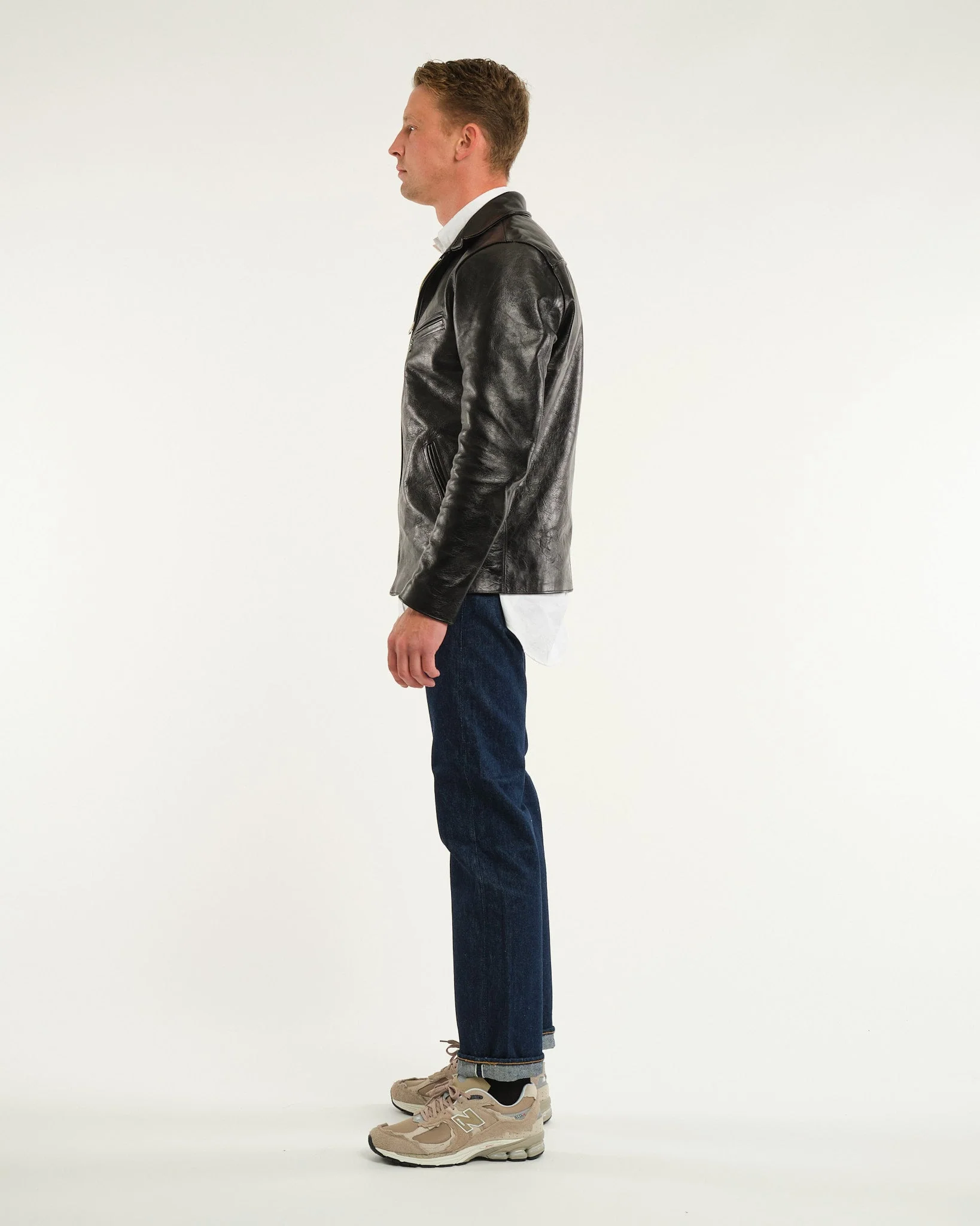La veste est fabriquée à partir de 1,3 mm d’épaisseur et en cuir en tannant en légumes complet qui présente un mélange captivant de robustesse et de souplesse. Sa finition teinte accentue les qualités naturelles du cuir, lui donnant un éclat lumineux et présentant les subtilités du grain et des rides subtiles.