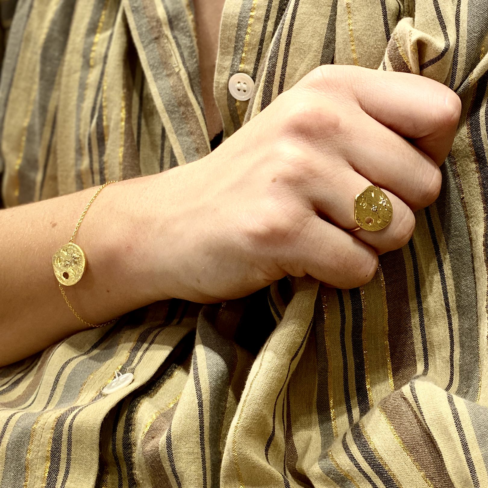 La médaille à la fois ethnique et précieuse se pose parfaitement sur les doigts.