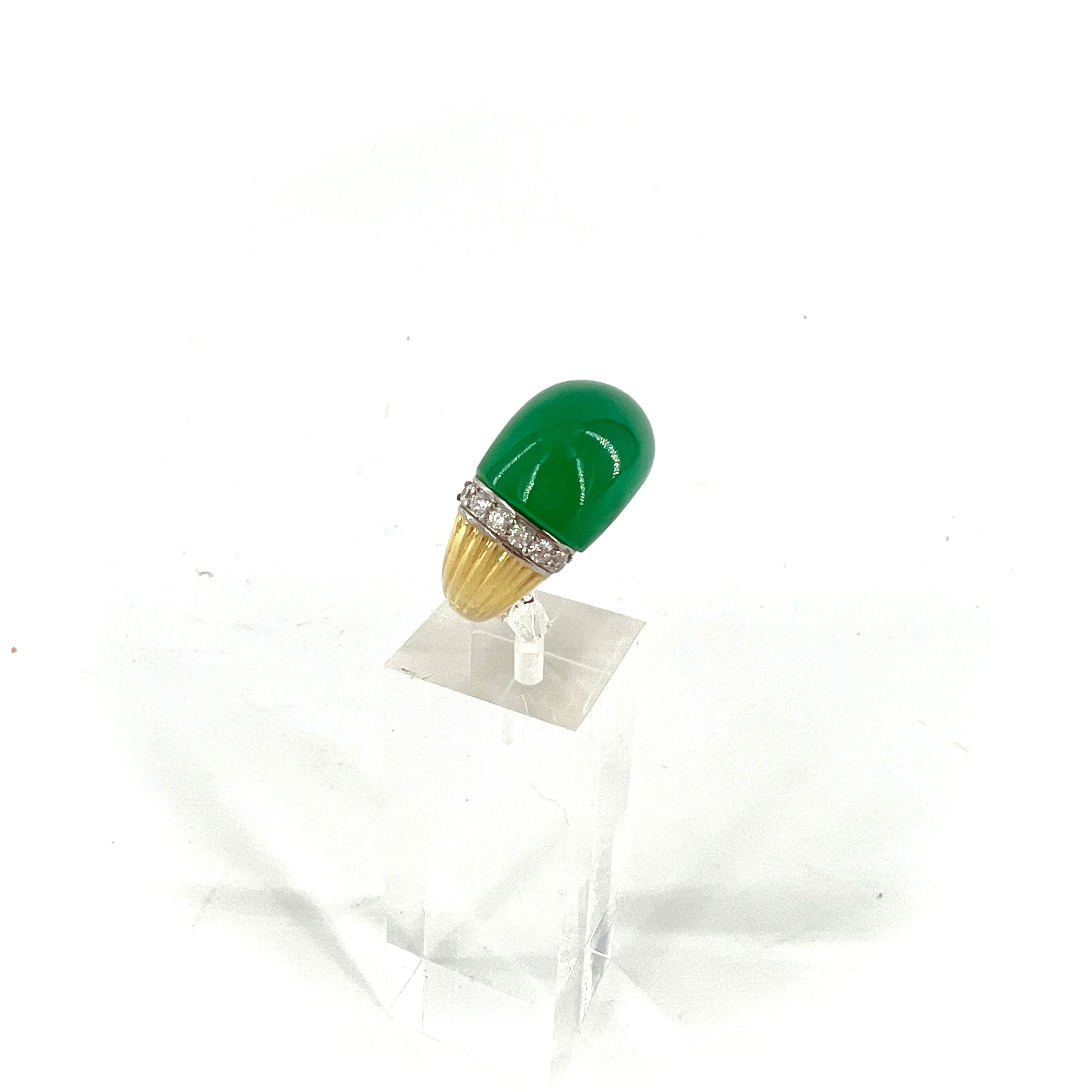 Cette bague, en Plaqué Or, se compose d’un Onyx Vert cabochon agrémenté de zirconiums.