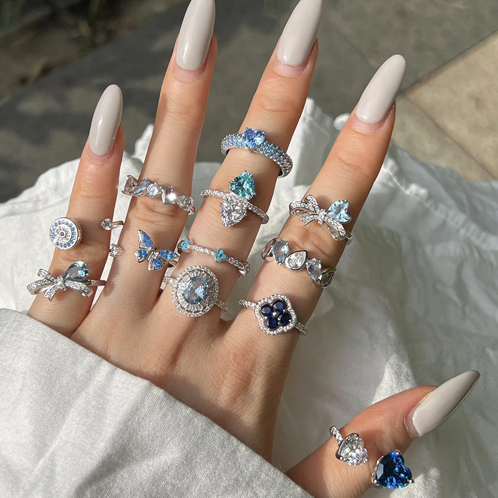 Bague Argent 925 Femme Zircon Bleu Océan – Sterling Silver Élégante Mode