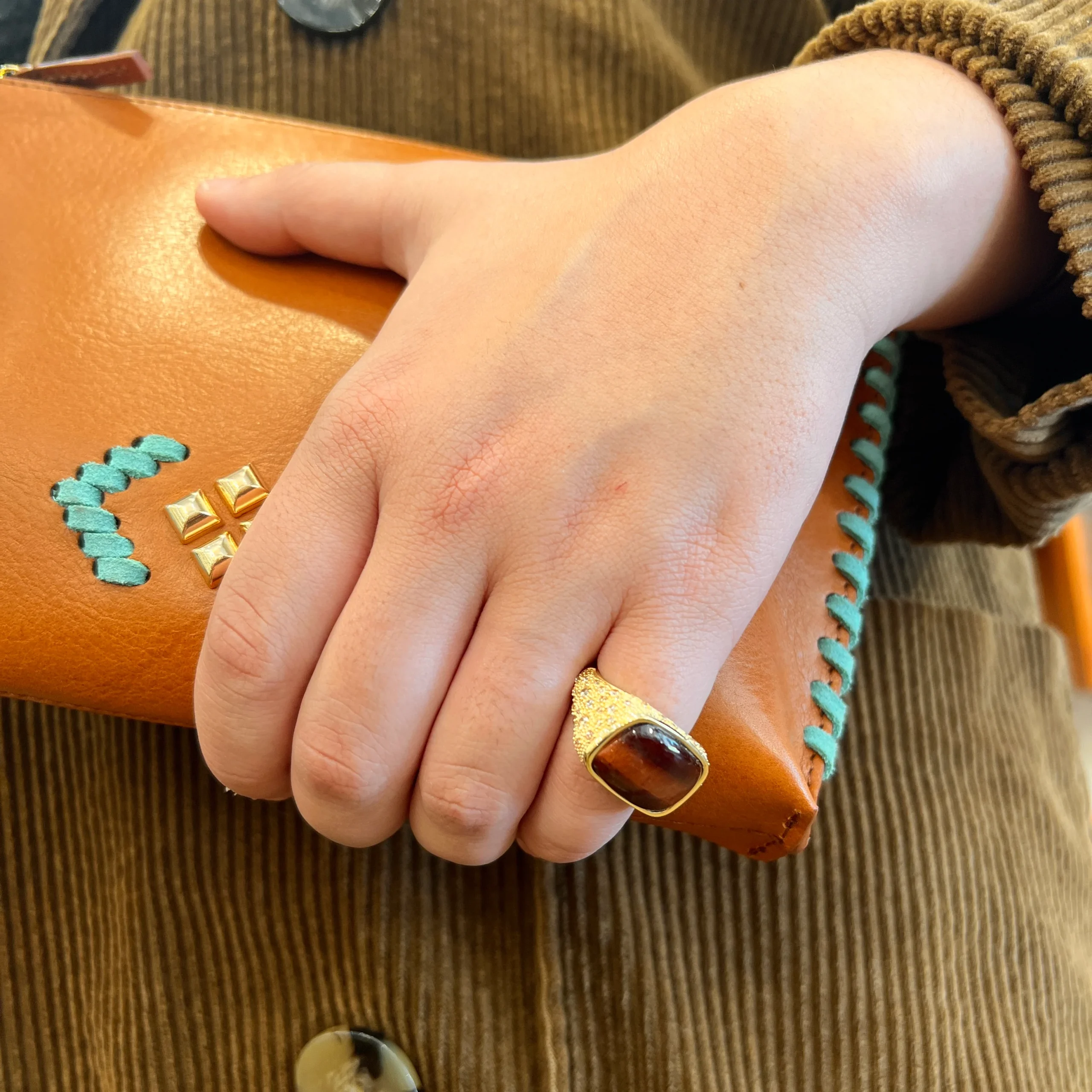 Bague EMPREINTE en Oeil de Tigre et Plaqué Or