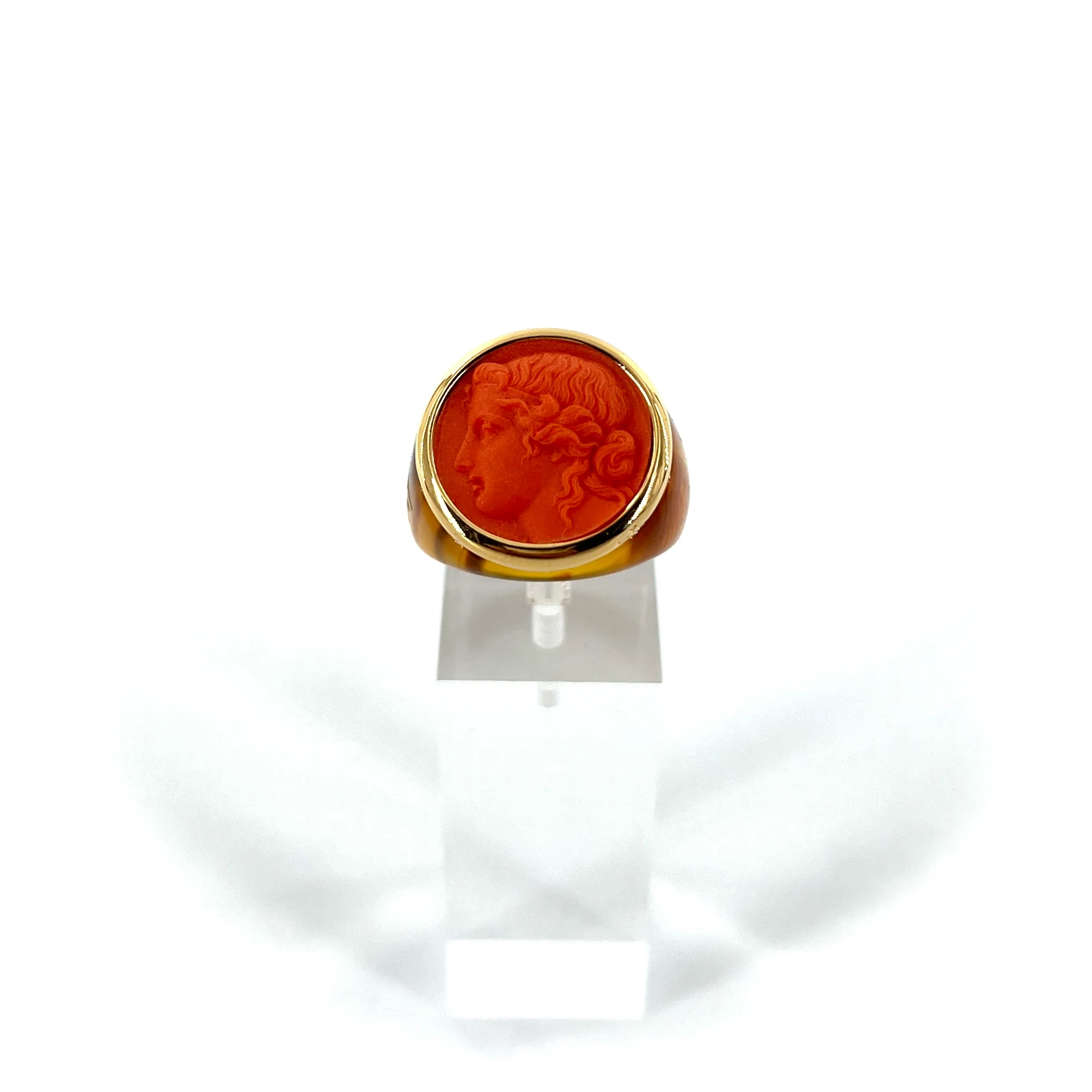 Bague Ronde en Plexiglas Tortoise et Résine Orange Motif Statue Grecque