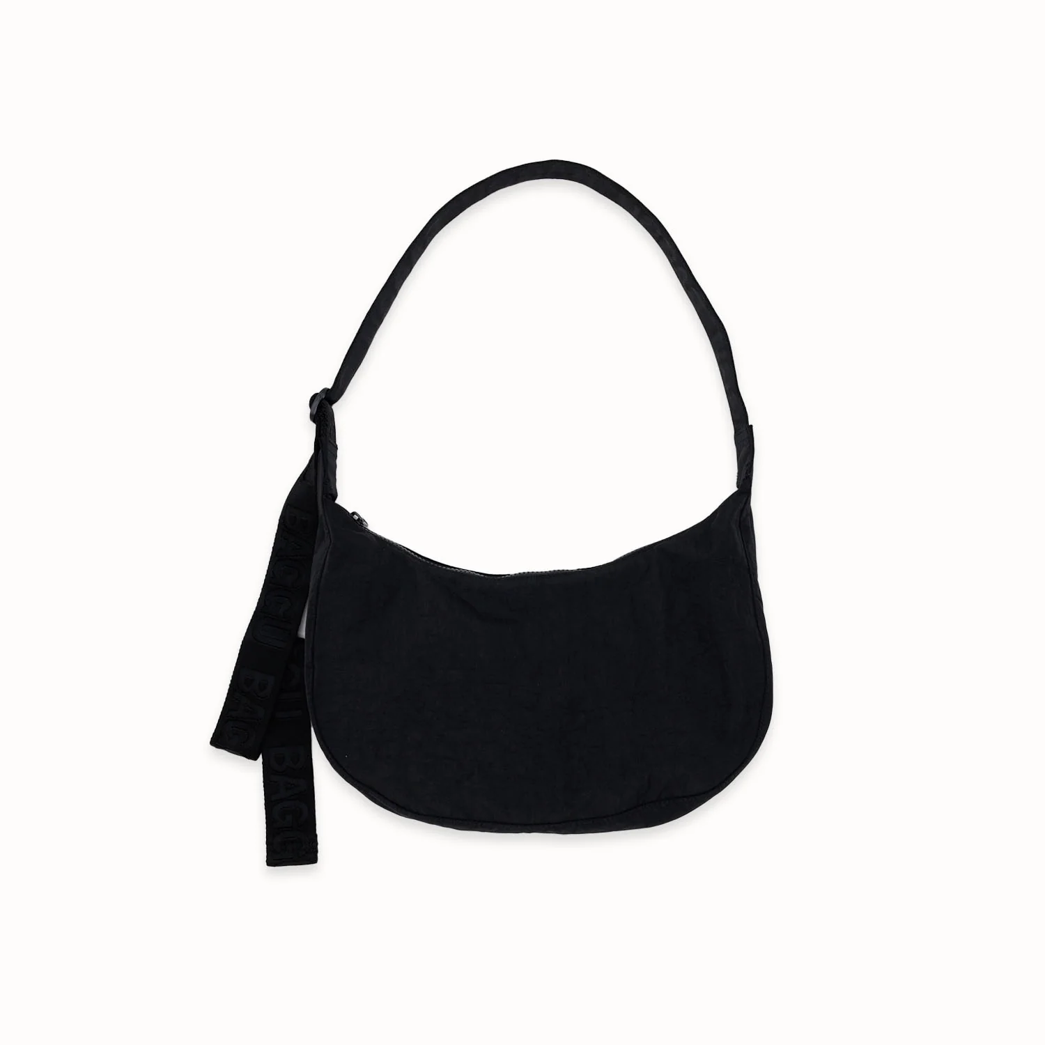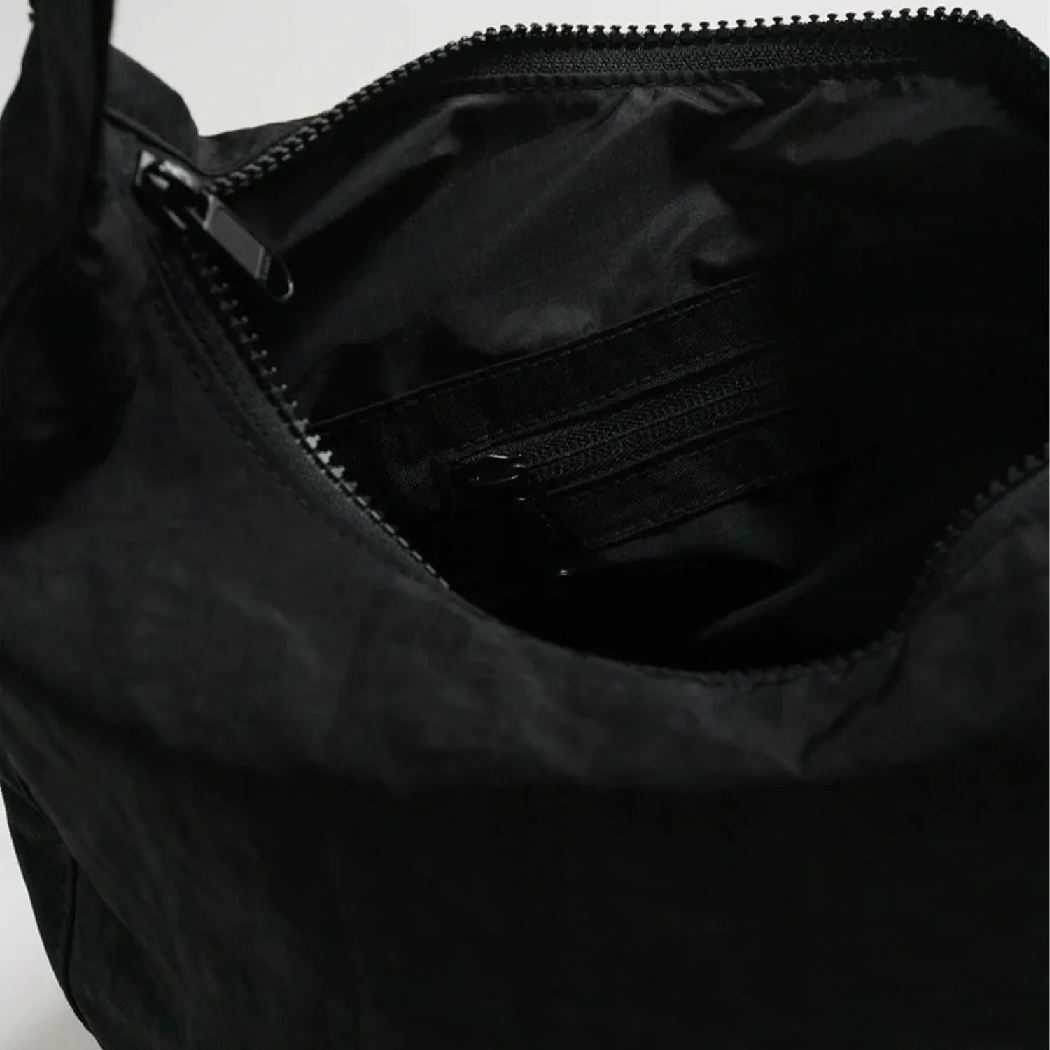 Le pratique ne doit pas nécessairement être ennuyeux ! Le sac croissant en nylon de chez Baggu est décontracté et suffisamment grand pour transporter plus que l’essentiel. Portez-le à l’épaule en bandoulière pour avoir les mains libres. La bandoulière réglable et les deux poches intérieures facilitent l’organisation et rendent le sac super pratique au quotidien.
