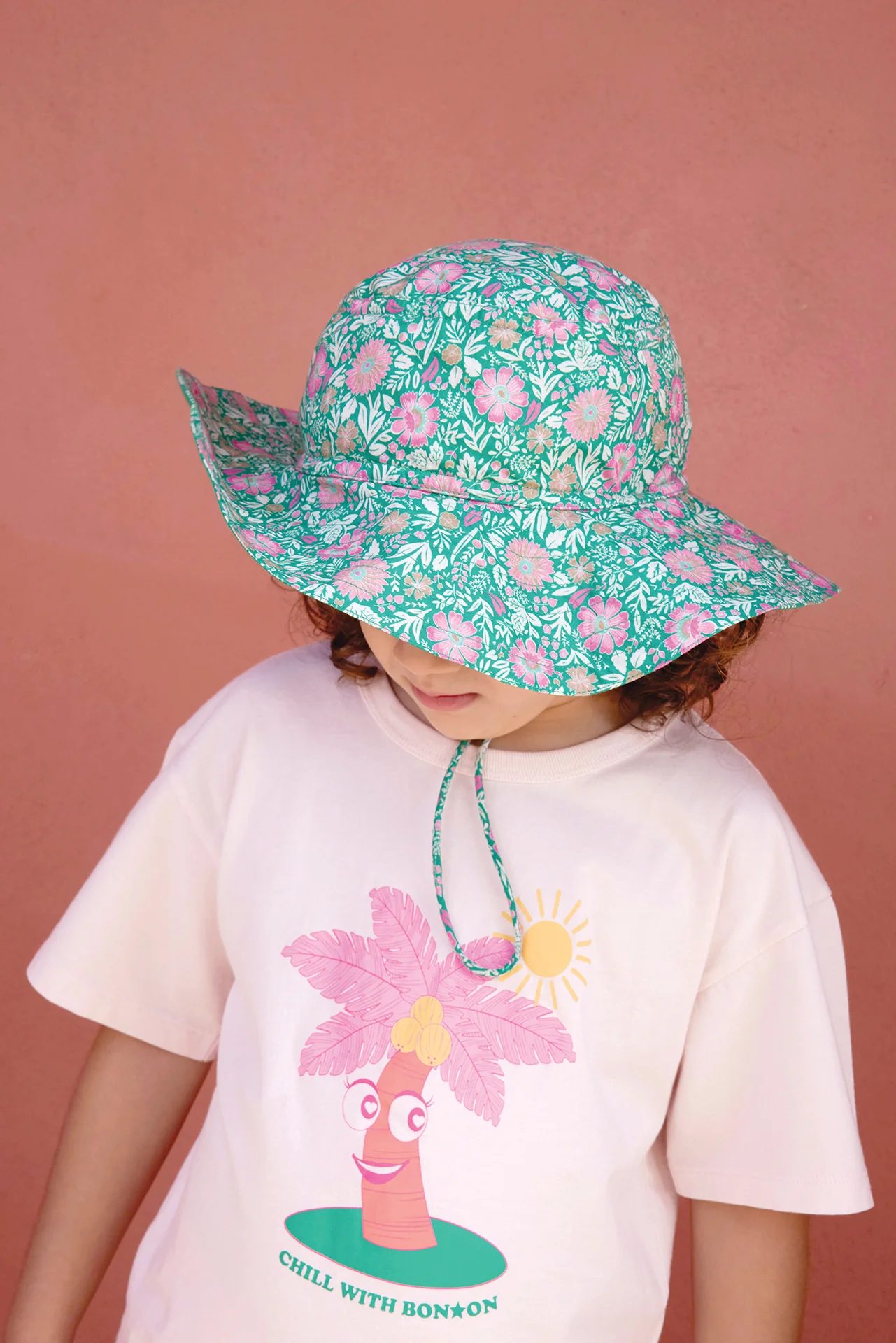Ce bob à motif floral est un véritable petit bijou pour les demoiselles en quête de style ! Avec son cordon de maintien pratique, il est prêt à affronter toutes les aventures en plein air avec une touche de fantaisie. Fabriqué en 100% coton, il promet douceur et confort sous le soleil. Parfait pour un look décontracté, à associer avec une jolie robe d’été ou un short en denim pour une journée au parc ou à la plage.