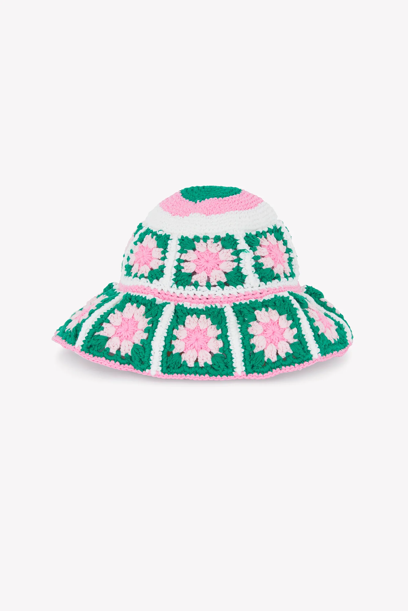 – Crochet vert et fleurs rose.