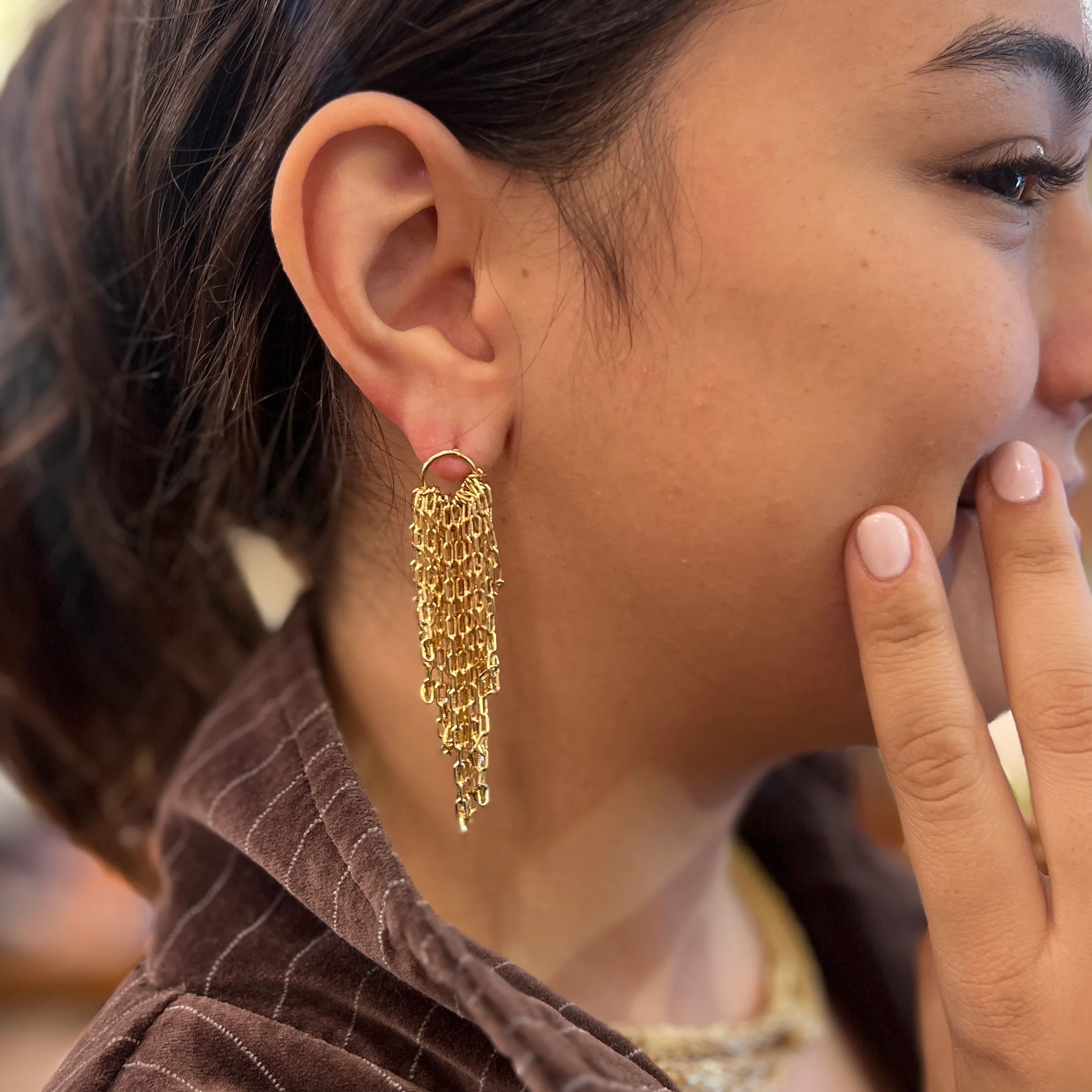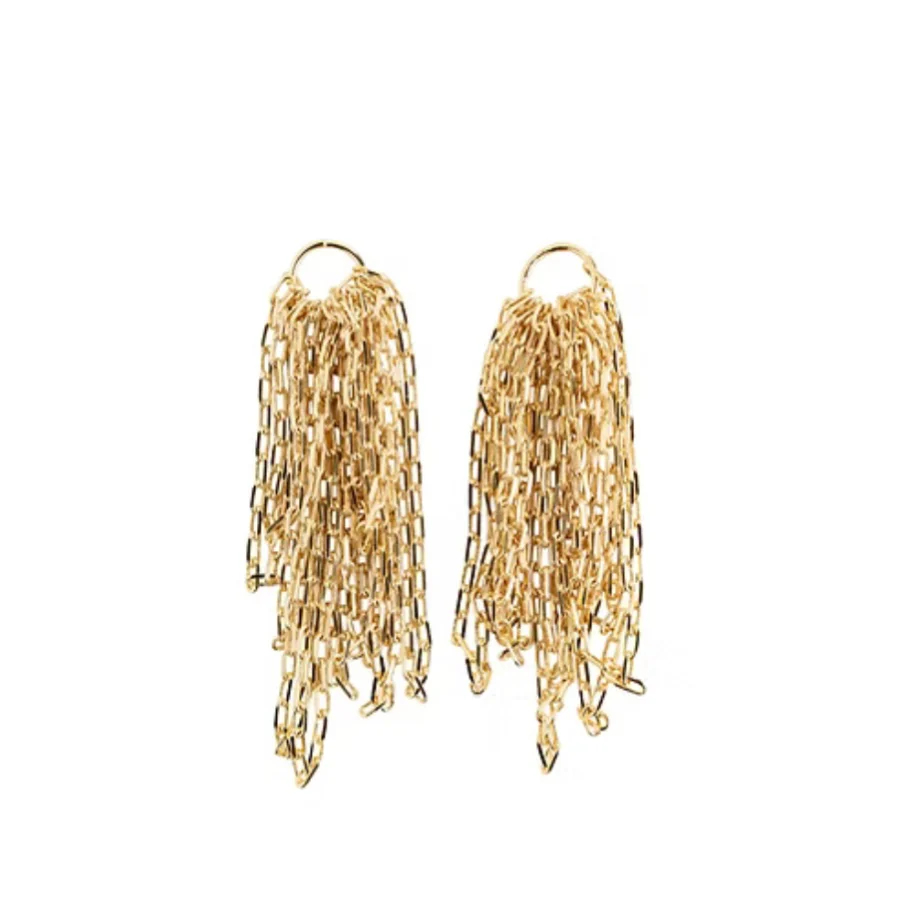 Ces boucles d’oreilles multi-chaînes sont montées sur un anneau de diamètre 1 cm.