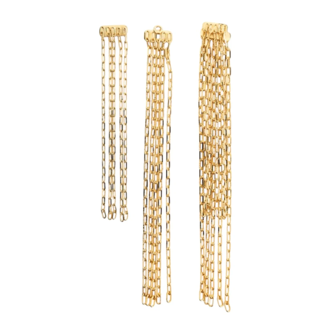 Boucles d’oreilles dorées à l’or fin 24 carats.Finition brillante. Ces boucles d’oreilles sont composées d’un avant et d’un arrière que vous pouvez dissocier comme il vous plaît !– Avant : 5 chaînes d’une longueur de 7 cm sur 1 de large– Arrière : 5 chaînes d’une longueur de 10 cm sur 1 de large La […]