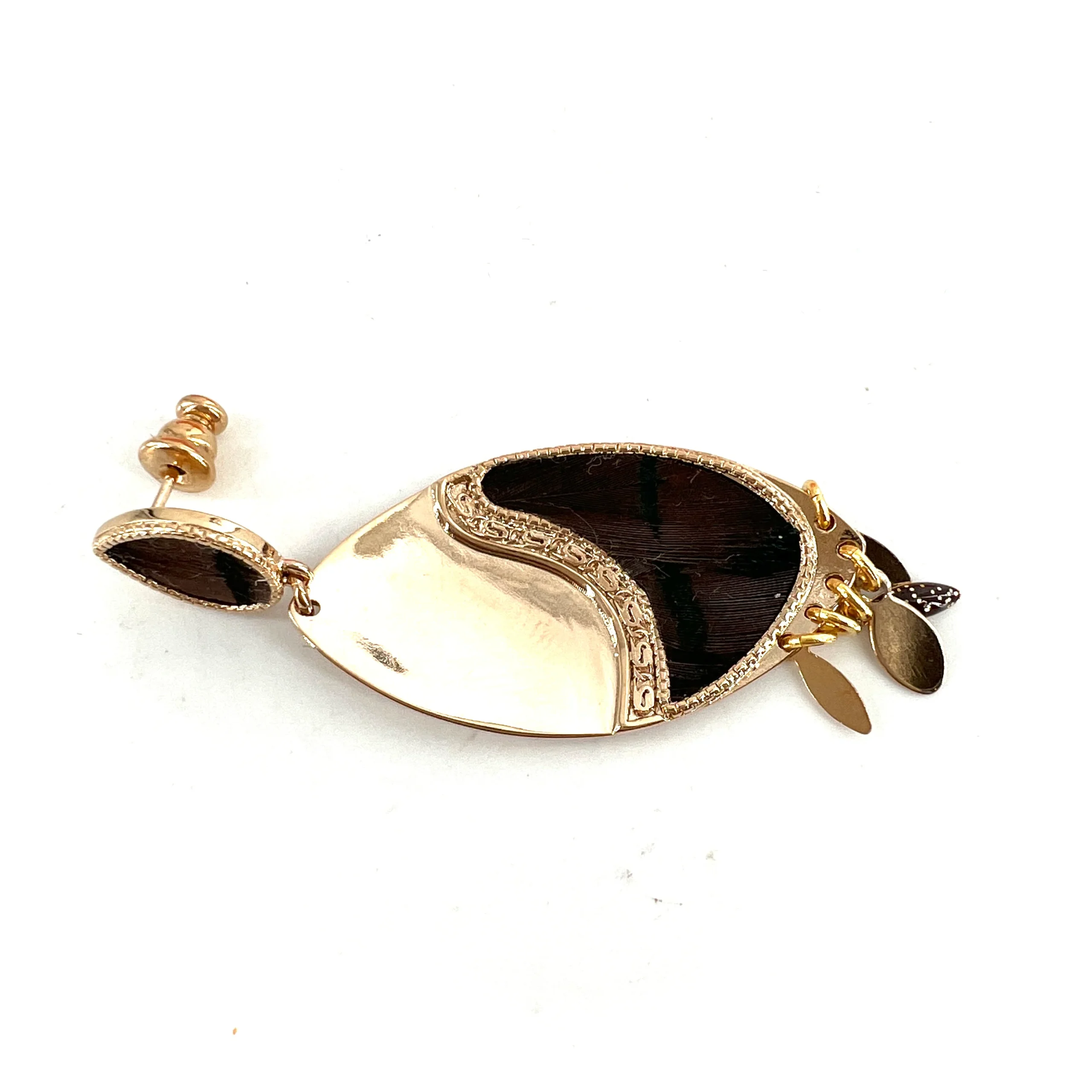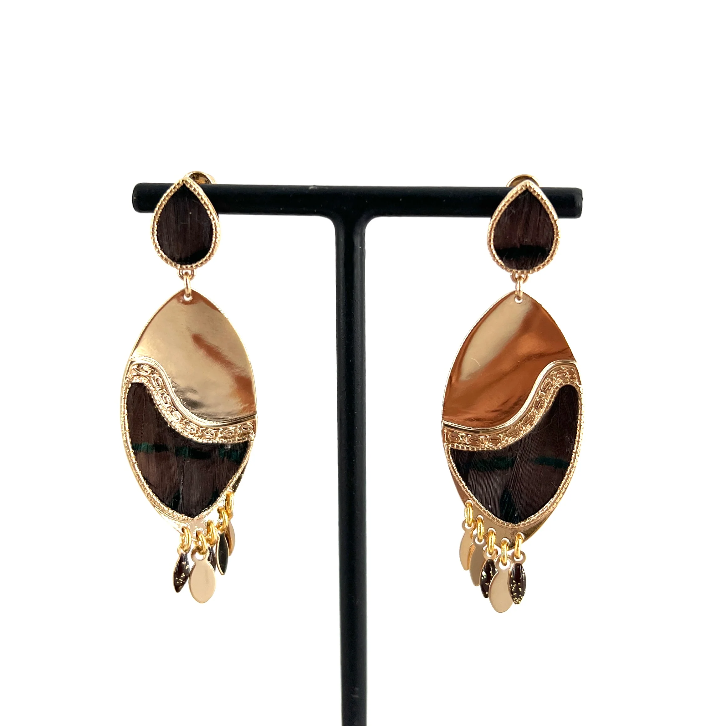 Boucle d’Oreille MIKONA MM en Plaqué Or et Plumes Marron Foncé