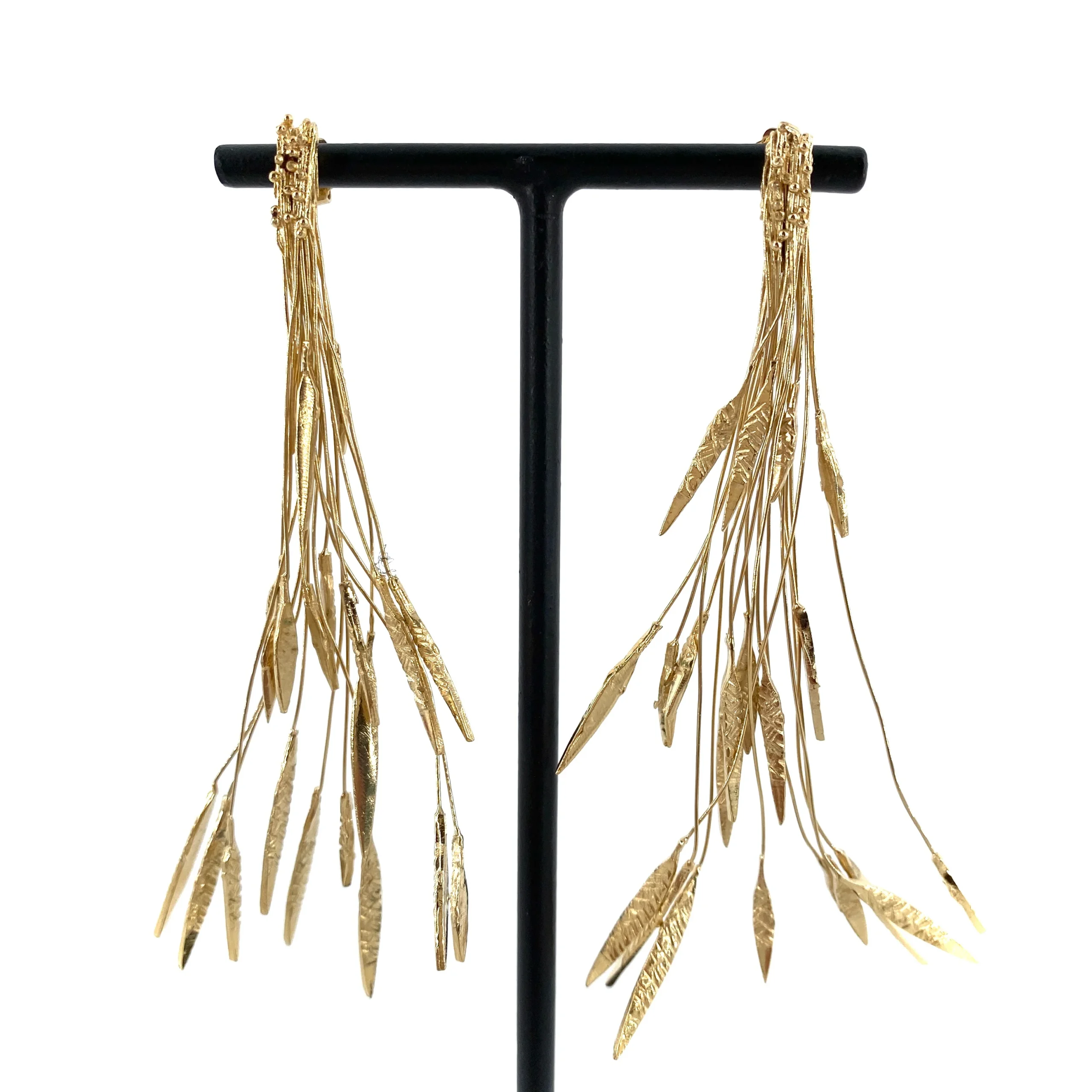 Ces boucles, tige oreille percĆ©e, se composent d’un bouquet de feuilles dorĆ©es Ć l’Or fin.
