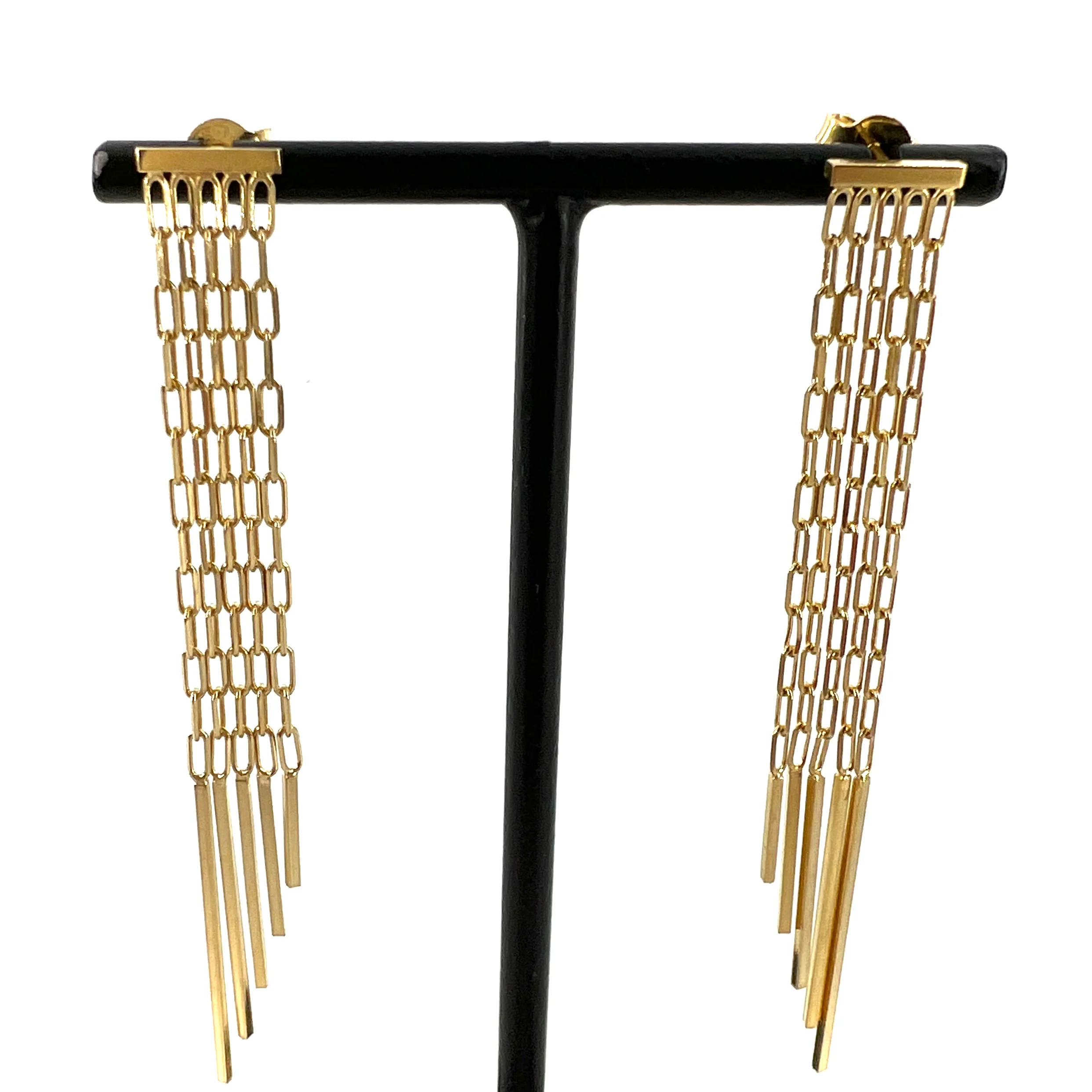 Ces boucles, tige oreille percée, se composent d’une barrette agrémentée de cinq chaînes.