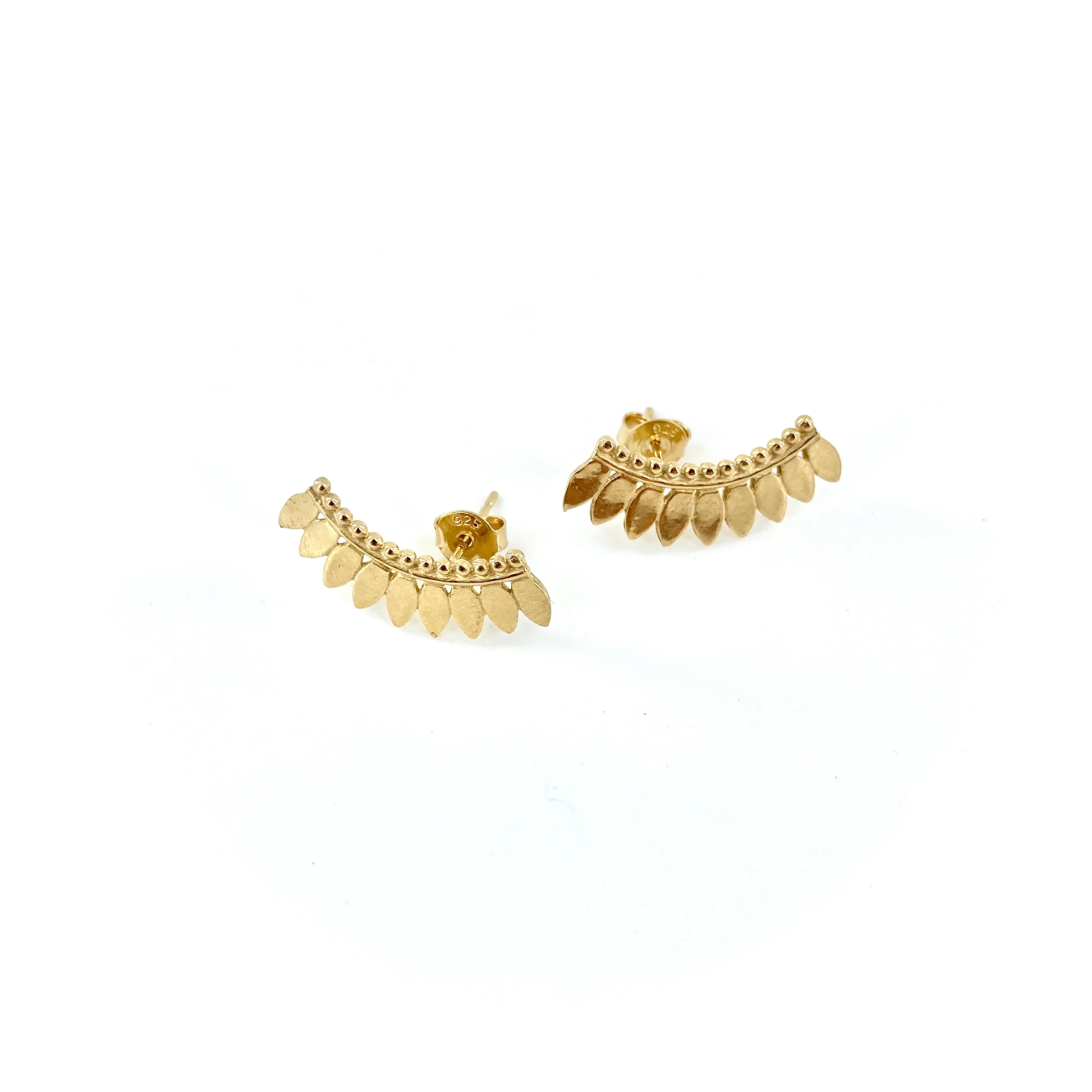 Ces boucles d’oreilles, earcuffs, composées de minis billes et pétales dorées lisses, se posent parfaitement sur l’oreille. Présentes et lumineuses elles se portent au quotidien! Existe en version puces Petit Modèle. Vermeil: Argent 925 plaqué à l’Or fin 3 microns Fabriquées à la main à Paris.