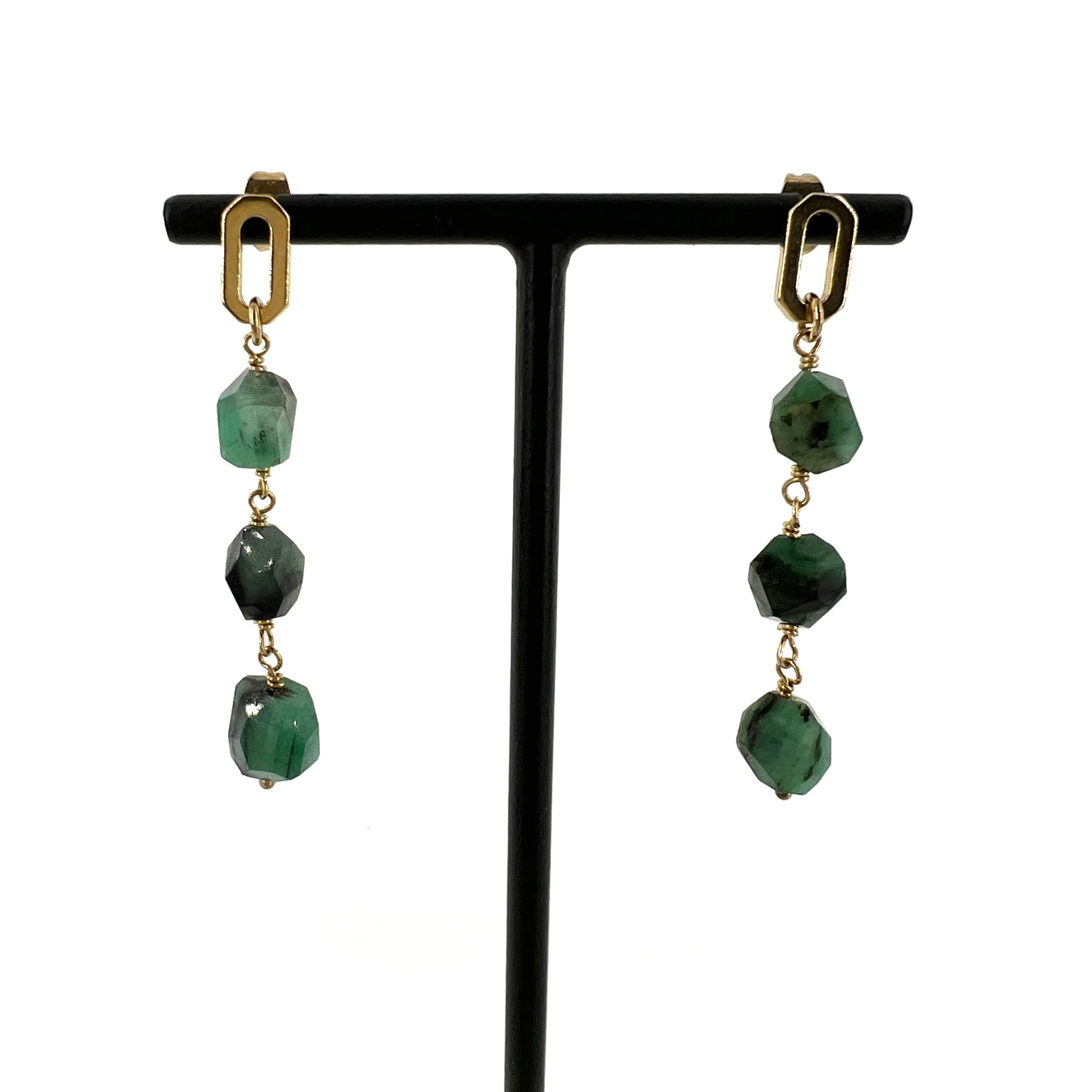 Boucles d’Oreilles LENNY en Émeraude Raw et Plaqué Or