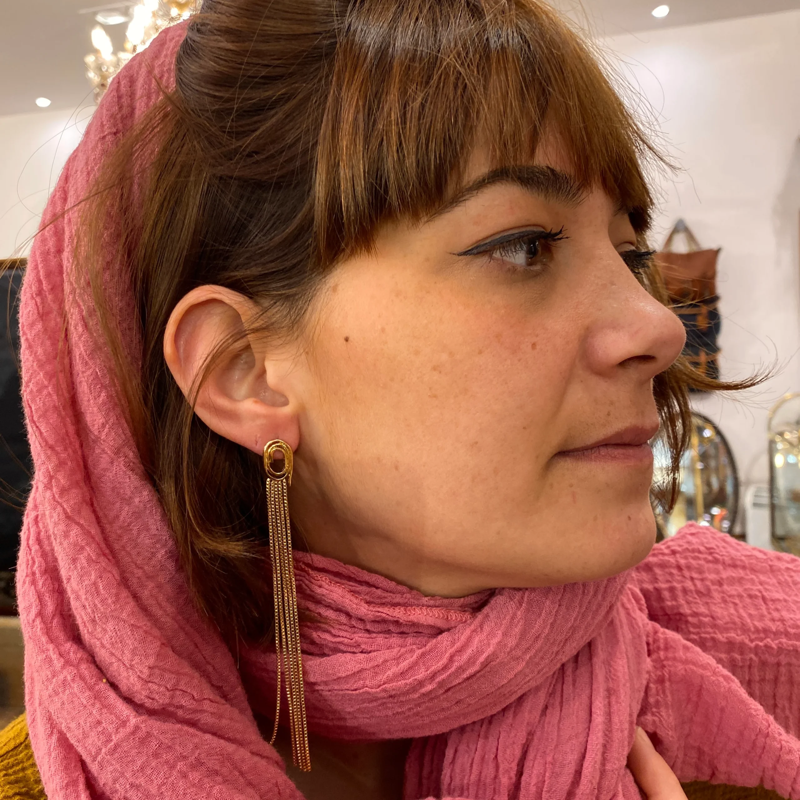Ces boucles, tige oreille percĆ©e, se compose d’un tourbillon irrĆ©gulier agrĆ©mentĆ© de 5 longues chaines.DrĆ“les, prĆ©sentes, et Ć©lĆ©gantes, ces boucles se portent Ć la cool comme pour une belle occasion.Existe aussi dans 2 autres tailles.PlaquĆ© Or 3 microns.FabriquĆ© Ć la main Ć Paris.