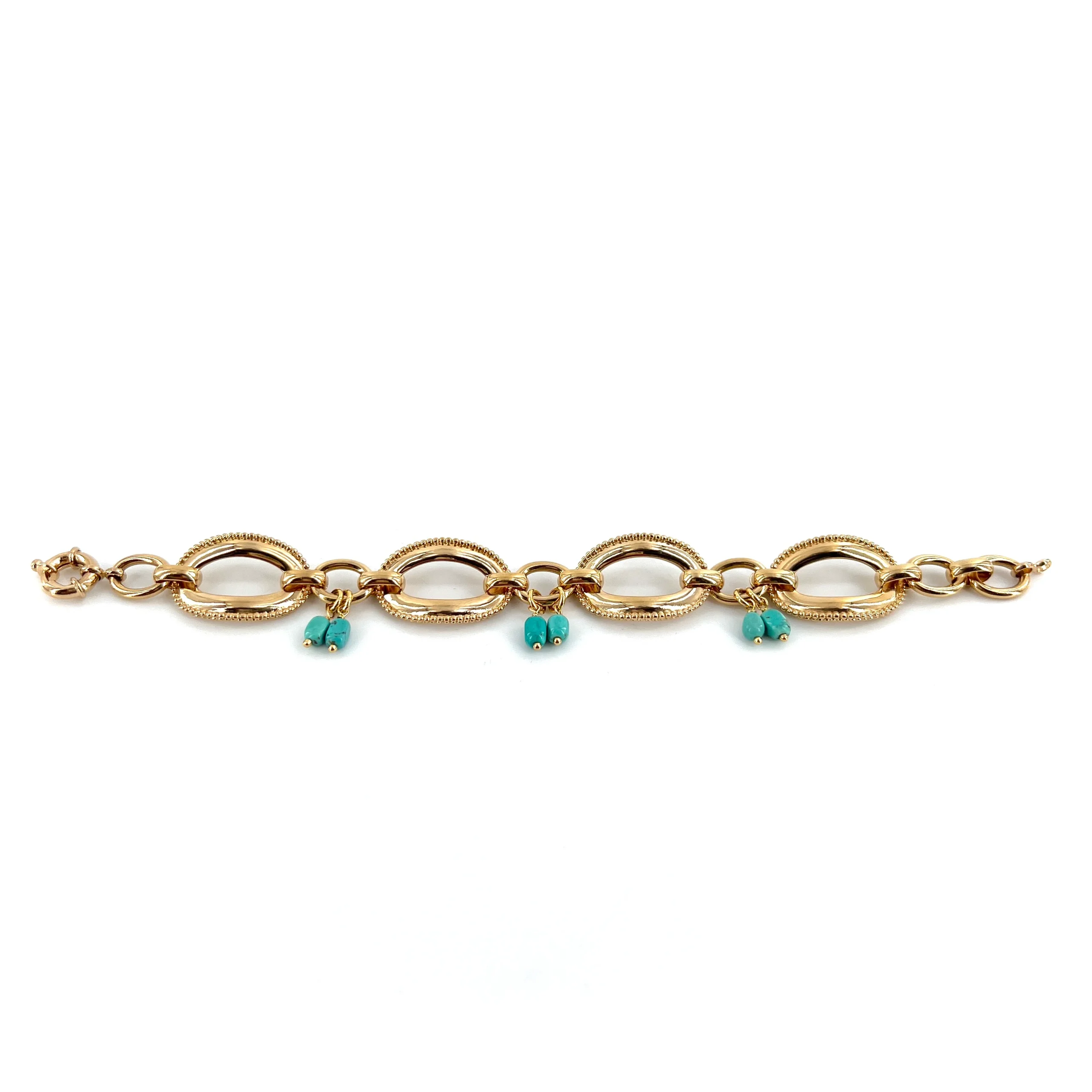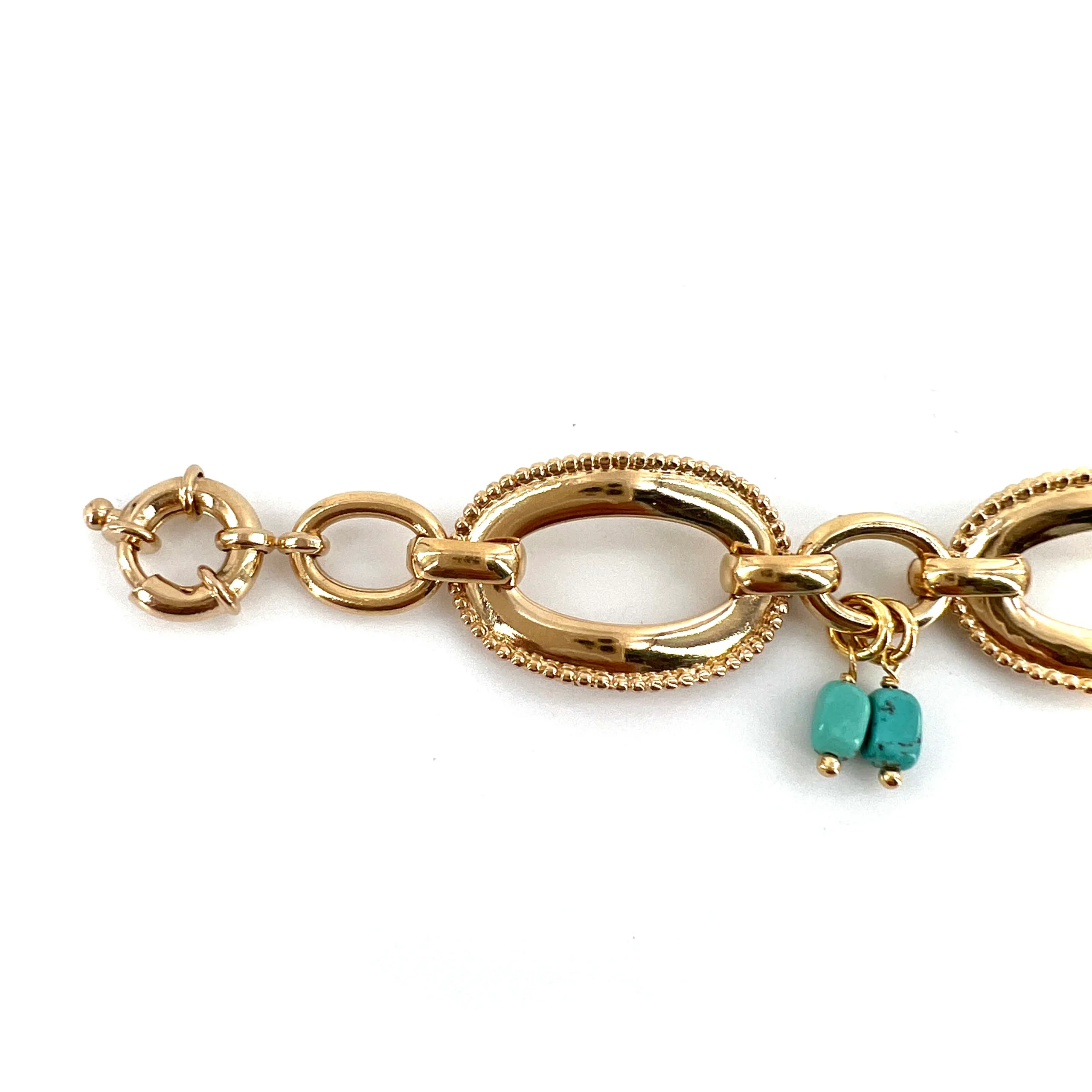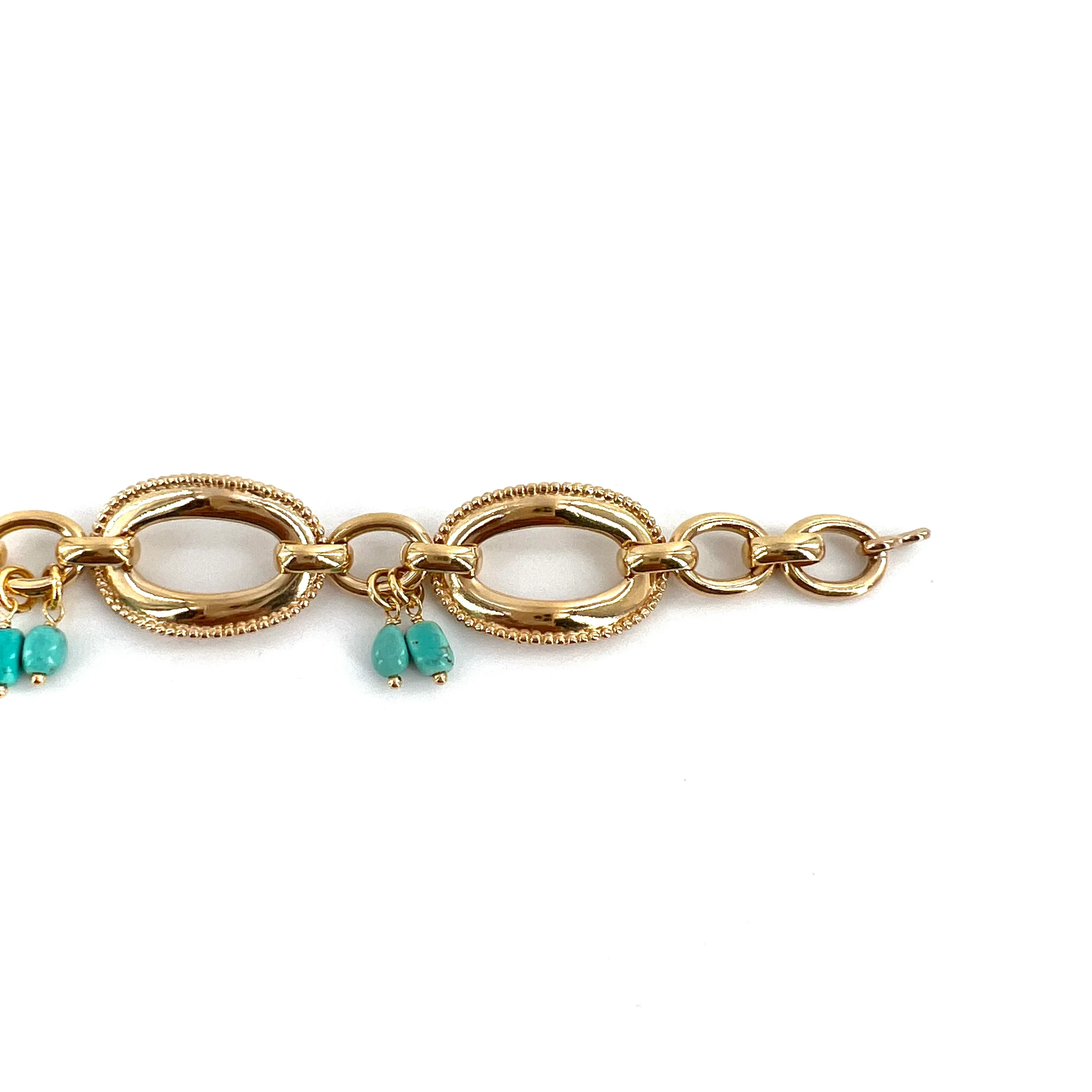 Ce bracelet, en PlaquĆ© Or, est composĆ© de maillons de tailles variĆ©es agrĆ©mentĆ©s de perles d’howlite turquoise.