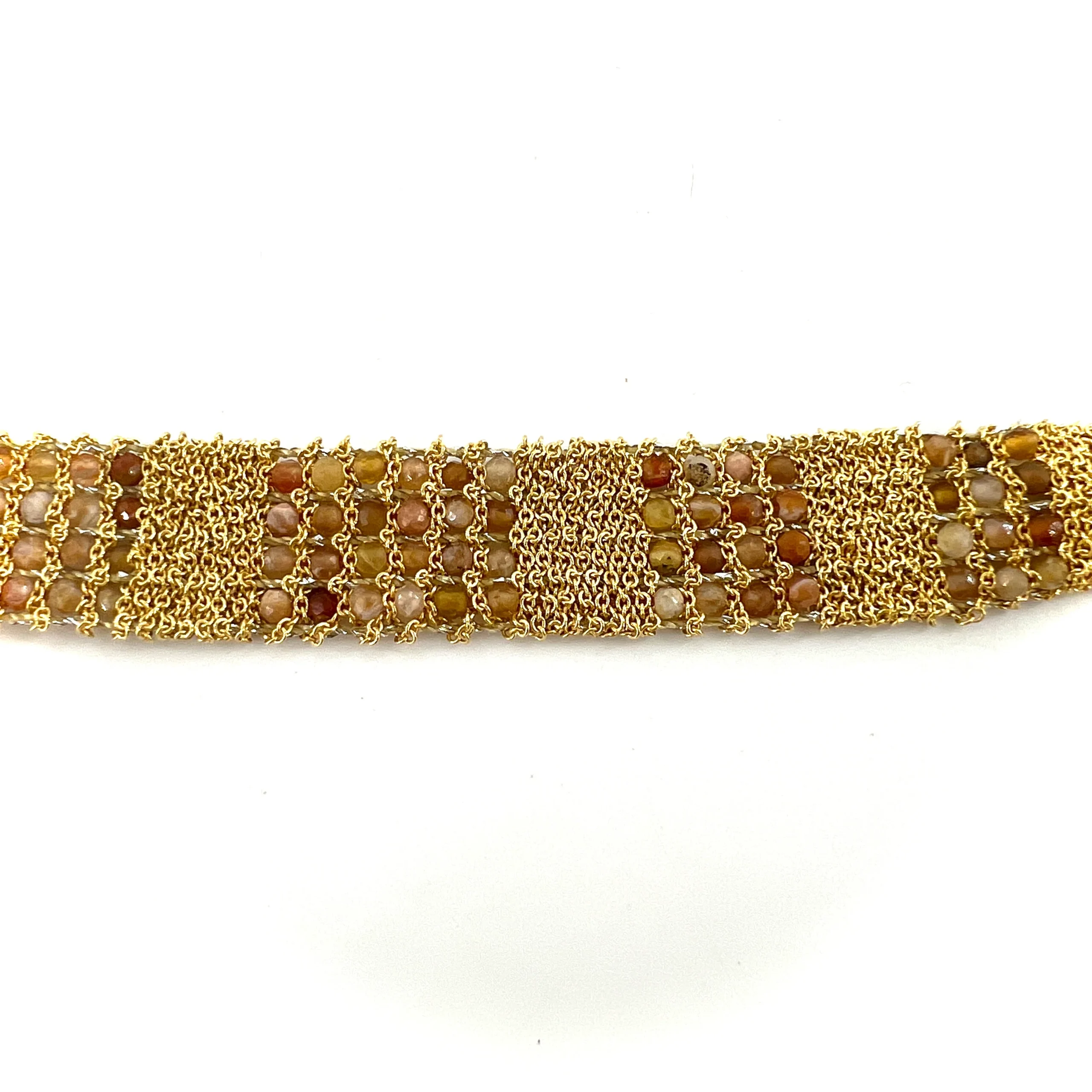 Bracelet en Maille Tissée en Vermeil et Pierres Semi-Précieuse