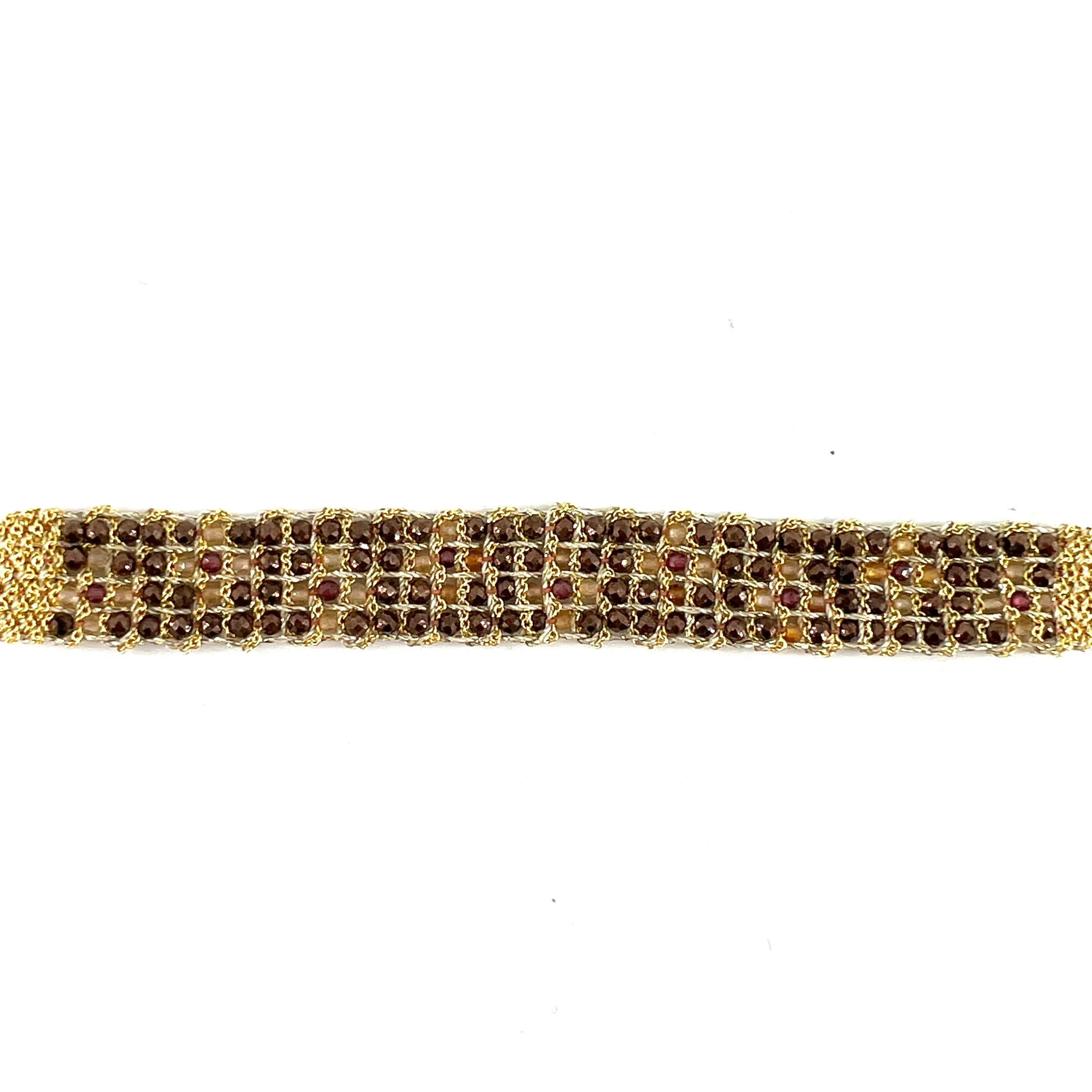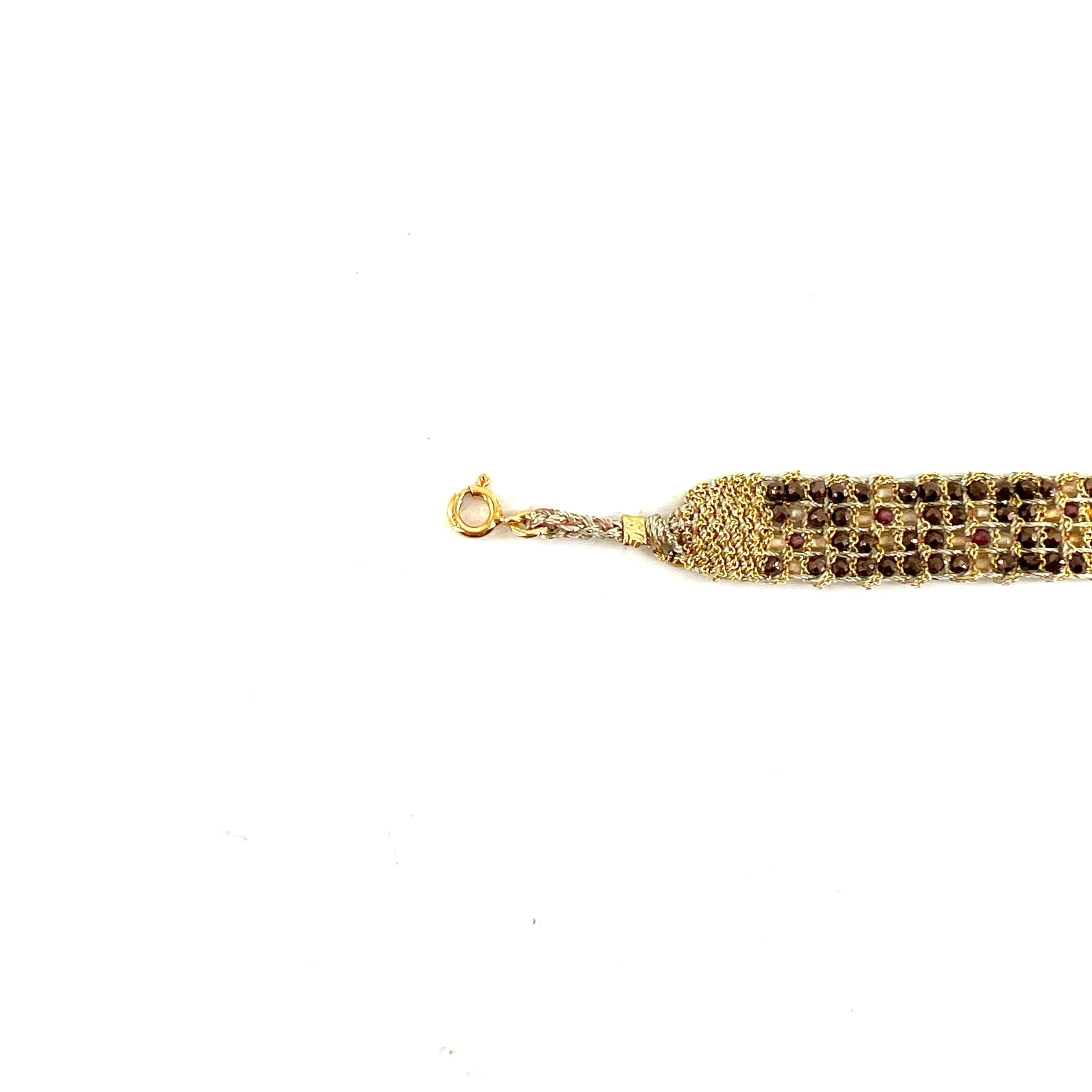 Bracelet en Maille Tissée en Vermeil et Pierres Semi Précieuses