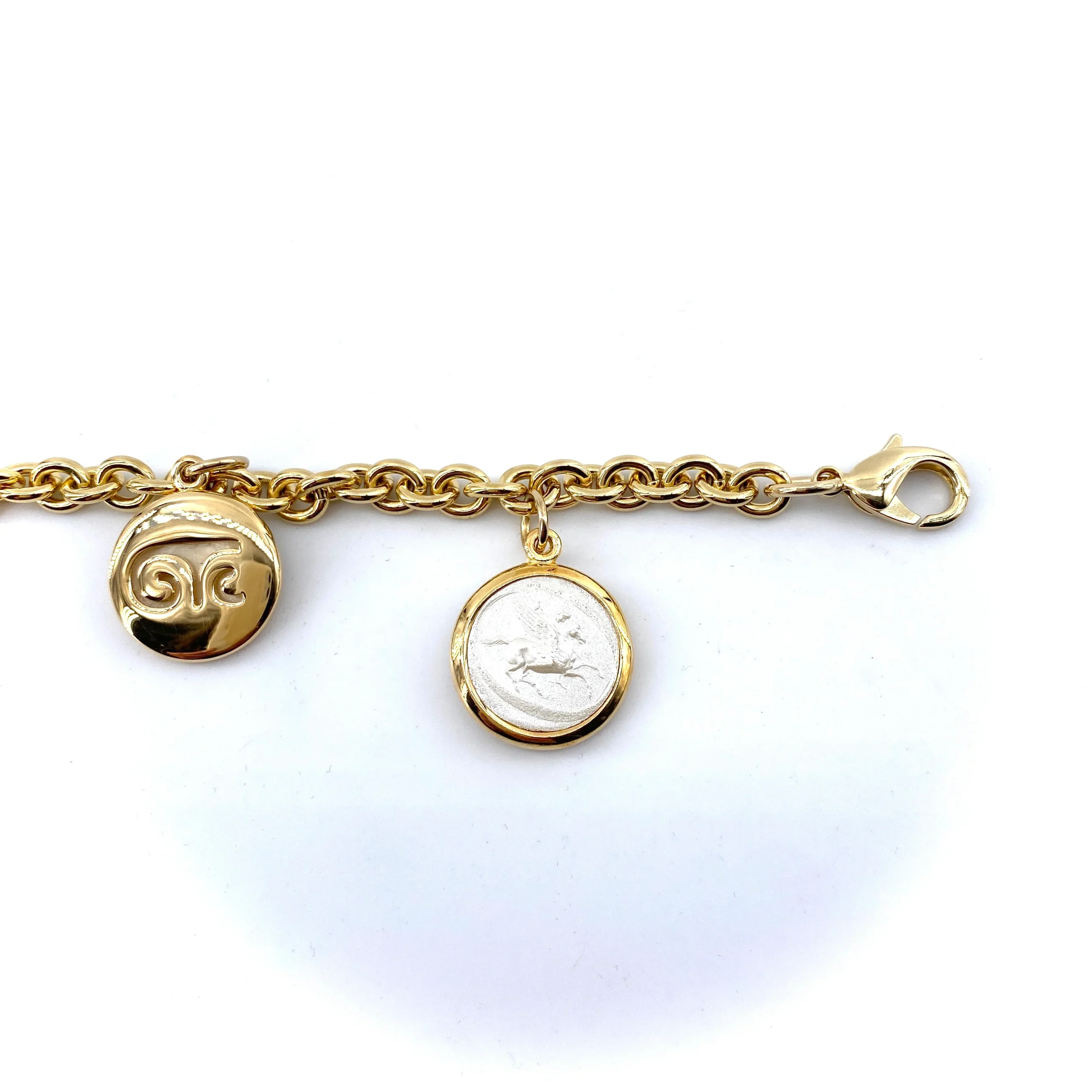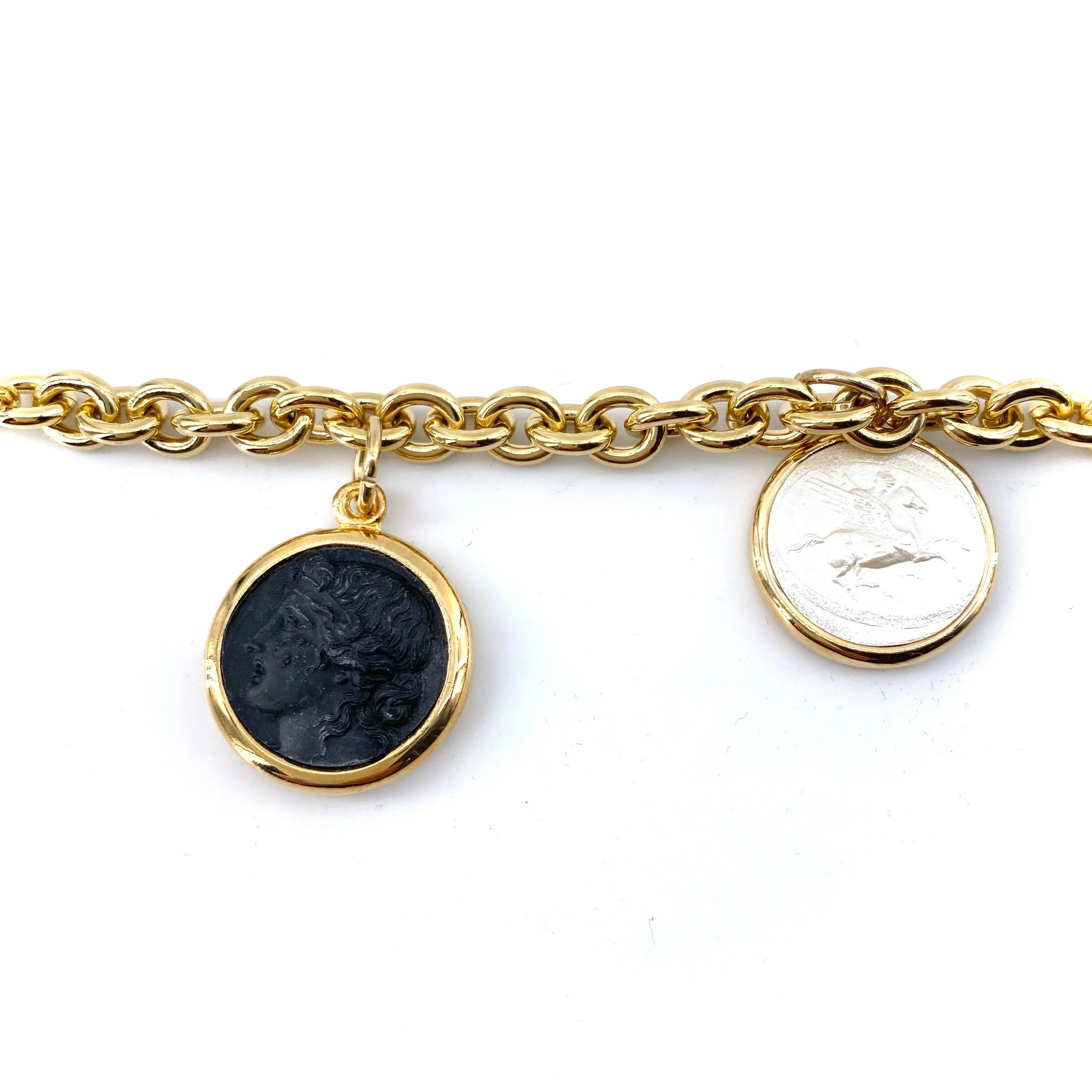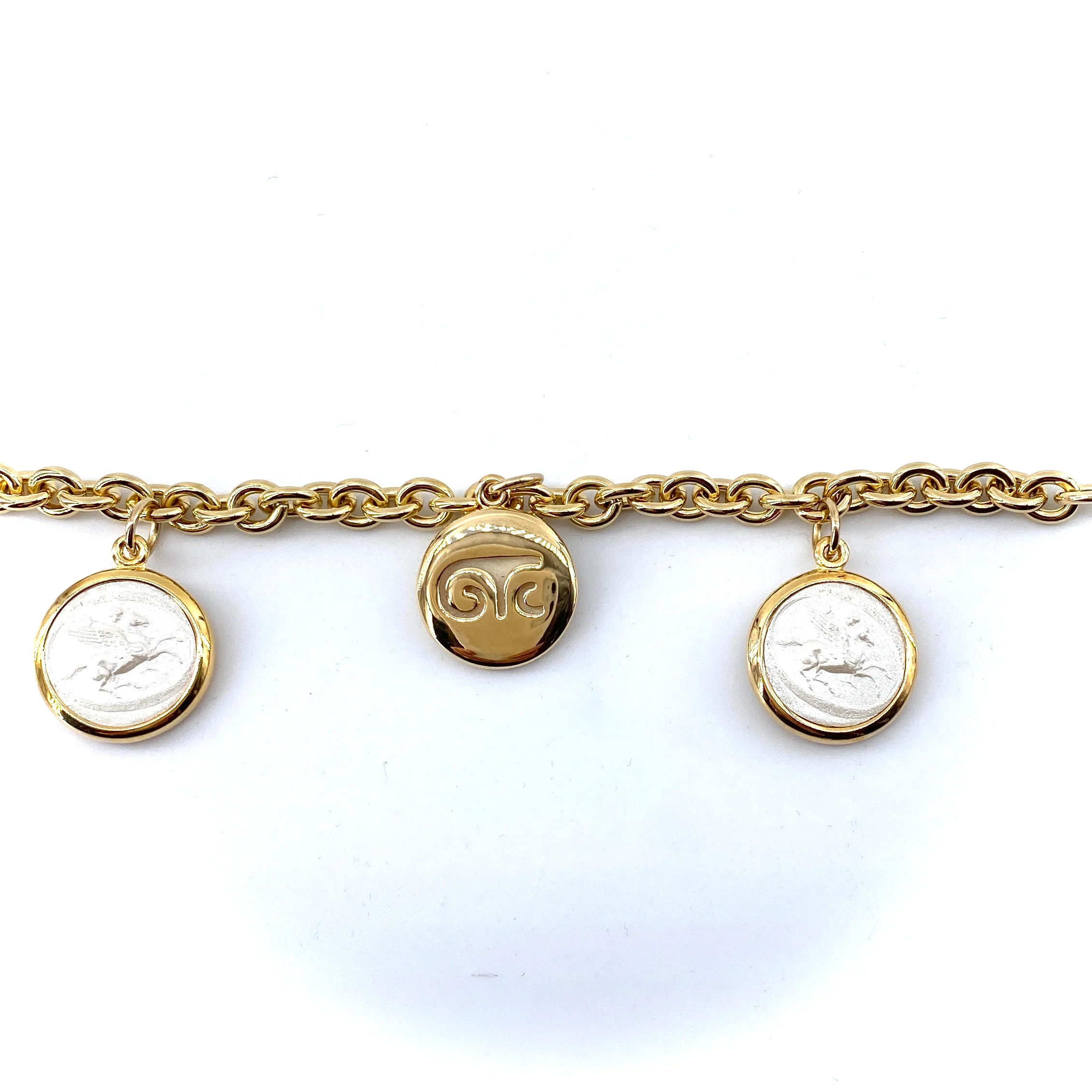 Ce bracelet maille, en plaqué Or, est agrémenté de 3 pampilles en résine réversibles couleur noir et blanc.Chic et dégaine, à porter seul ou en accumulation.Plaqué Or 18 carats.Fabriqué à la main en Italie.
