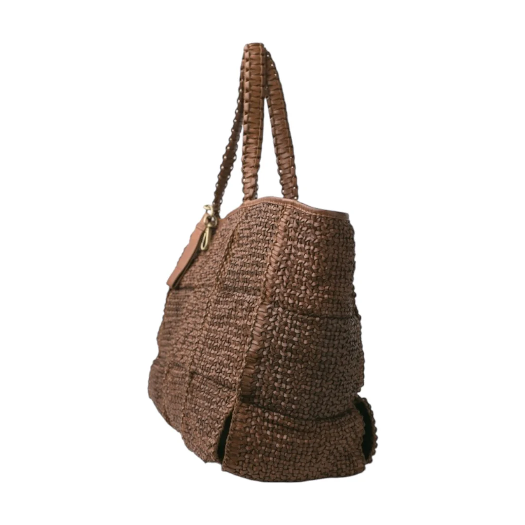 Mini-Sac Tressé en Cuir Vert Porté Travers