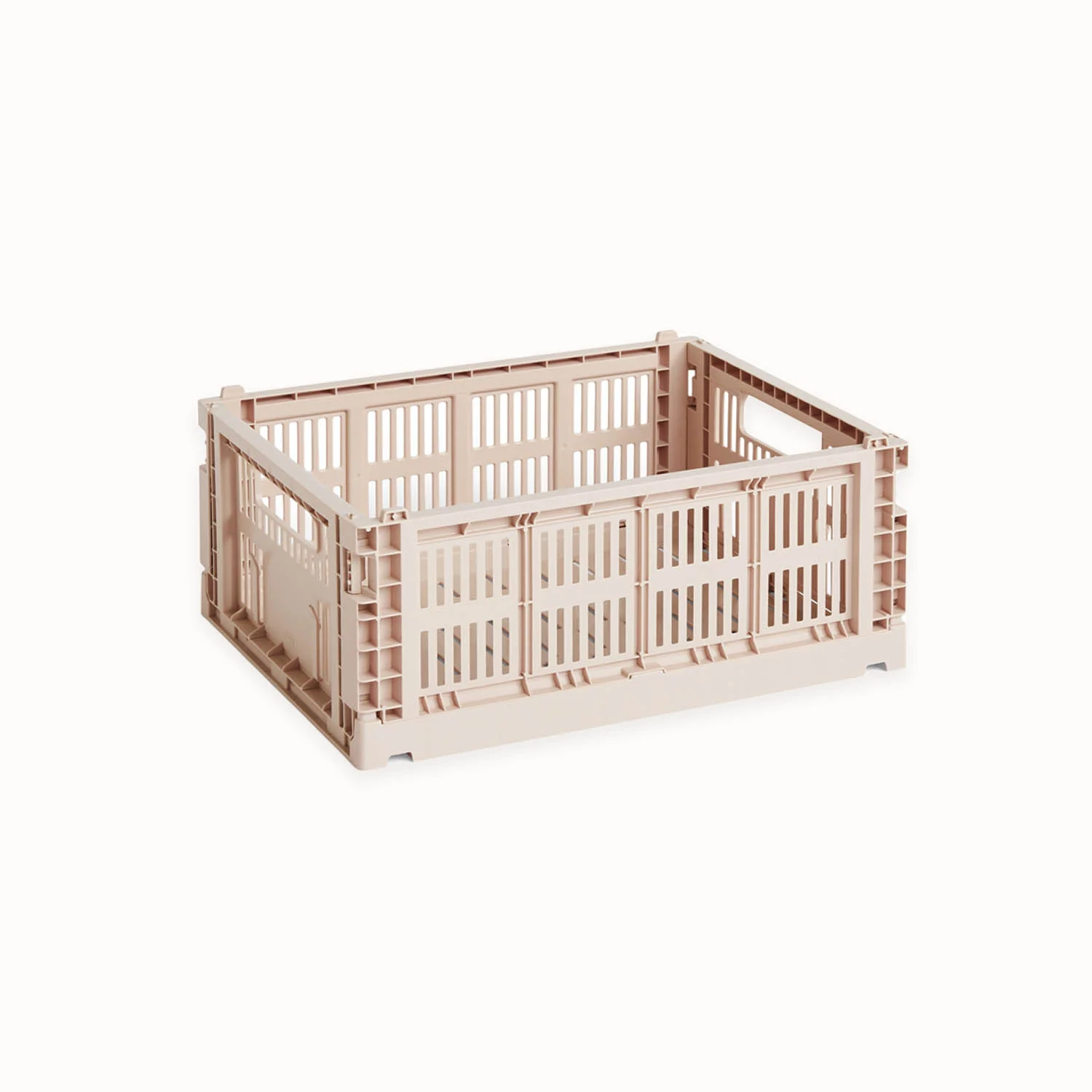 Cagette à fruits, cagette à légumes, cagette à chaussettes, cagette à outils, cagette à jouets, cagette partout et pour tout ! Cette petite dernière de chez HAY en plastique entièrement recyclé saura trouver sa place dans votre intérieur. Dimensions : 26.5 x 34.5 x 14 cm Composition : 100% plastique recyclé Couleur : rose pâle