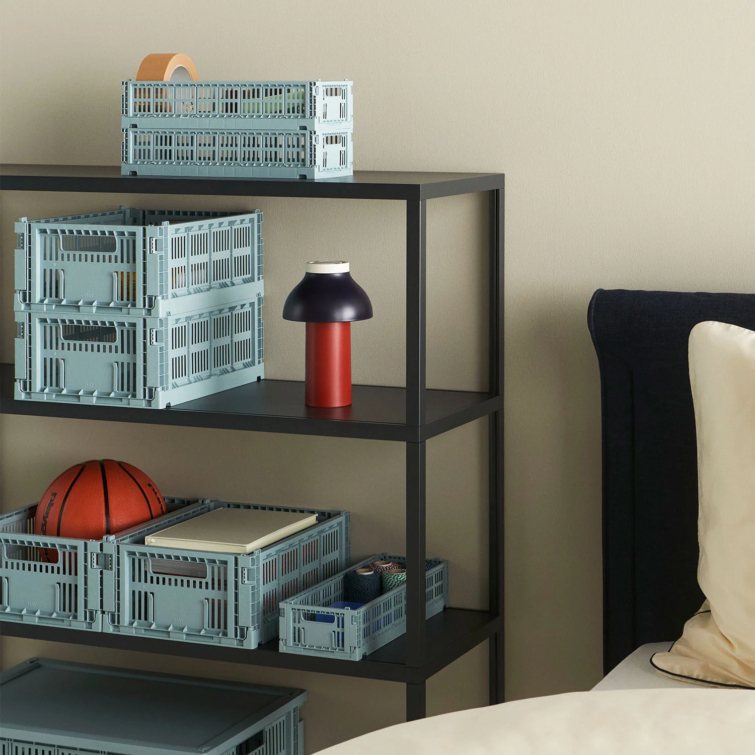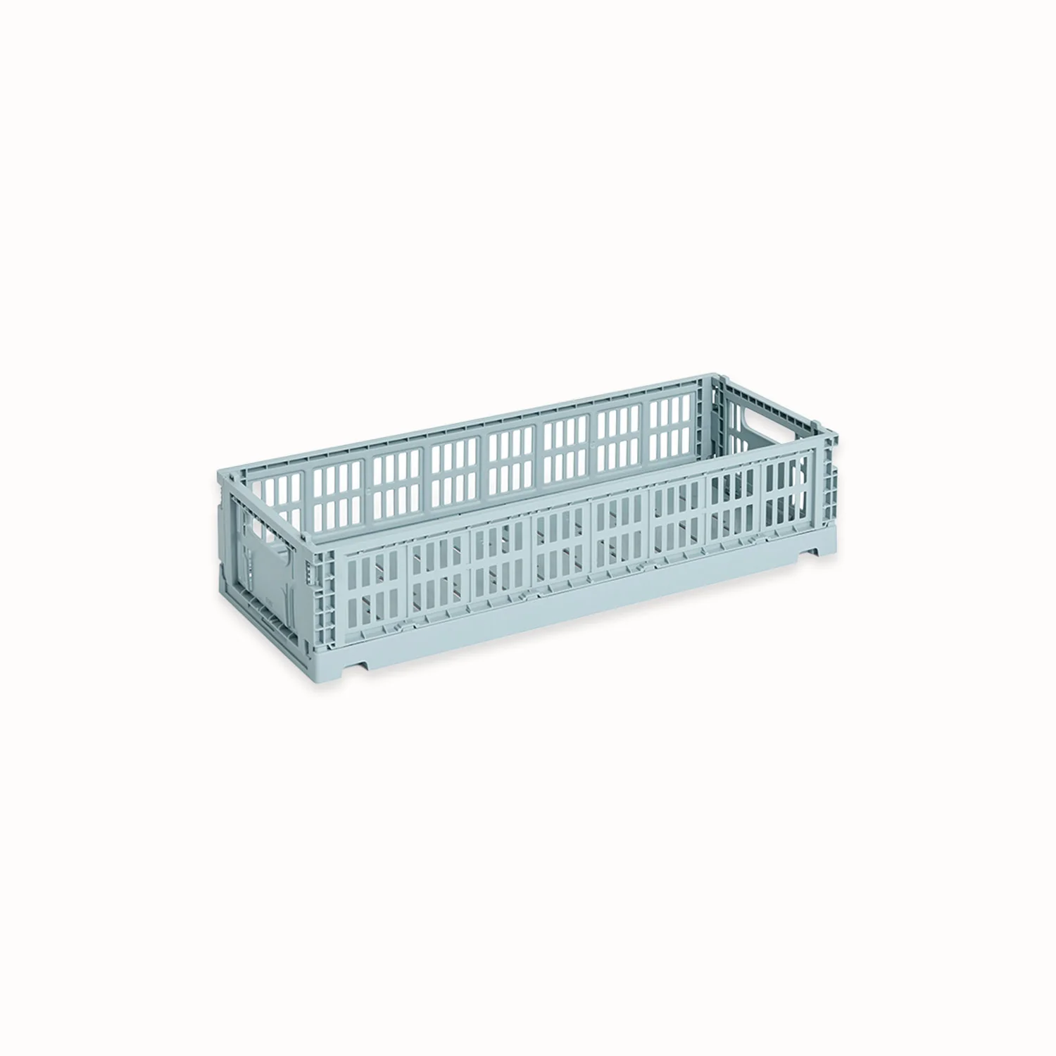 La cagette HAY se pare de nouvelles couleurs ! Fabriquée en plastique 100 % recyclé, elle est robuste, empilable et se replie à plat pour gagner de la place. Disponible en plusieurs tailles et couleurs, elle s’adapte à tous les usages : jouets dans la chambre, fruits et légumes dans la cuisine, accessoires de bureau ou linge dans la salle de bain. Un accessoire malin, polyvalent et esthétique, qui transforme le rangement en vraie touche déco.