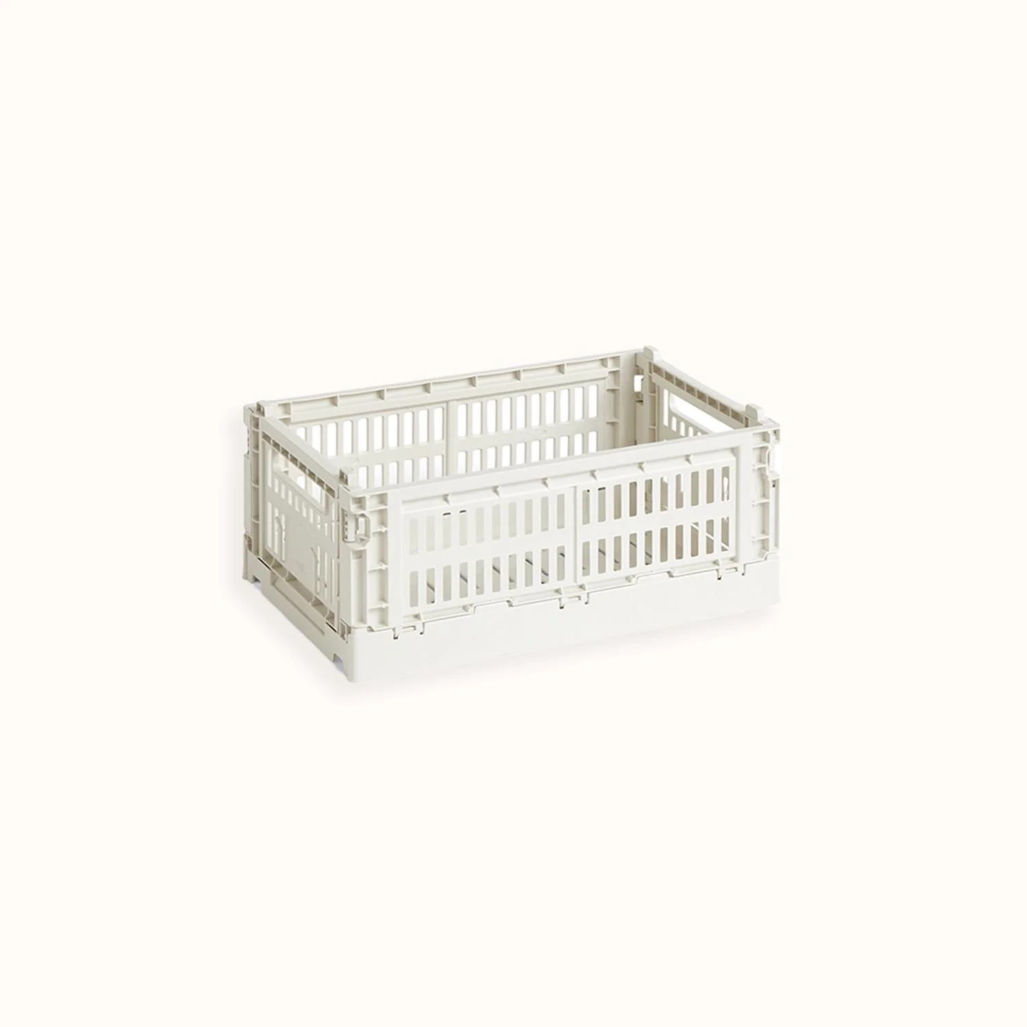 Cagette à fruits, cagette à légumes, cagette à chaussettes, cagette à outils, cagette à jouets, cagette partout et pour tout ! Cette petite dernière de chez HAY en plastique entièrement recyclé saura trouver sa place dans votre intérieur. Dimensions : 10.5 × 26.5 × 17 cm Composition : 100% plastique recyclé Couleur : Blanc cassé