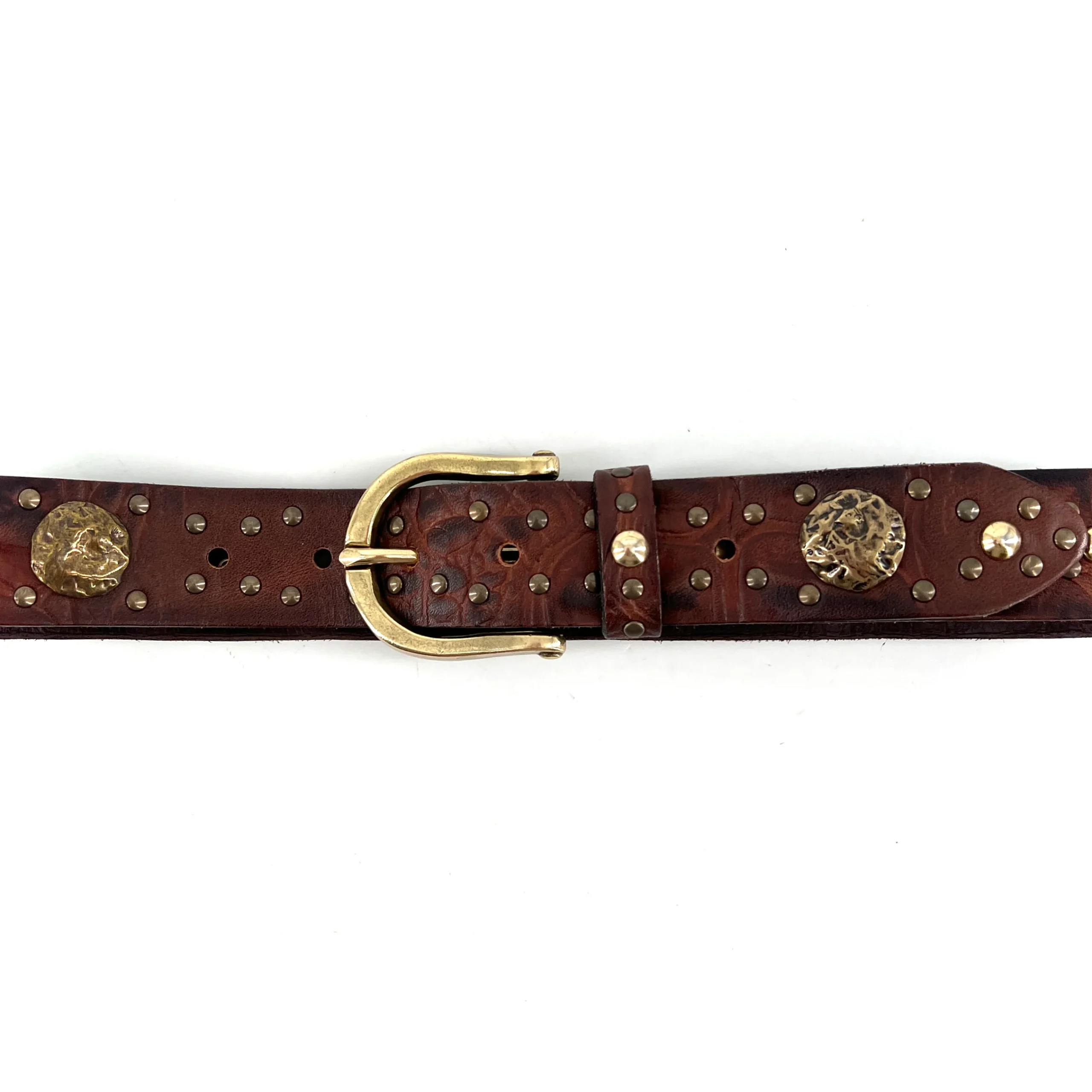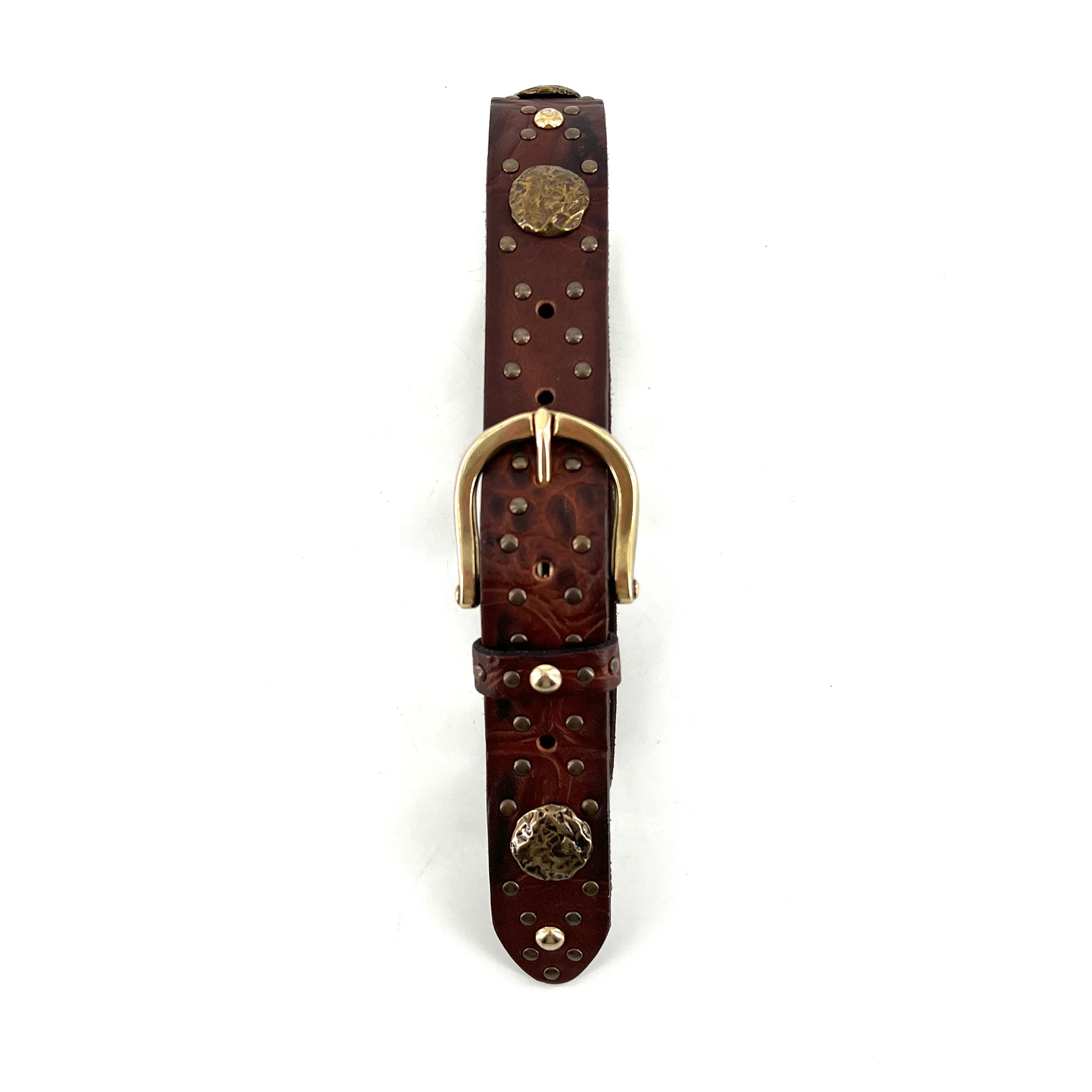 Ceinture en Cuir Cognac Boucle et Clous Dorés