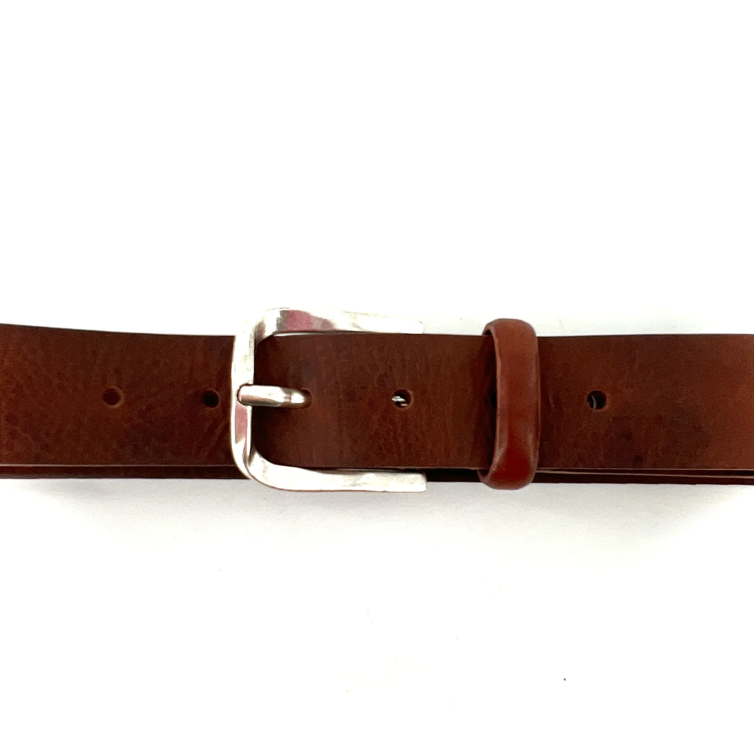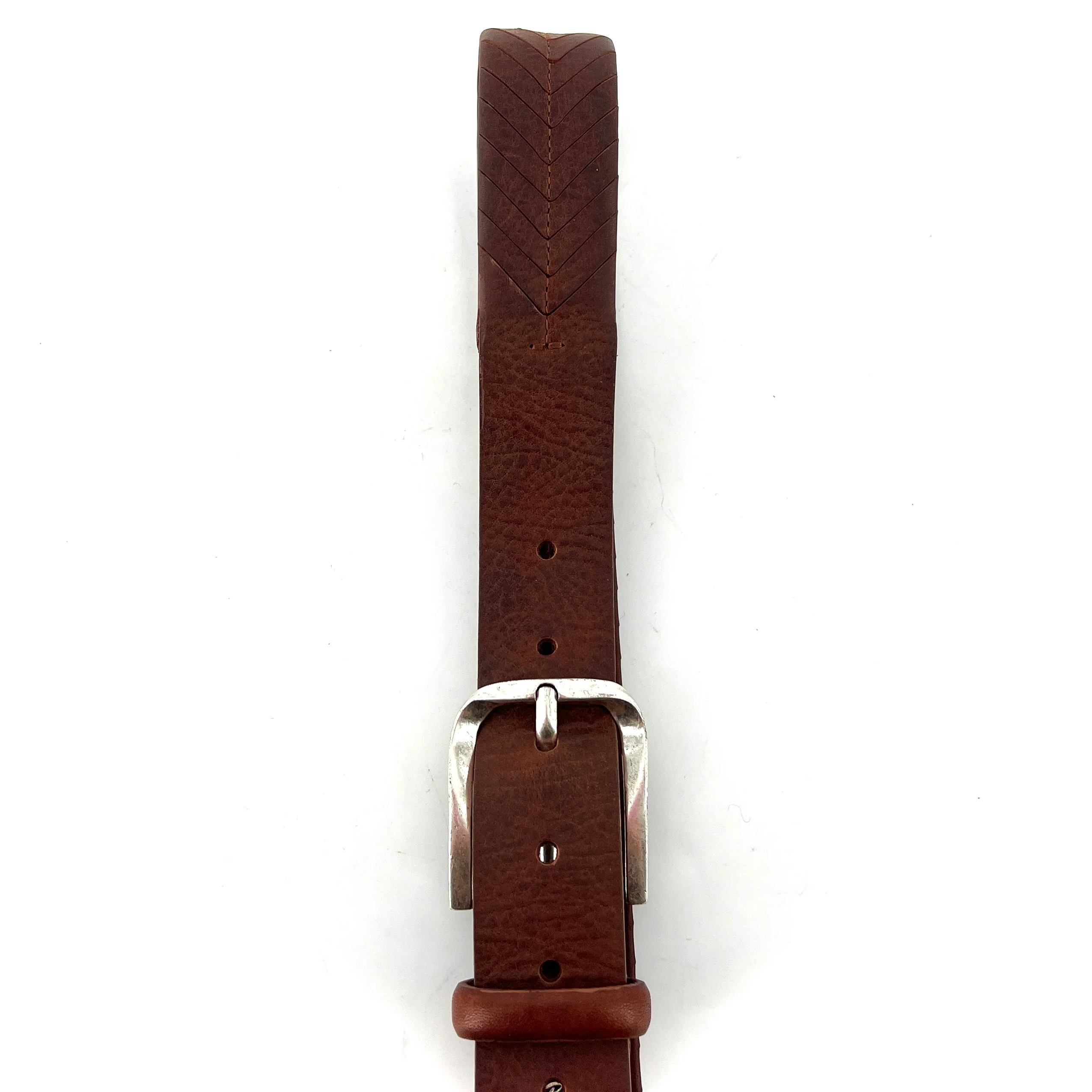 Ceinture en Cuir Cognac Découpe Lazer V Boucle Vieil Argent