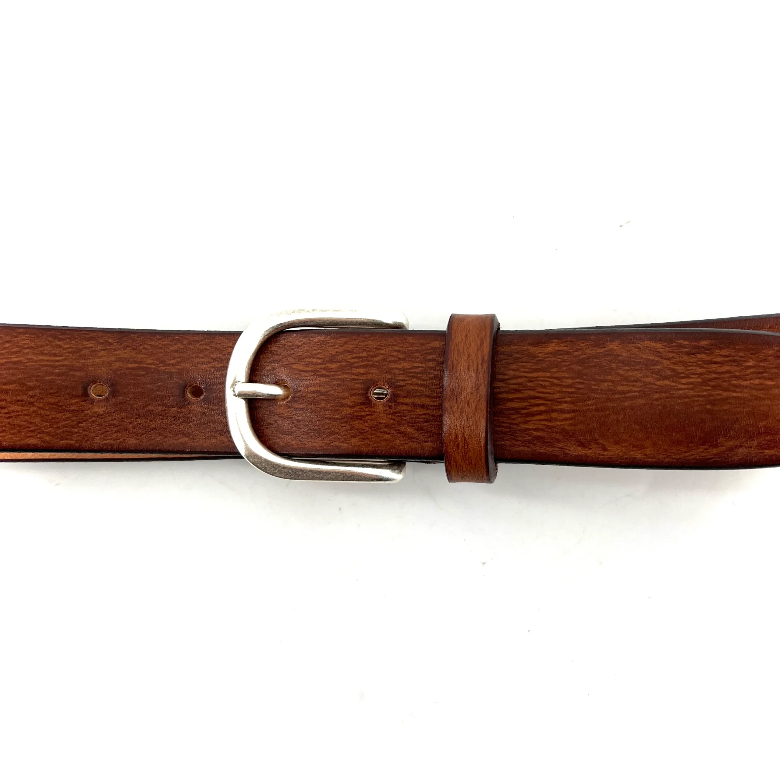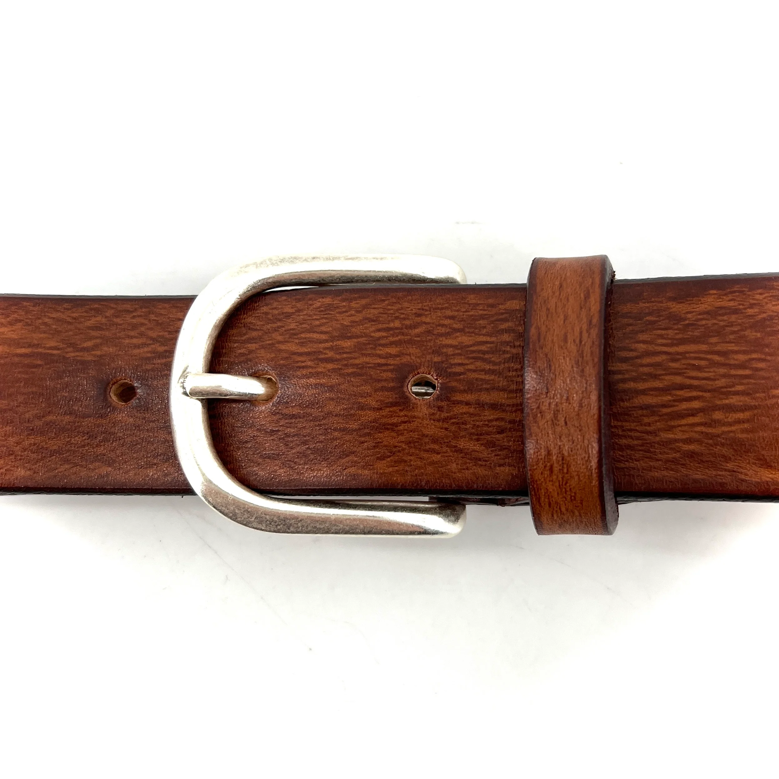 Ceinture en Cuir Cognac Veiné Boucle Arrondie Vieil Argent