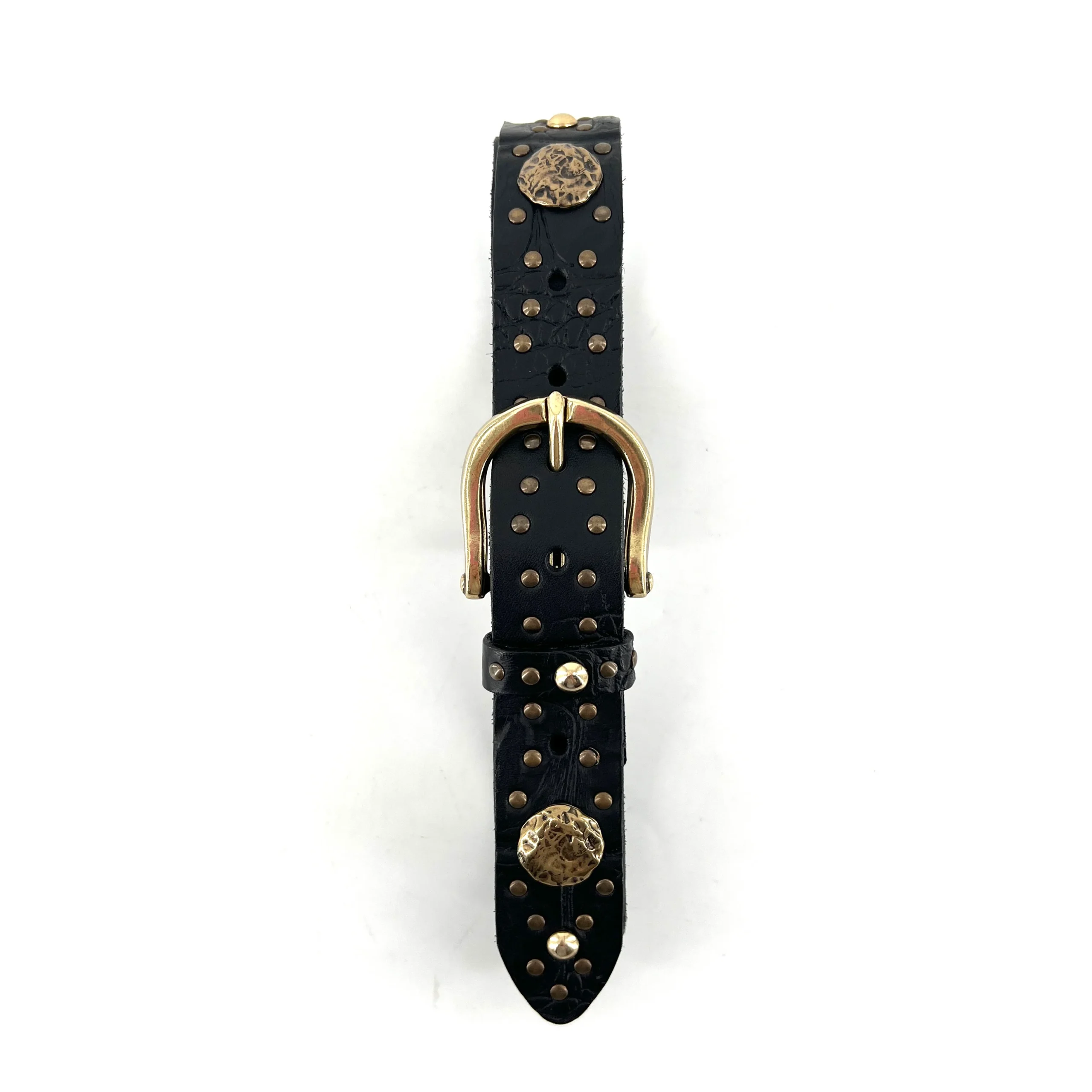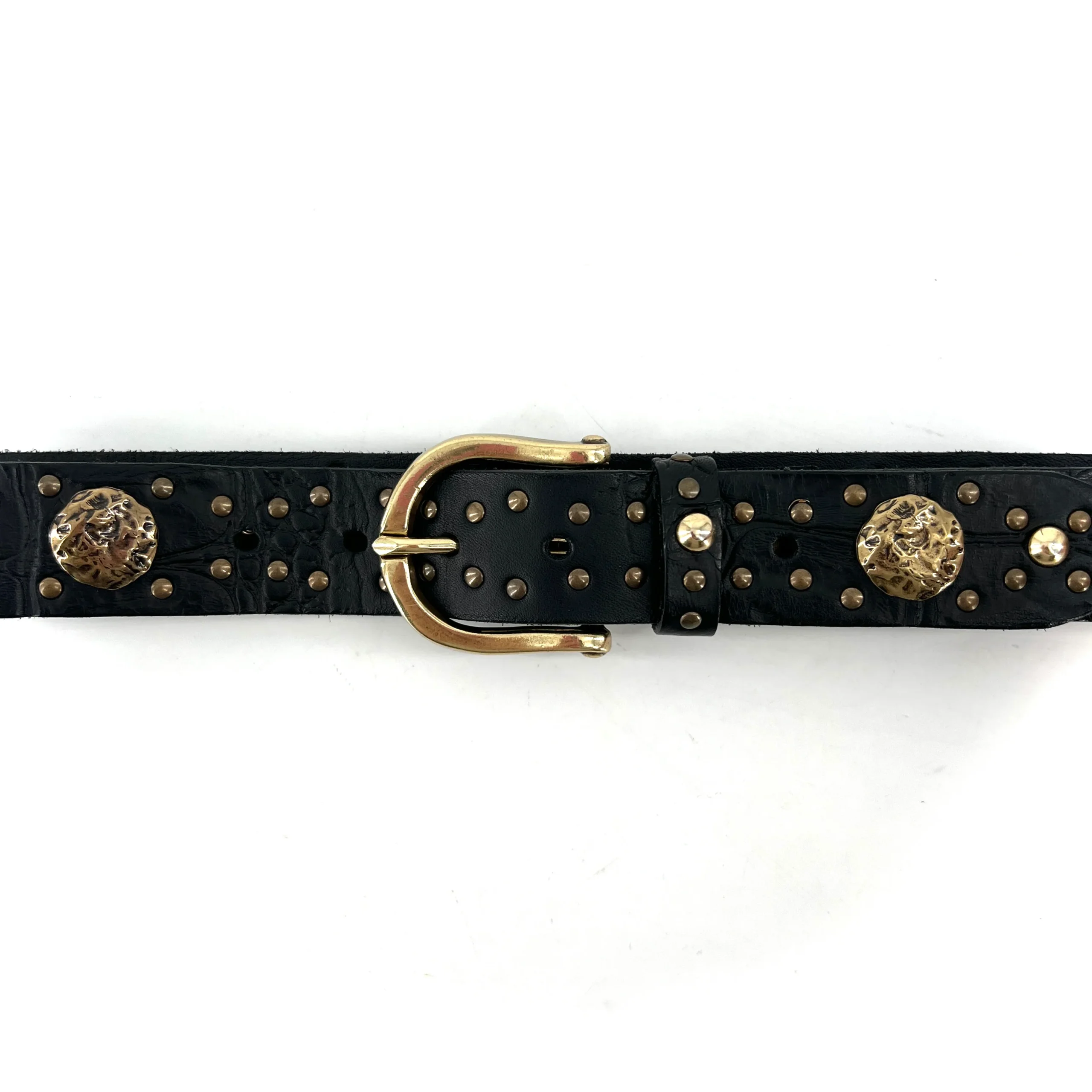 Ceinture en Cuir Noir Boucle et Clous Dorés