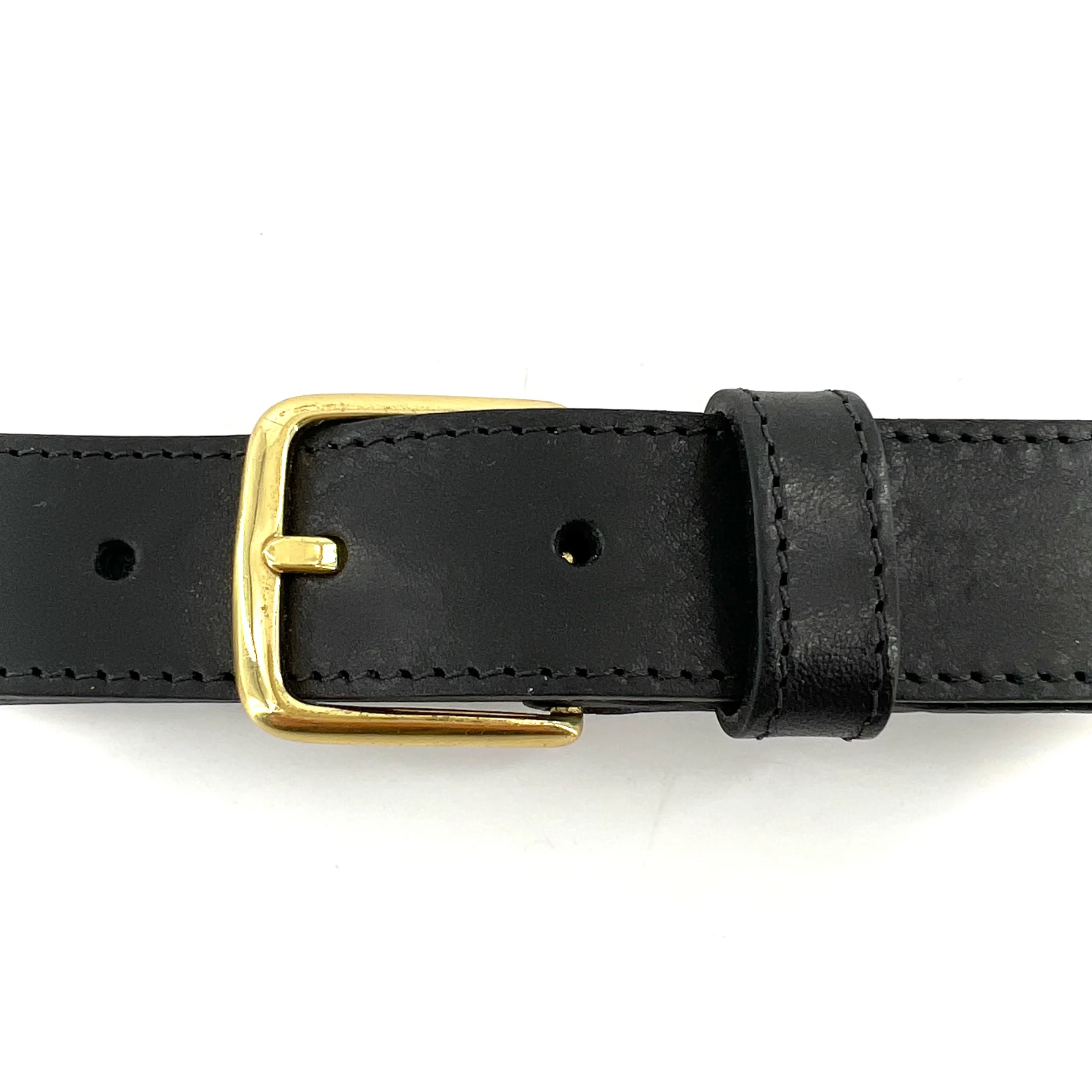 Ceinture en Cuir Noir Simple Boucle finition Vieil Or