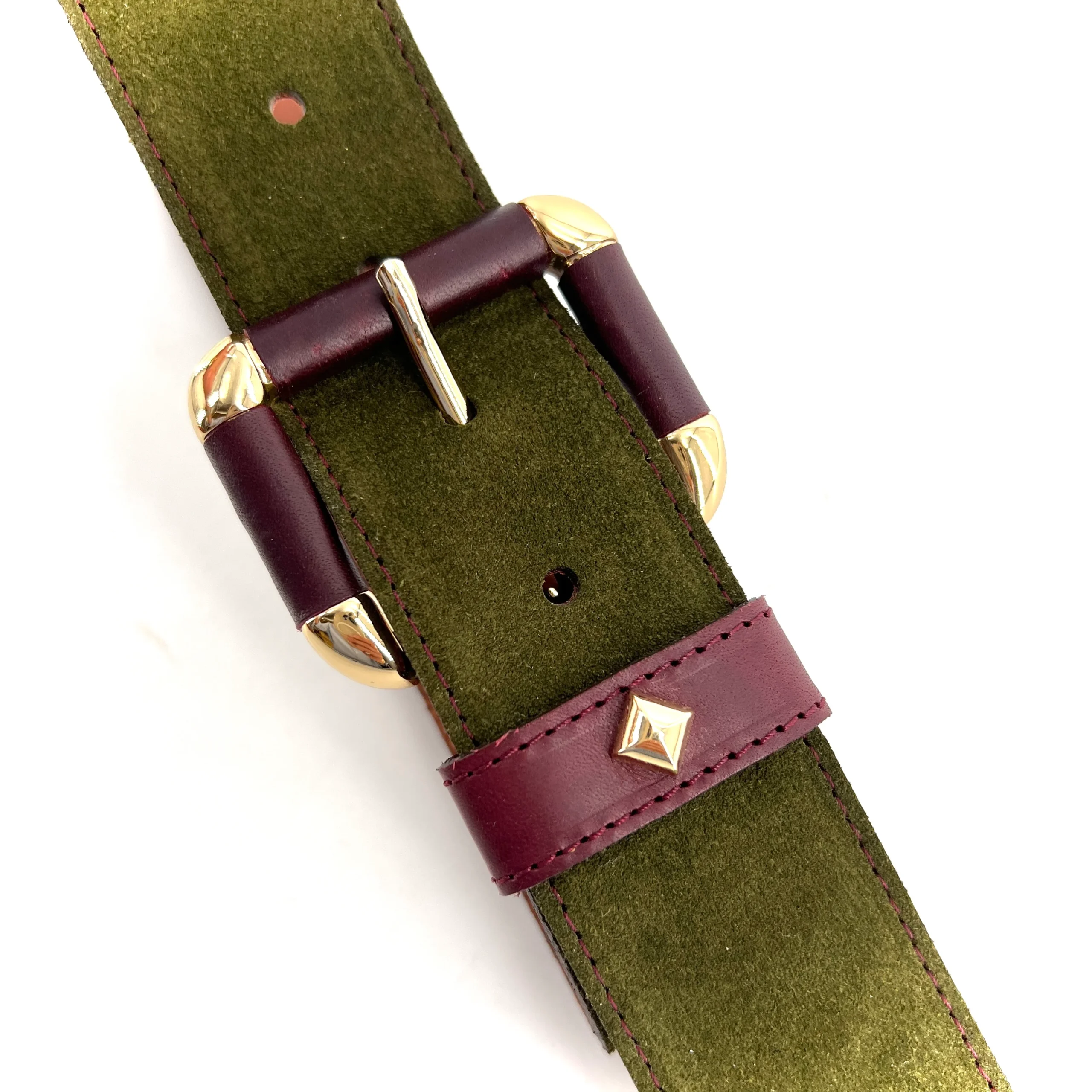 Ceinture LA COULOMB en Velours Leccio et Cuir Bordeaux