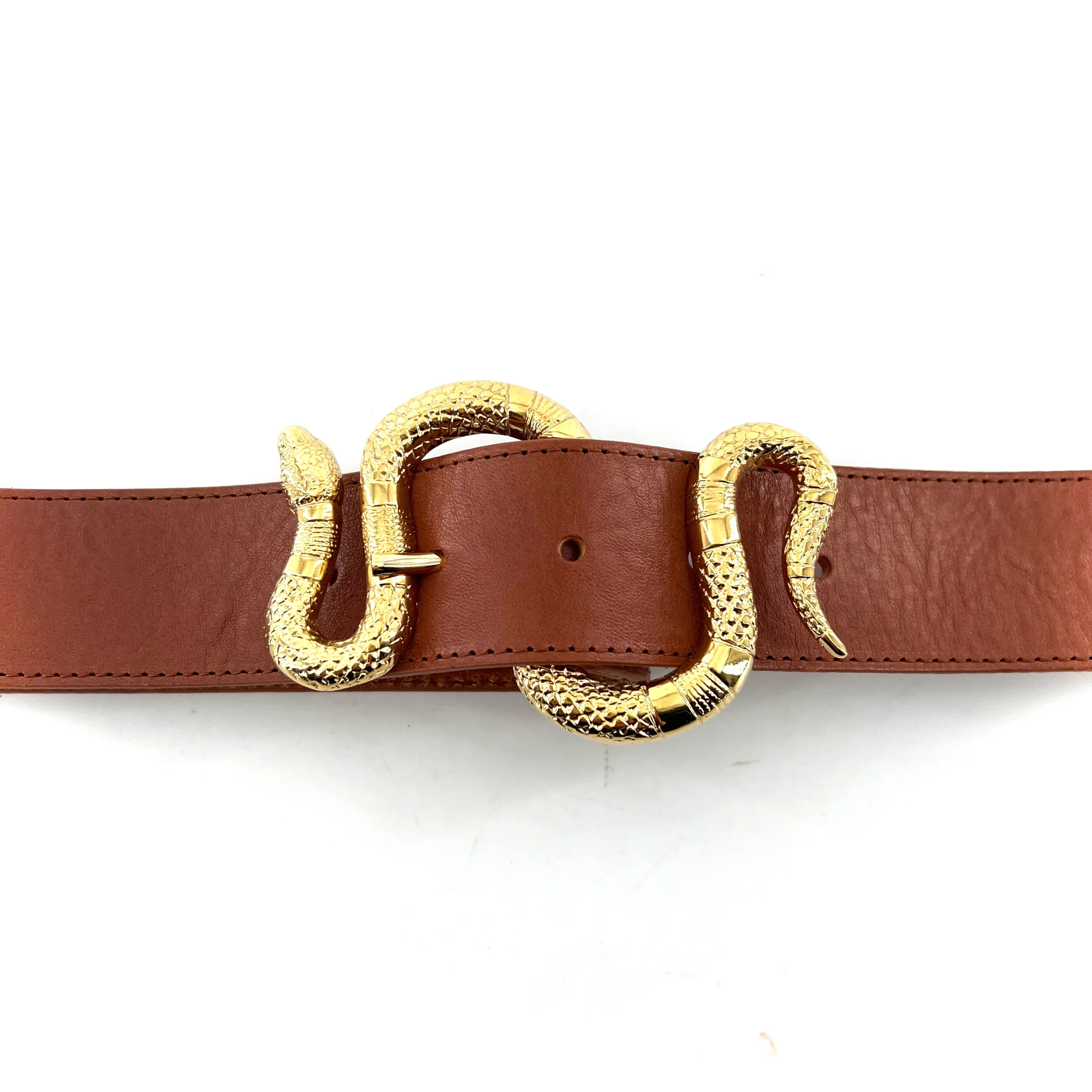 Avec sa large boucle dorée serpent, cette ceinture est un véritable accessoire.