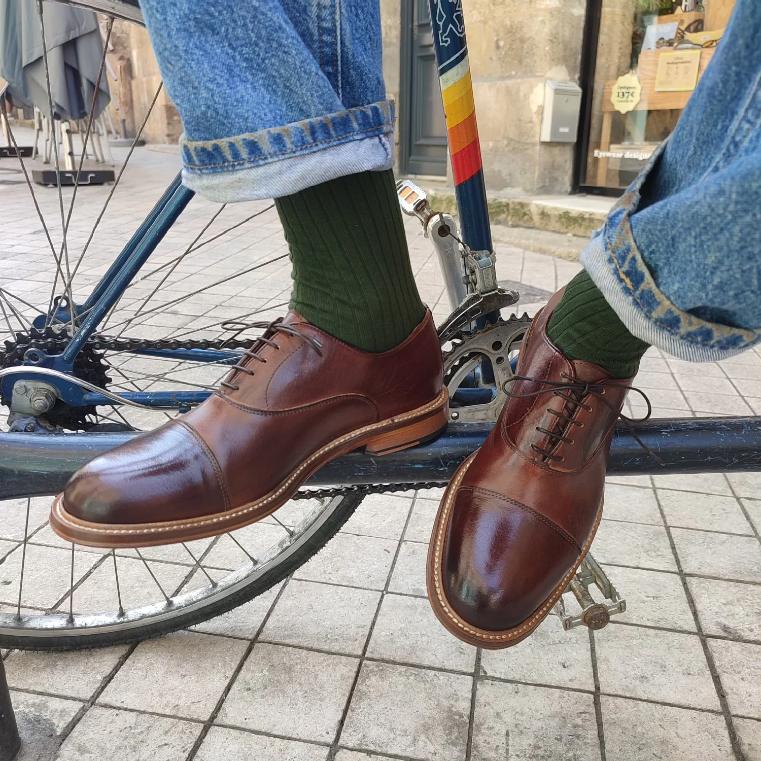 Chaussettes à Rayures Vert / Camel