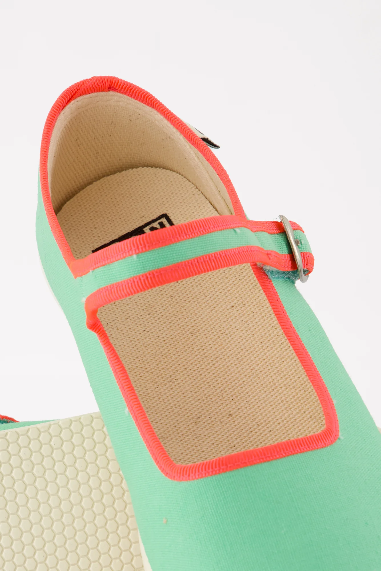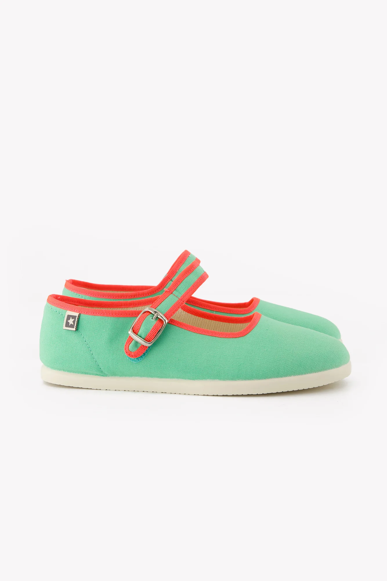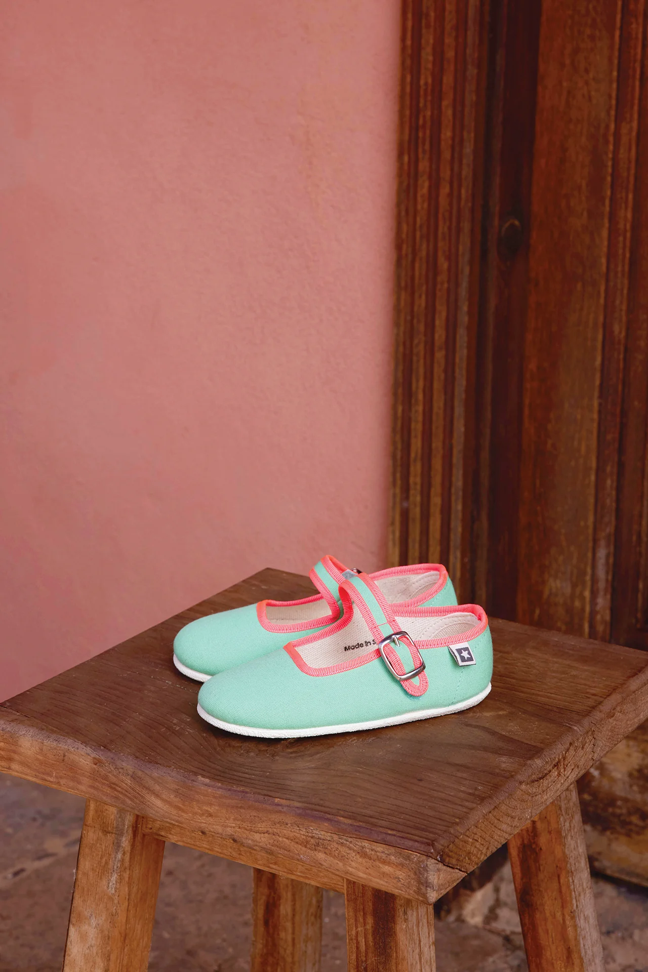 Découvrez les chaussons Jane en menthe à l’eau, véritables complices des petites exploratrices ! Avec leur bride réglable et leur forme emblématique Bonton, ils sont parfaits pour des aventures cocooning à la maison. Fabriqués en 100% coton, ils enveloppent de douceur les pieds des juniors ! À associer avec un pyjama tout doux pour un look relax et chic dans l’esprit « Coco chill ».