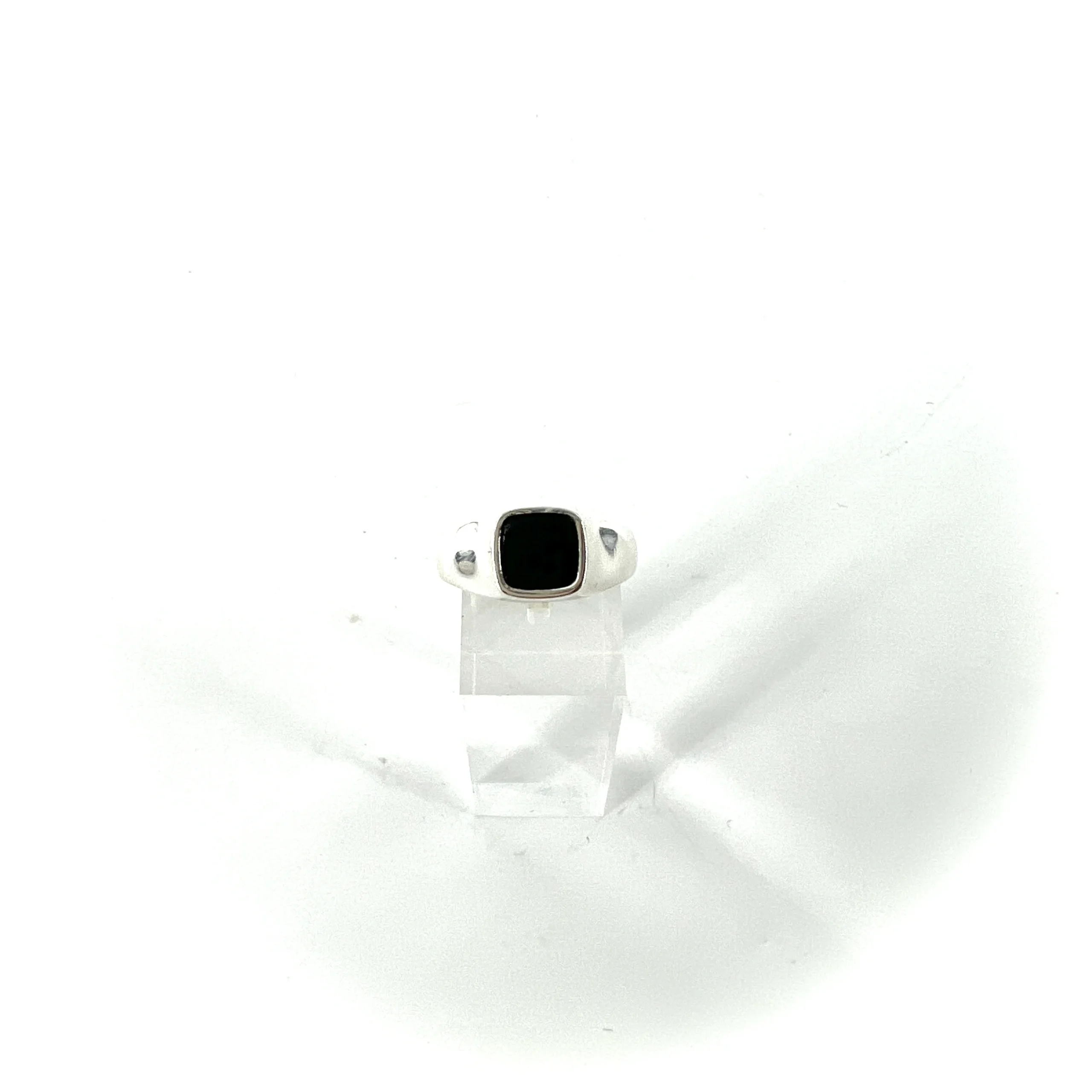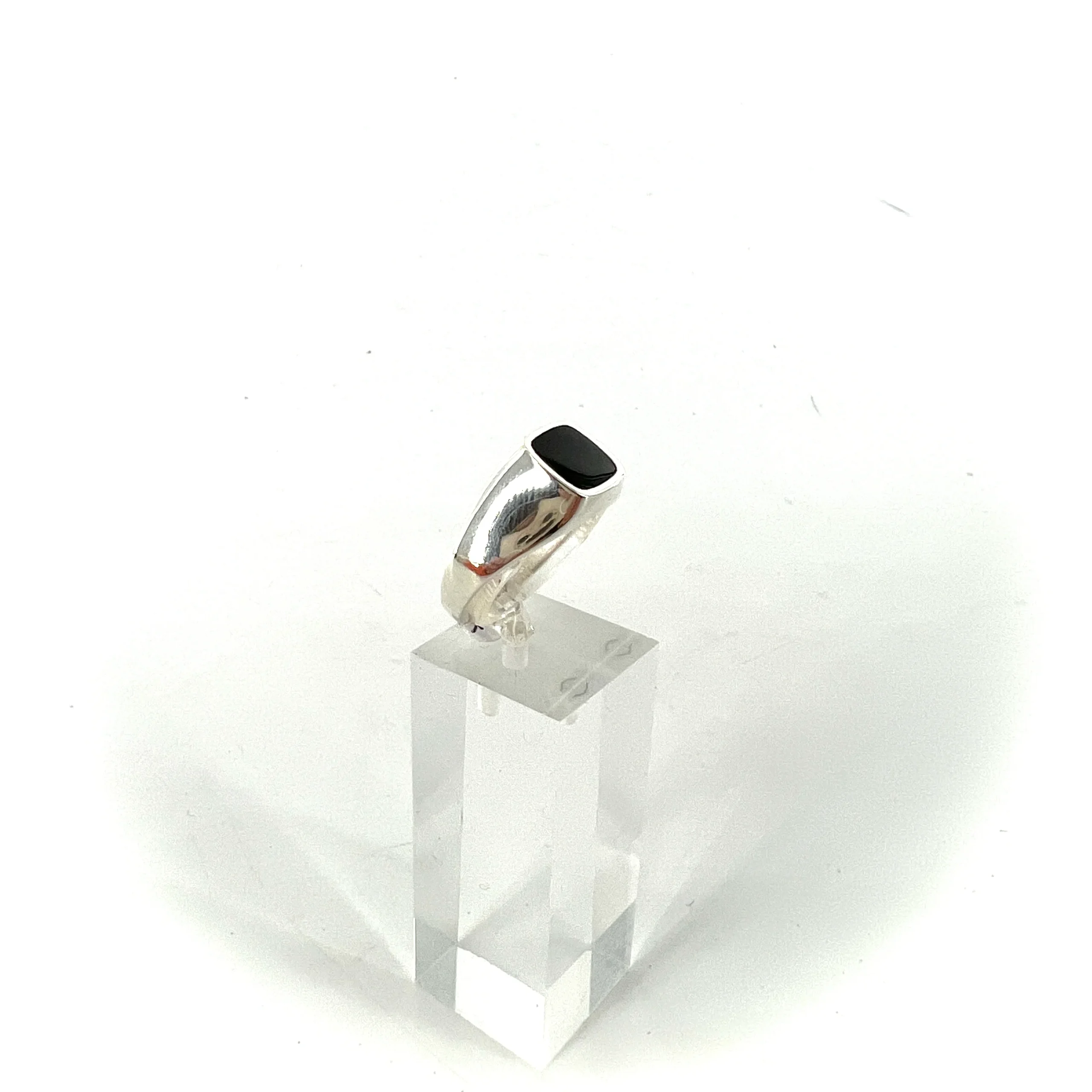 Simple chevalière en Argent 925 ornée d’un Onyx Noir carré.