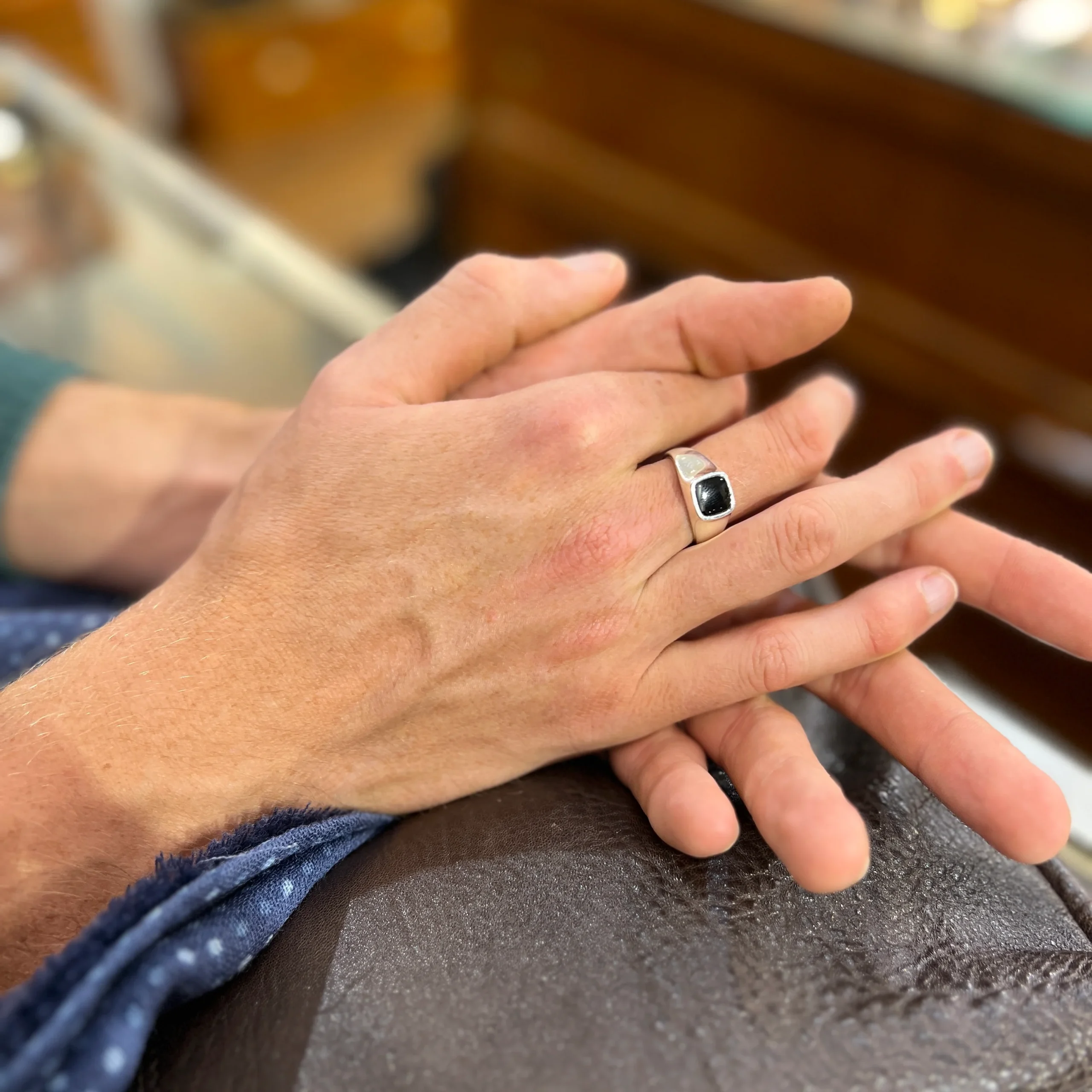 Chevalière Carrée en Argent et Onyx Noir
