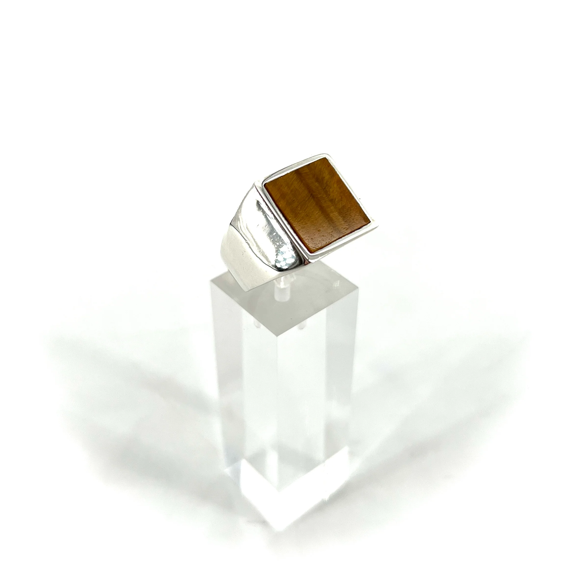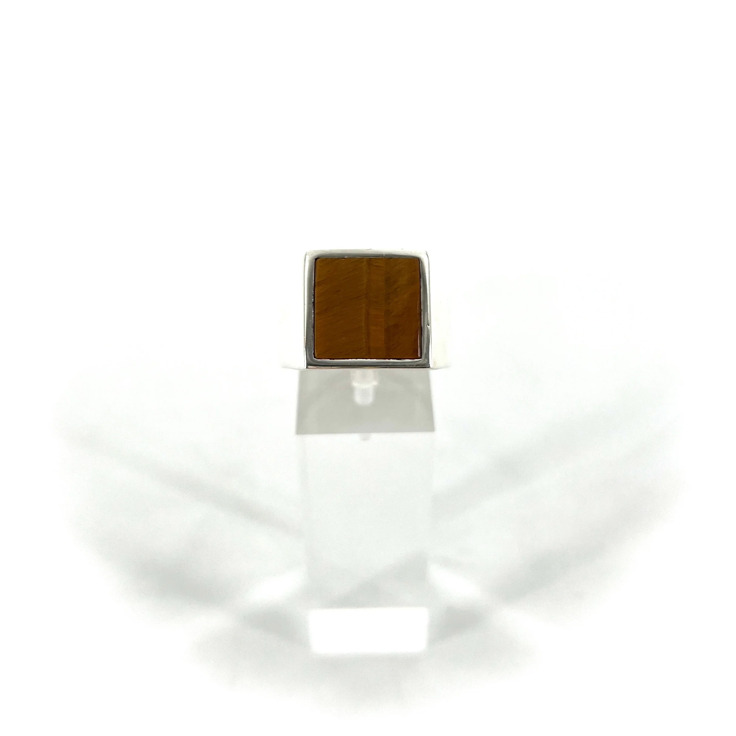 Chevalière Carrée en Argent Lisse et Oeil de Tigre