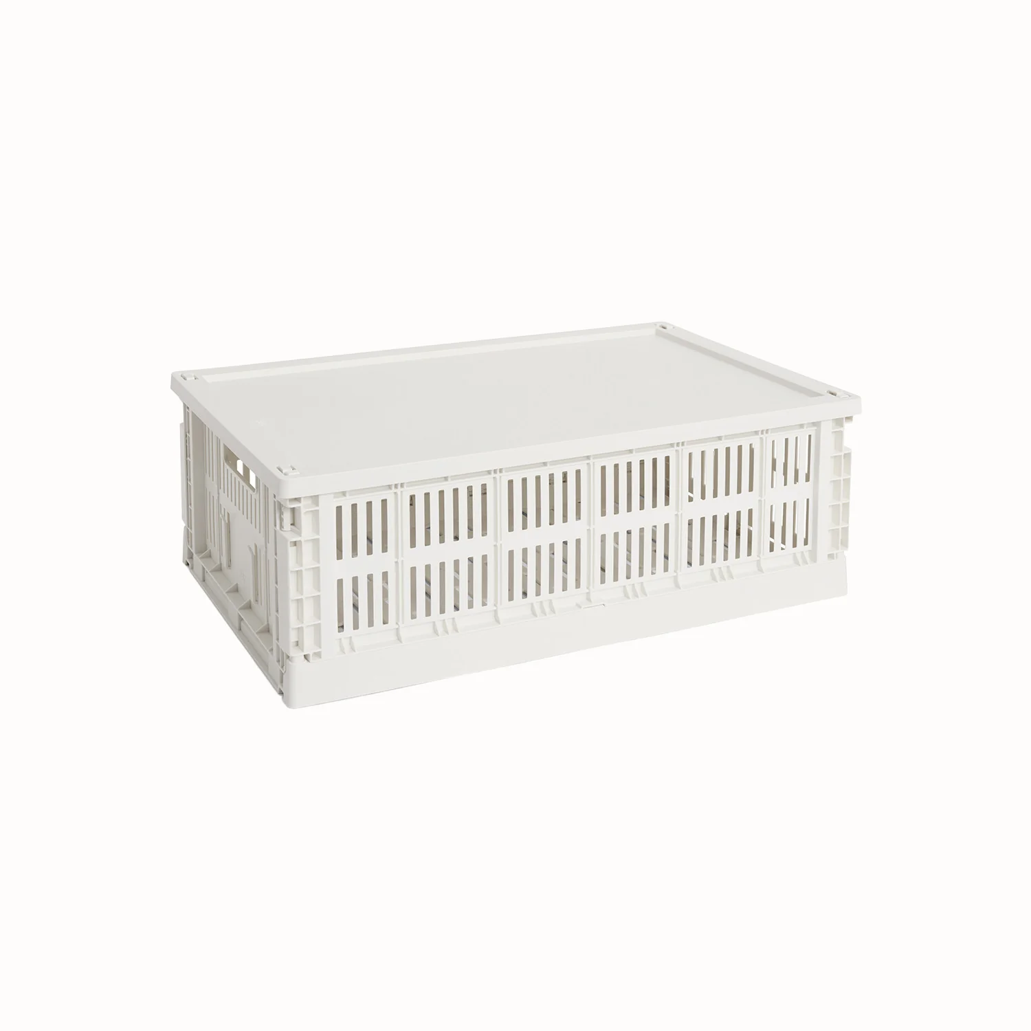 Optimisez votre rangement avec les couvercles HAY spécialement conçus pour les cagettes Color Crates Large. Fabriqués en plastique 100 % recyclé, ils s’adaptent parfaitement aux caisses et permettent de dissimuler leur contenu avec élégance. Que vous les utilisiez seuls ou empilés, ils transforment vos cagettes en boîtes fermées, idéales pour organiser la cuisine, la salle de bain, le bureau ou la chambre des enfants.