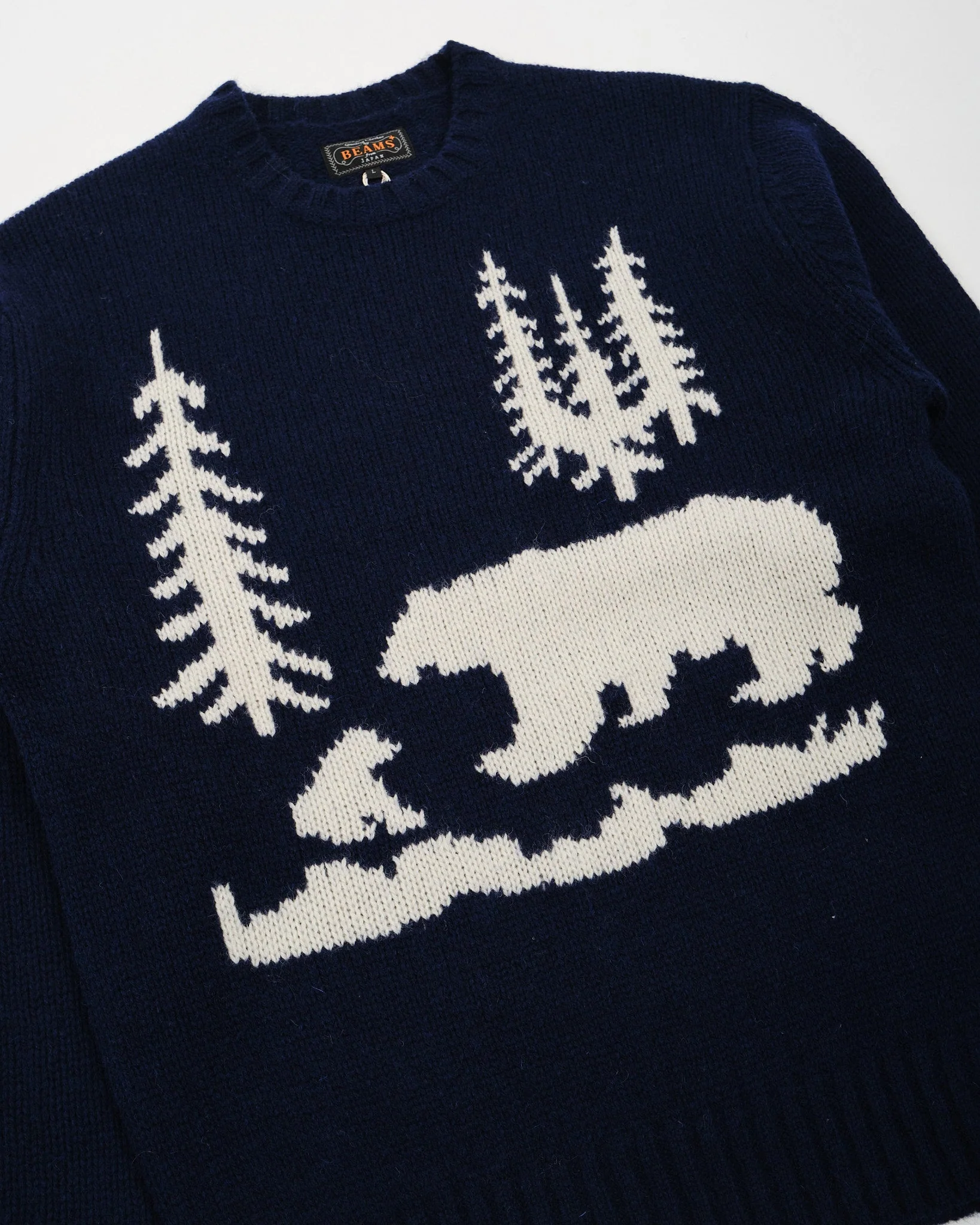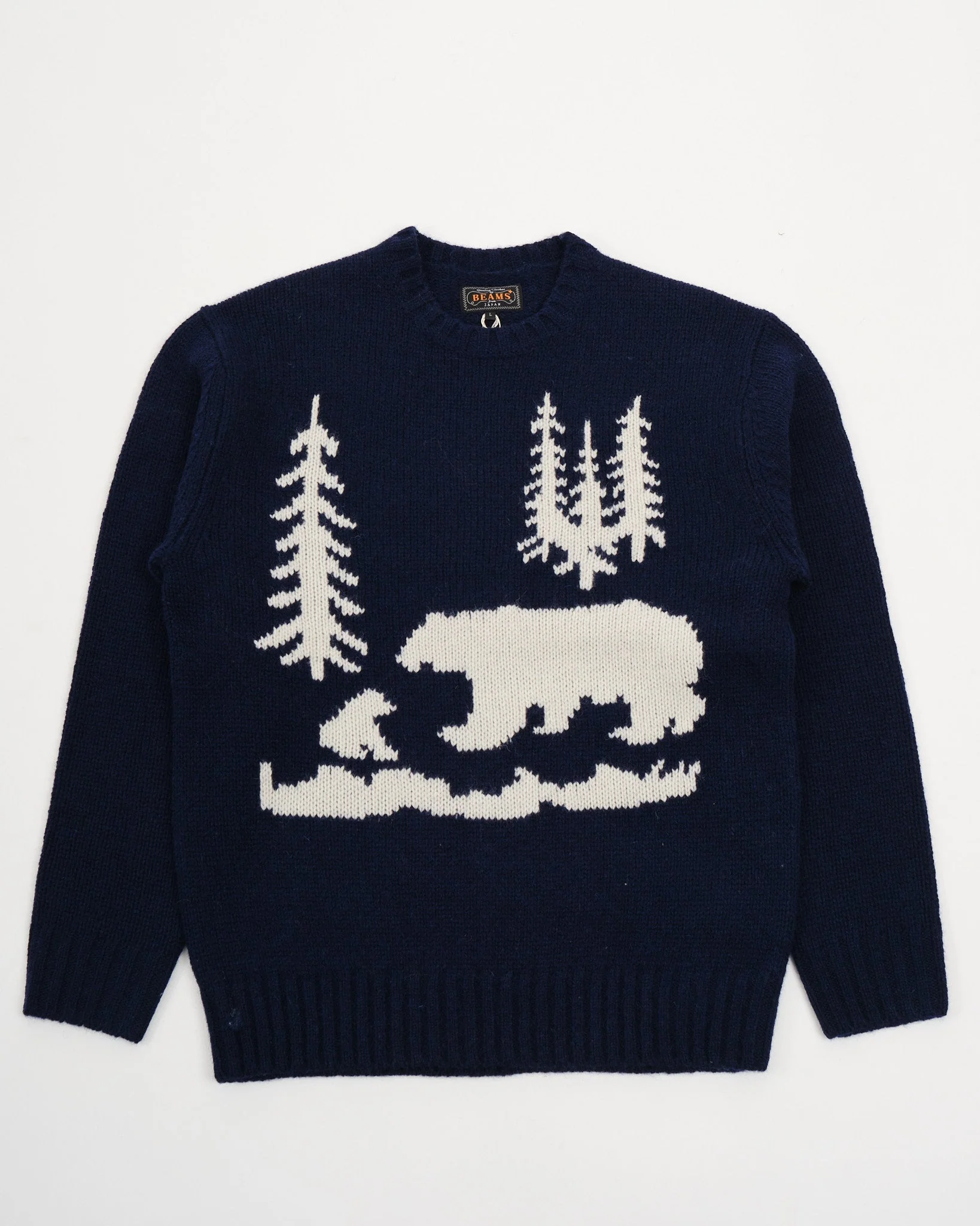 Crew Neck Intarsia 3G Navy Bear