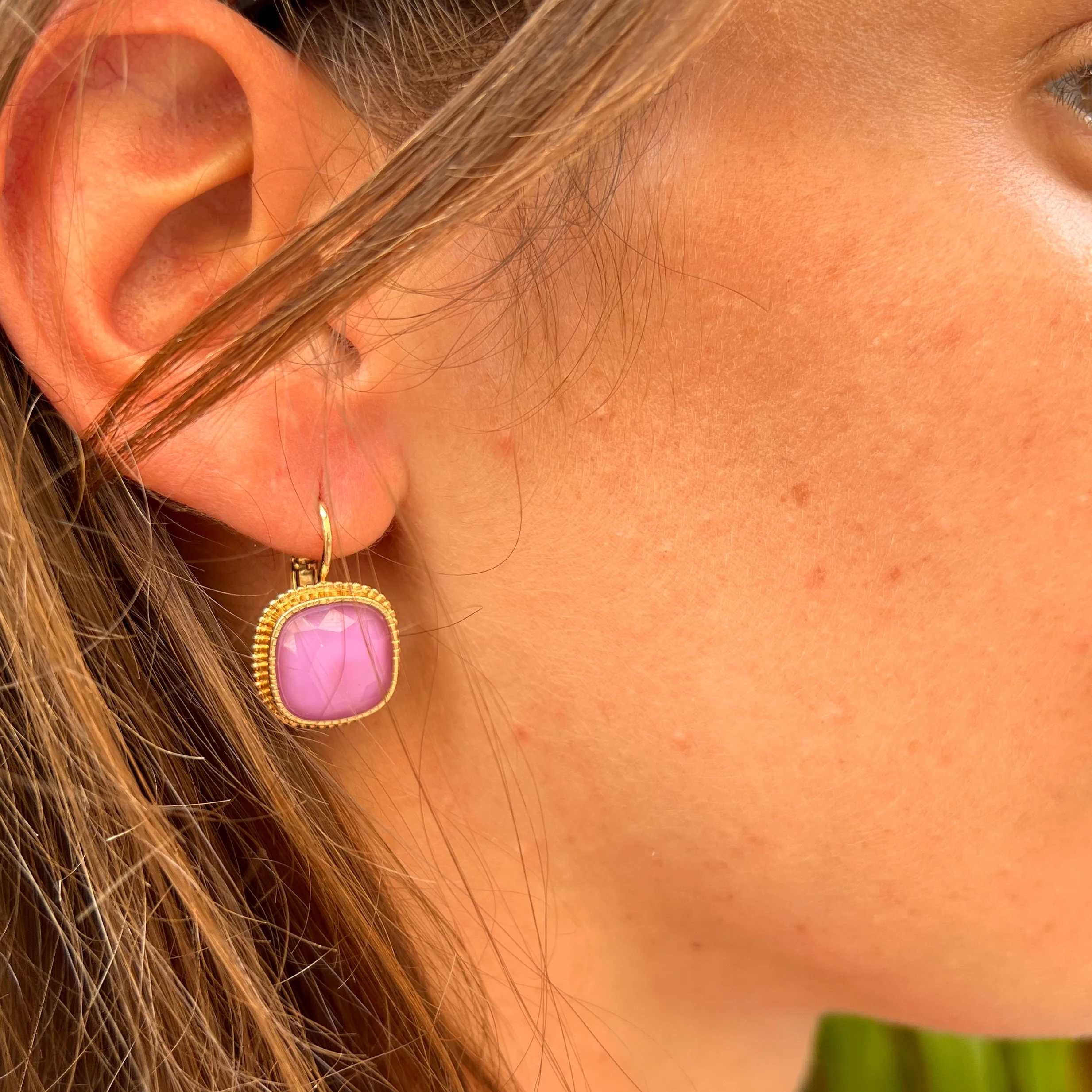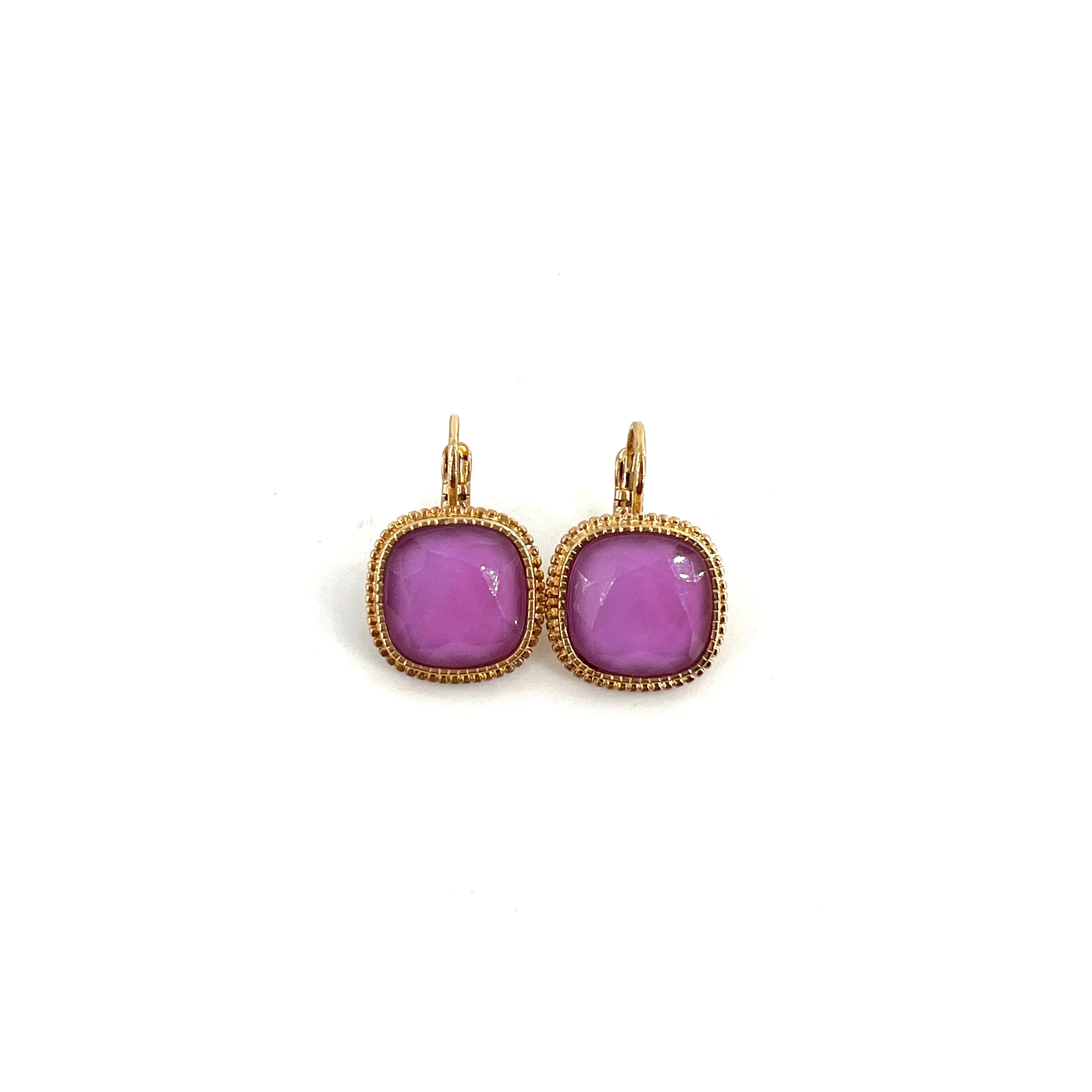 Ces dormeuse se composent d’un cabochon en pâte de verre violet.