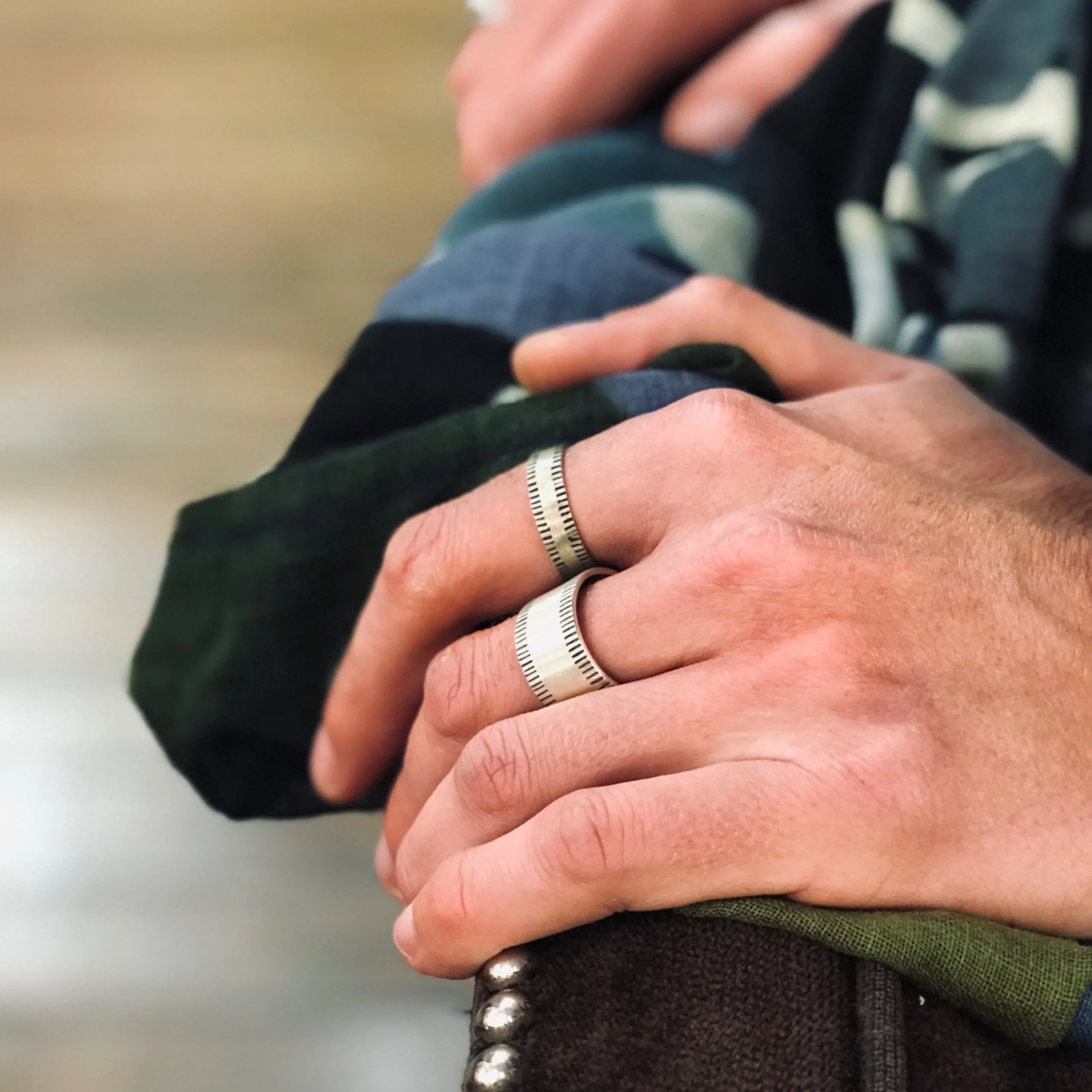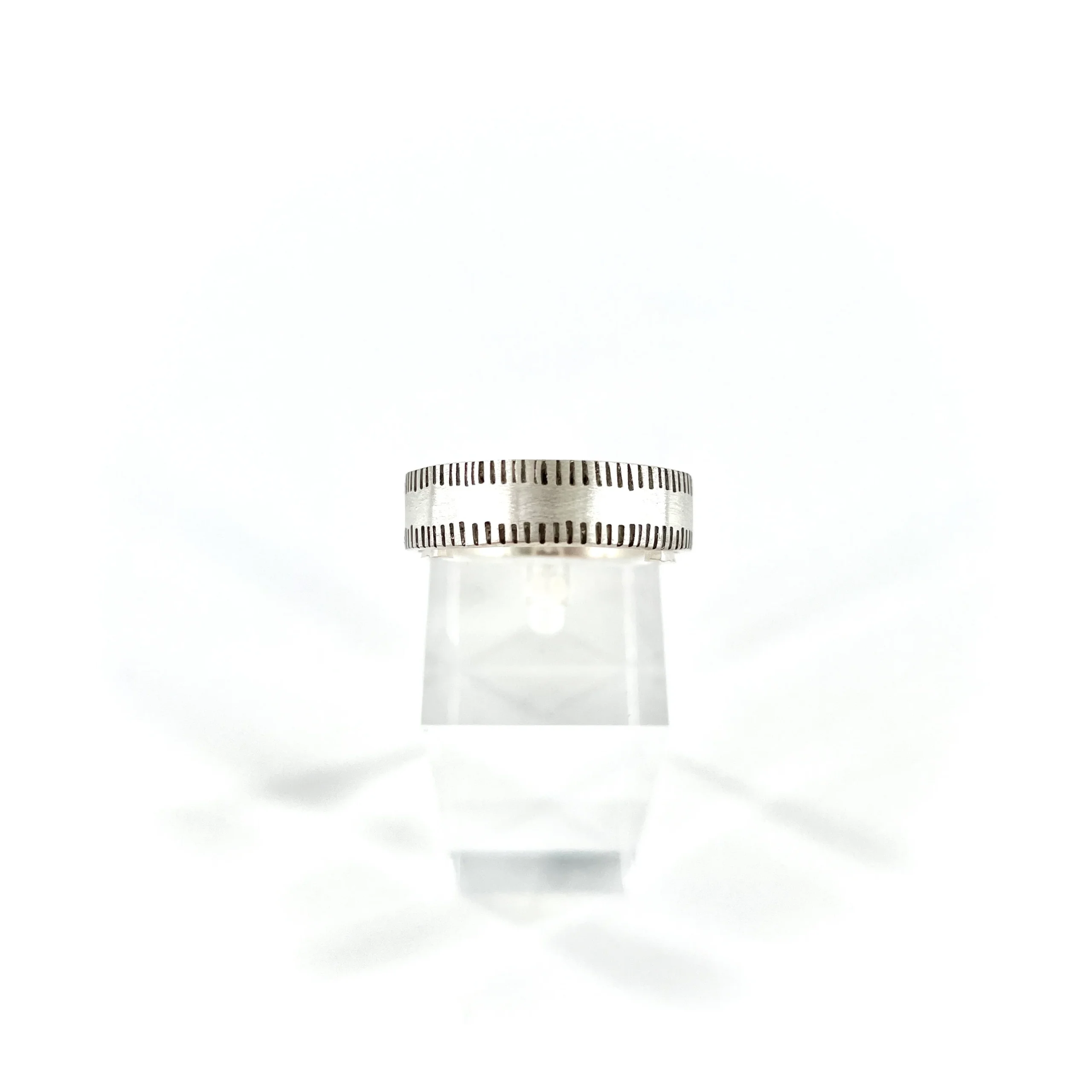 Fin et simple anneau en Argent 925 mat, décor strié.