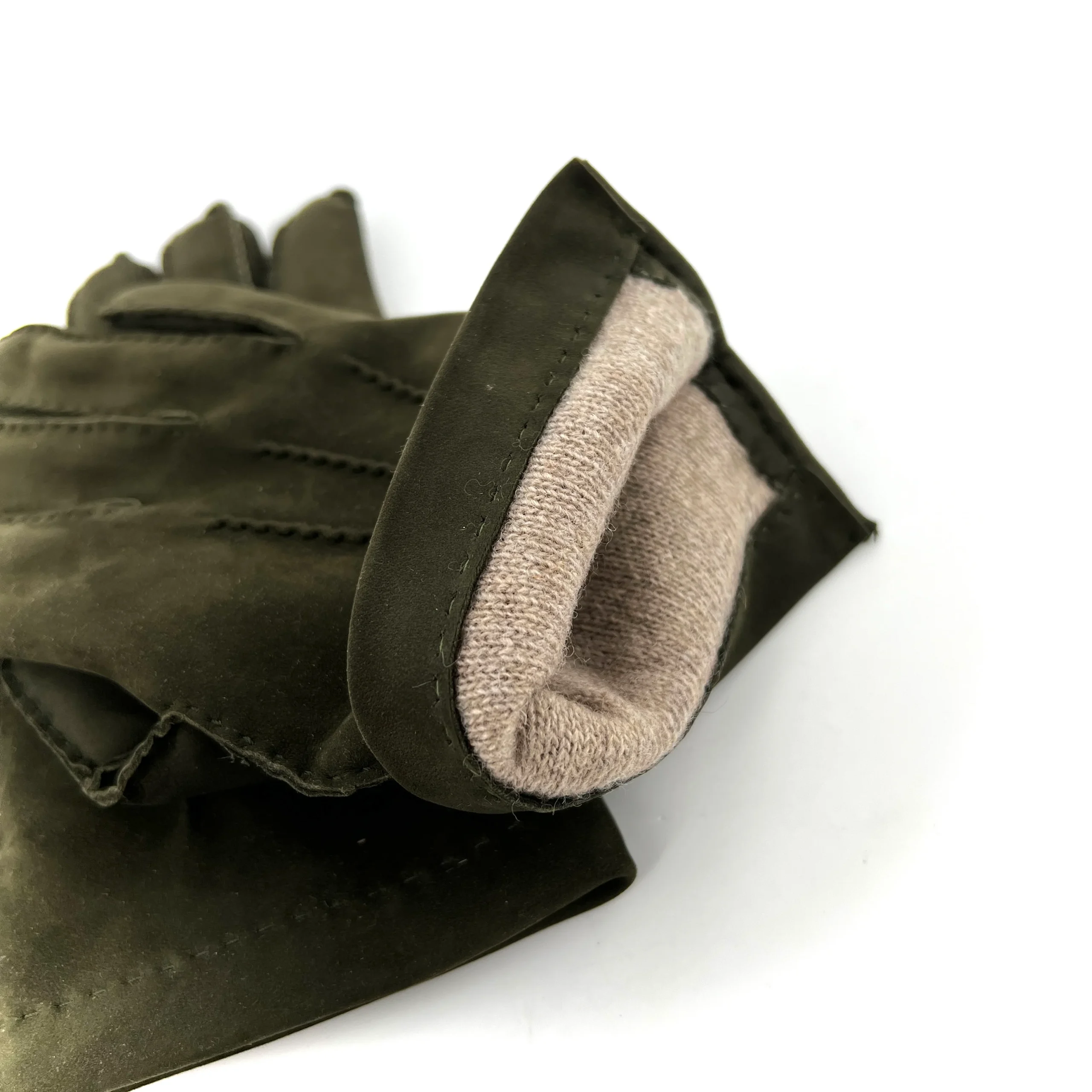 Gants en Cuir Nubuck Vert Foncé Doublé Laine