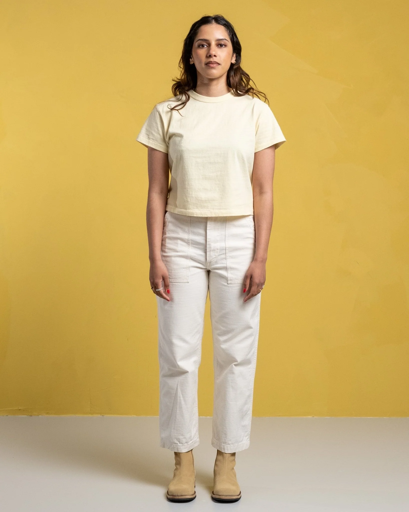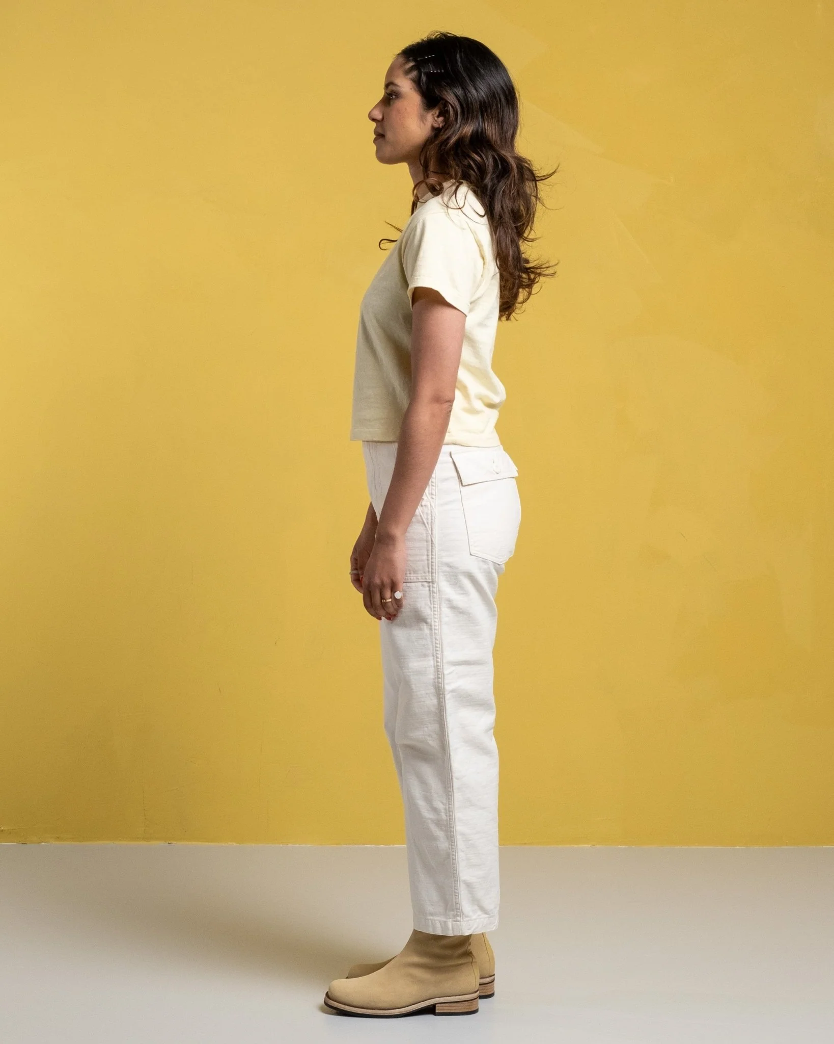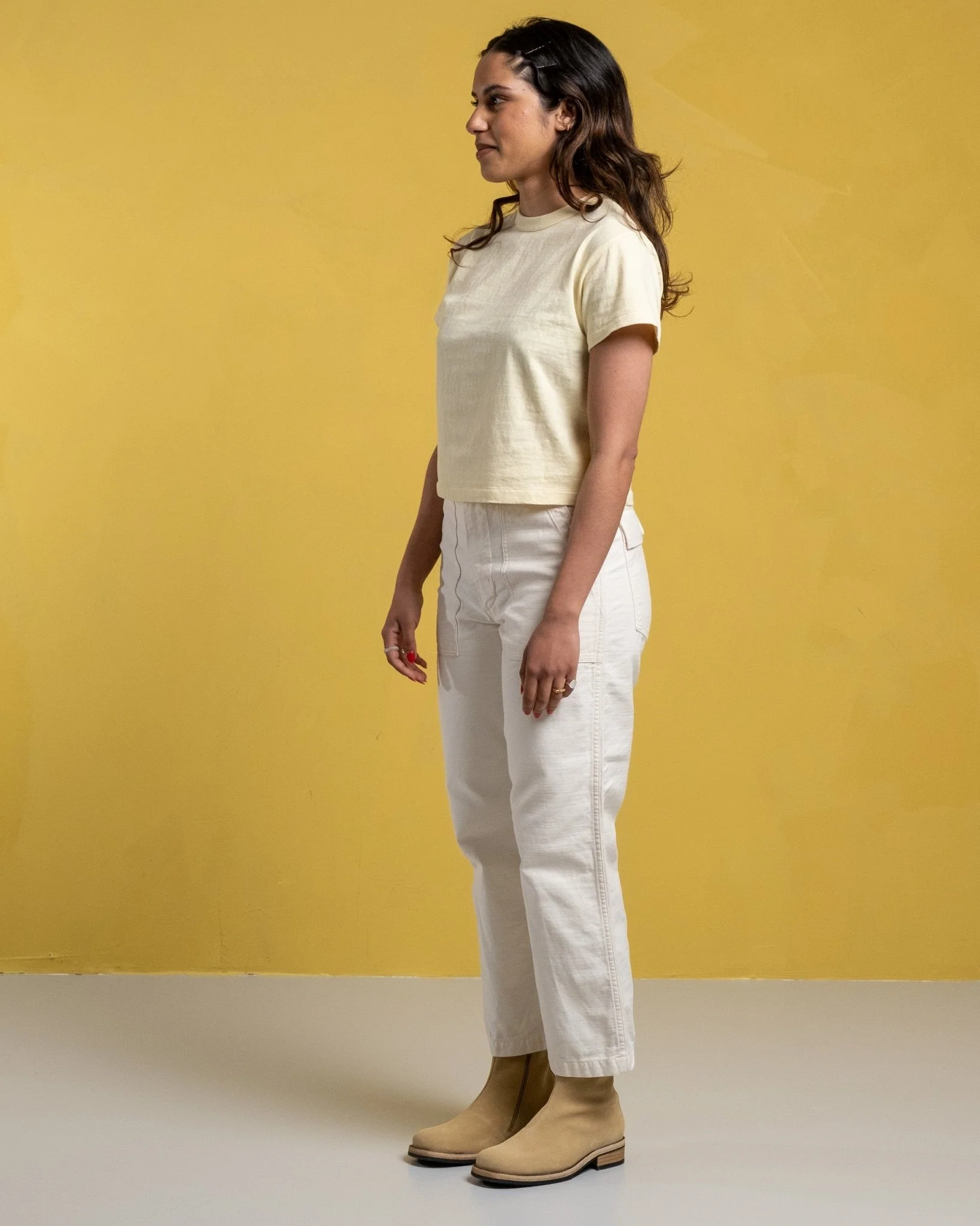 Hi’aka SS T-shirt pastel jaune de Sunray Spirit. Les t-shirts Sunray ont un ajustement traditionnel inspiré de la sensation des années 50. Longueur détendue et recadrée avec un ajustement régulier. Le collier, la conception des côtes et les tissus sont également traditionnels. 260 g. Fait au Japon.