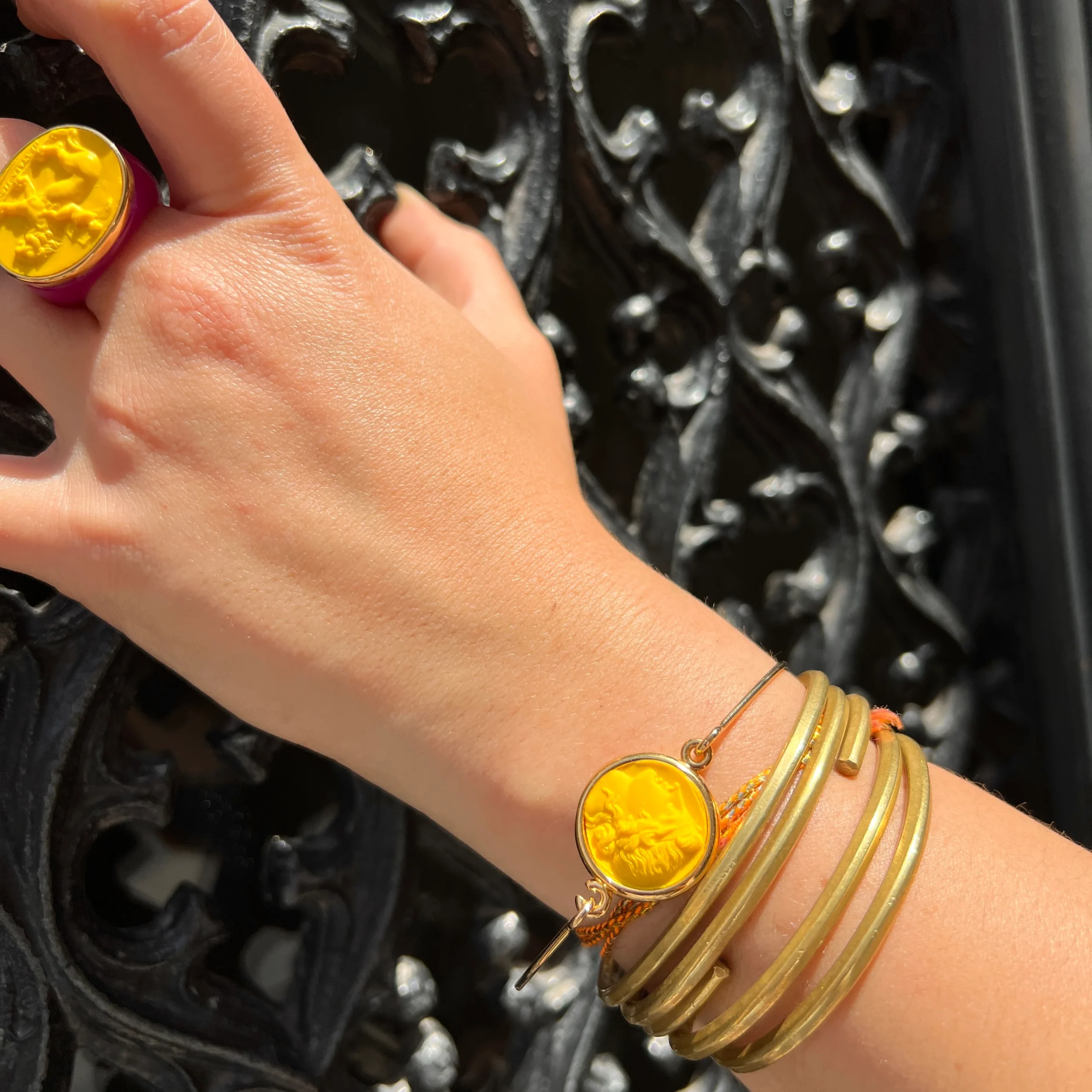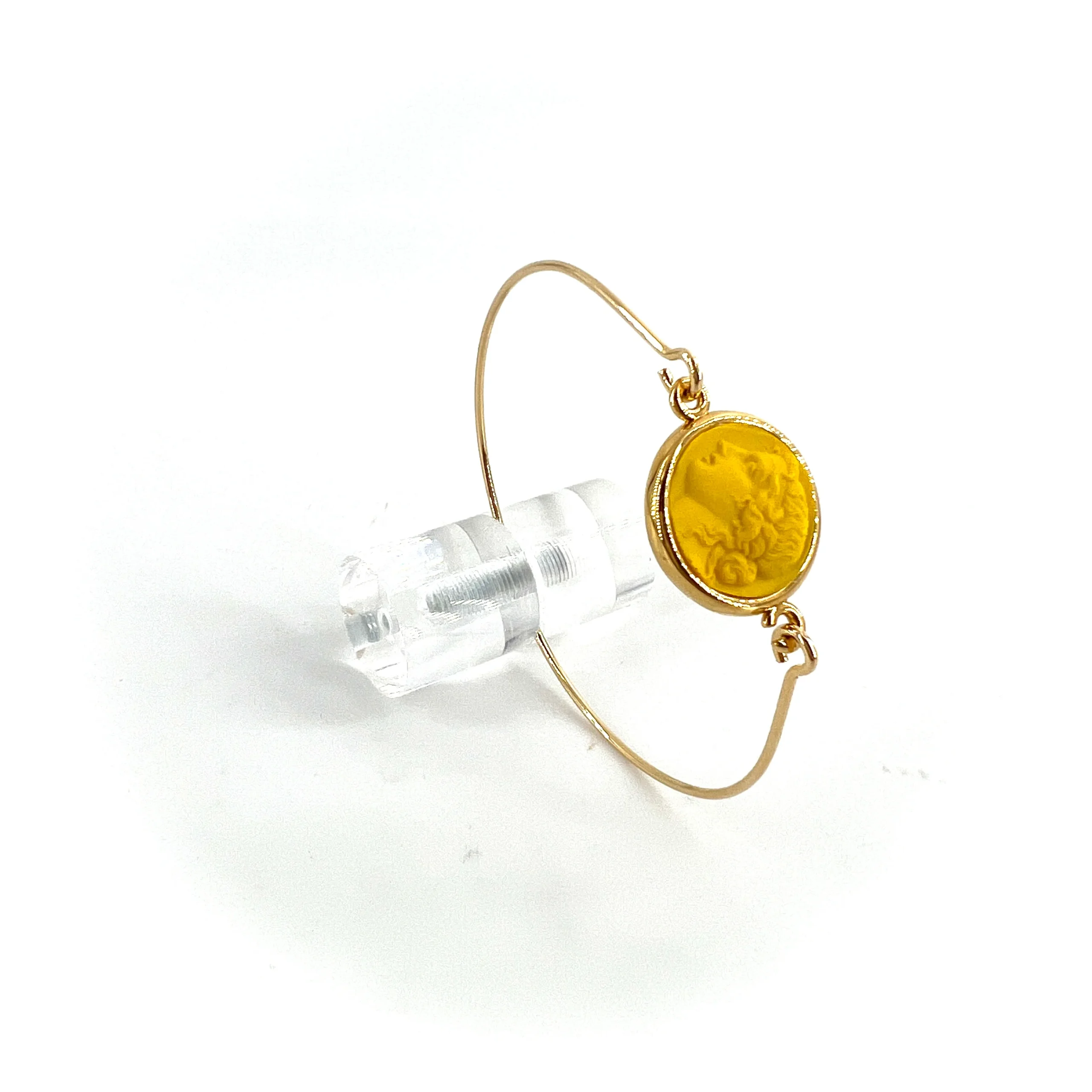 Jonc en Plaqué Or Motif Statue Grecque en Résine Jaune