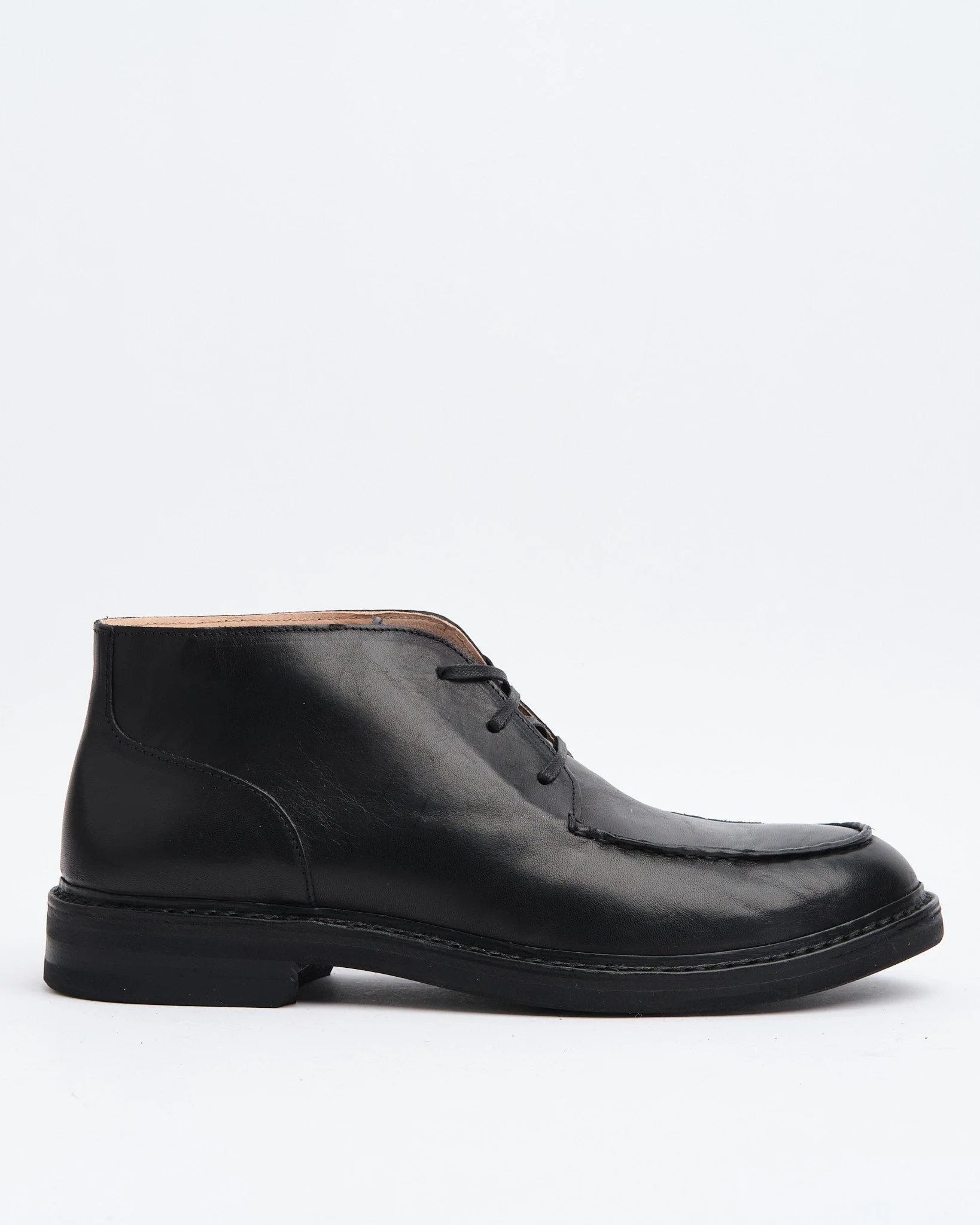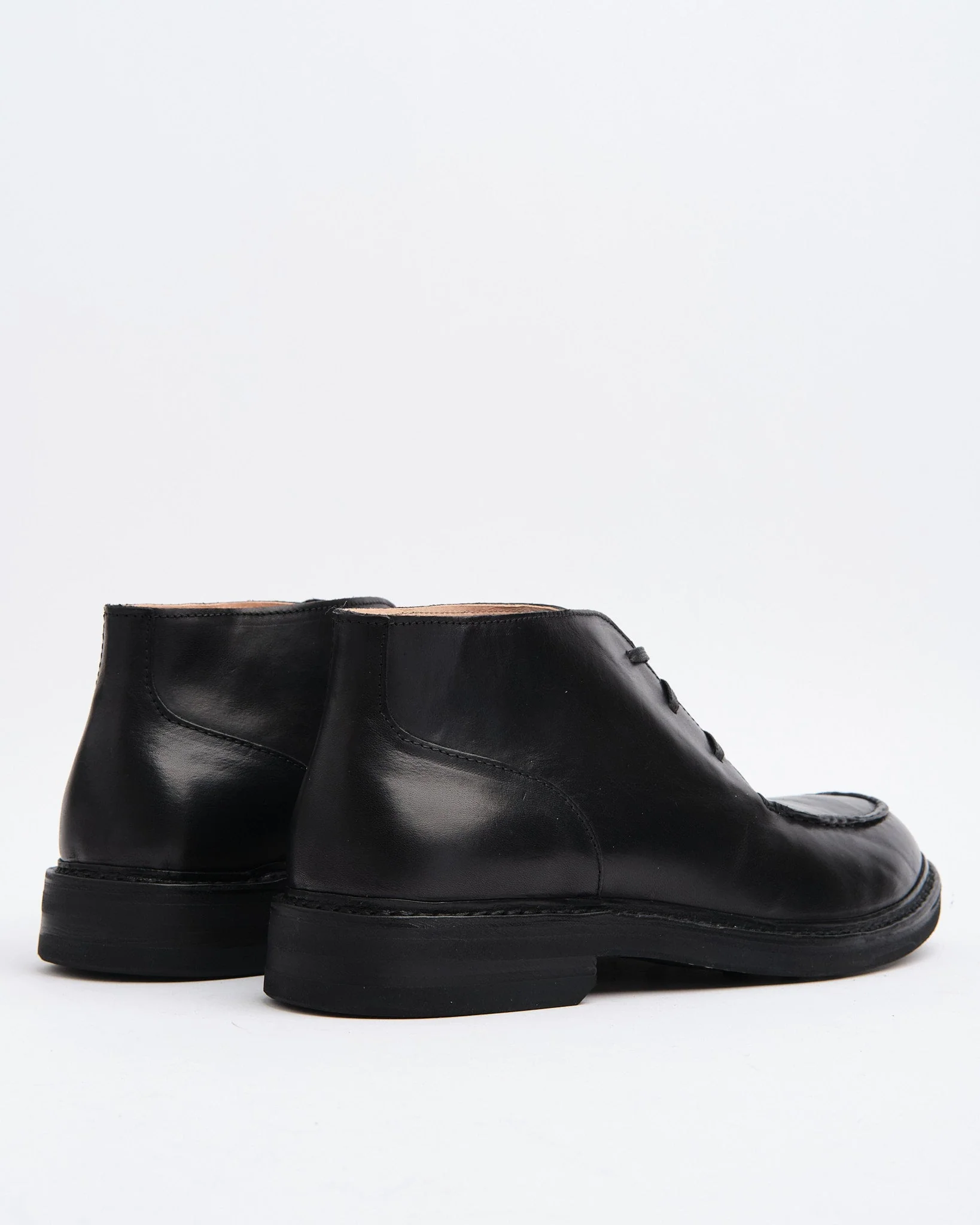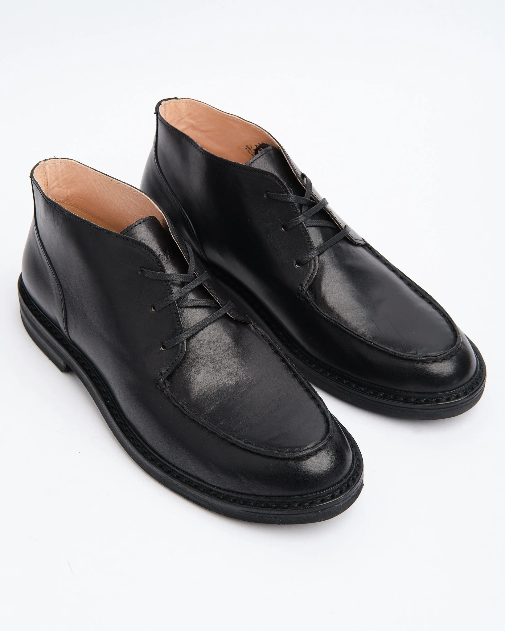The Kofaflex 900 by Astorflex is a sleek moc-toe chukka boot, handmade in Mantova, Italy, where the brand has been perfecting footwear for over a century. Crafted from naturally tanned leather in a deep black “Nero” finish, it embodies durability, comfort, and timeless design.