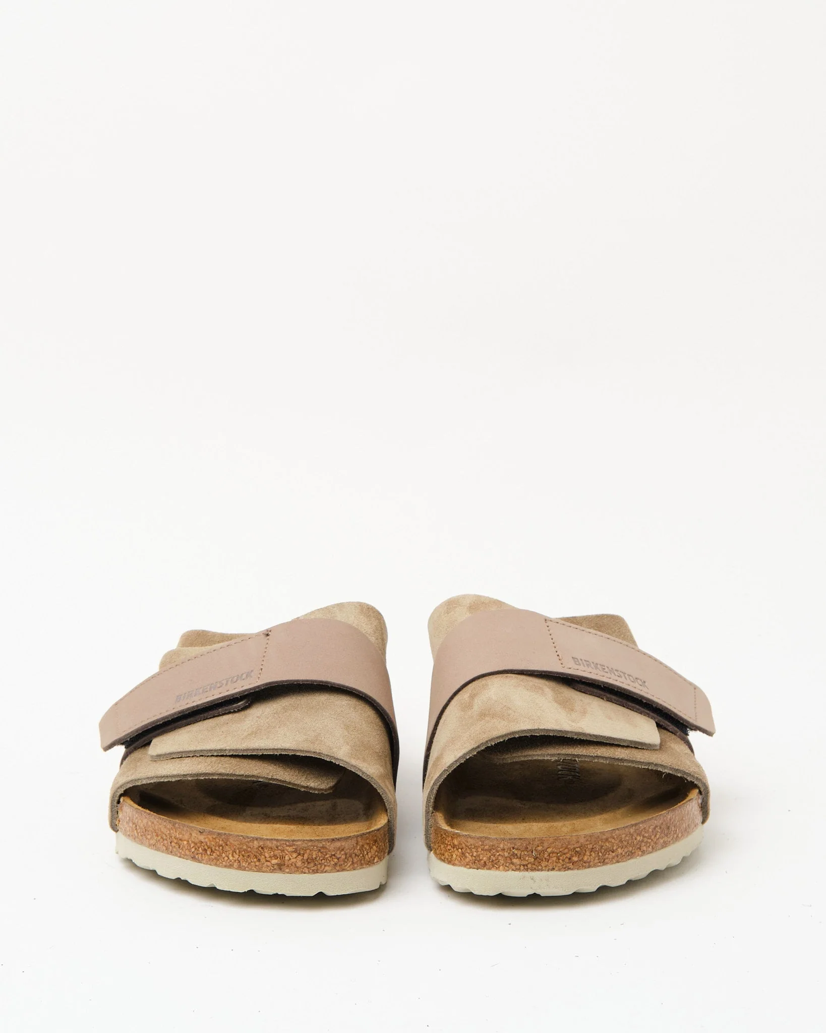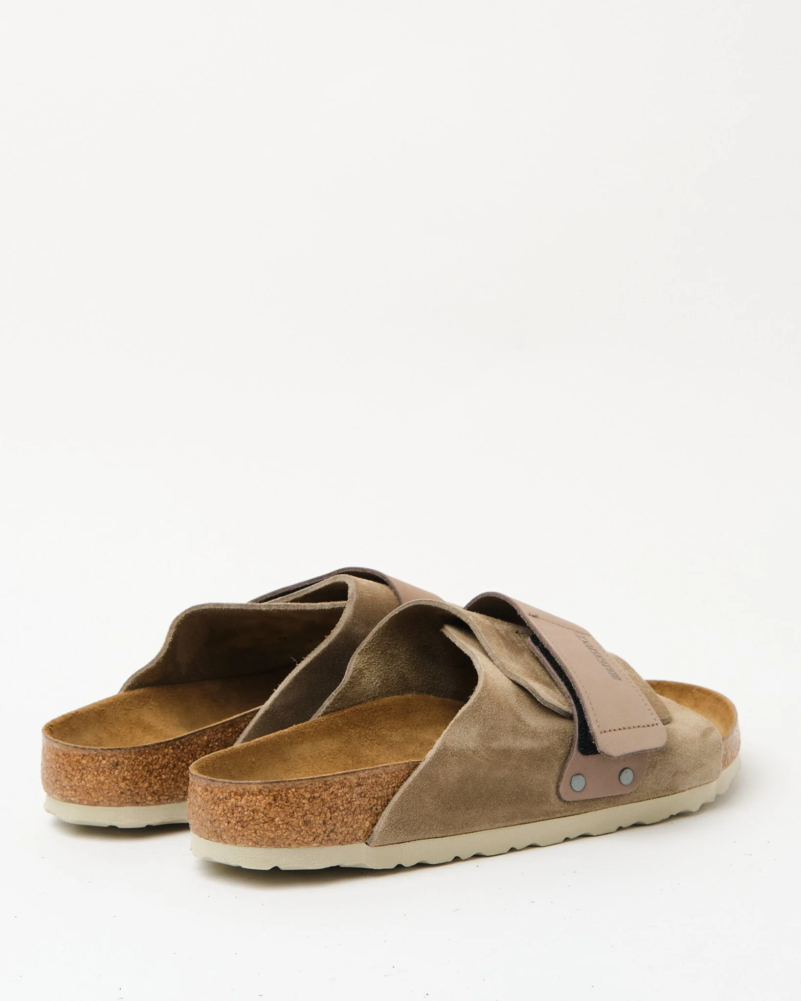 Inspirée par le modèle classique de Zurich, le Birkenstock Kyoto à Taupe frappe un accord avec sa conception compacte et une boucle réglable individuellement pour une stabilité optimale, accentuée de deux rivets décoratifs. Le matériau extérieur est un mélange exquis de daim extra-doux et de cuir nubuck de qualité supérieure, qui s’adapte à votre pied comme une seconde peau.