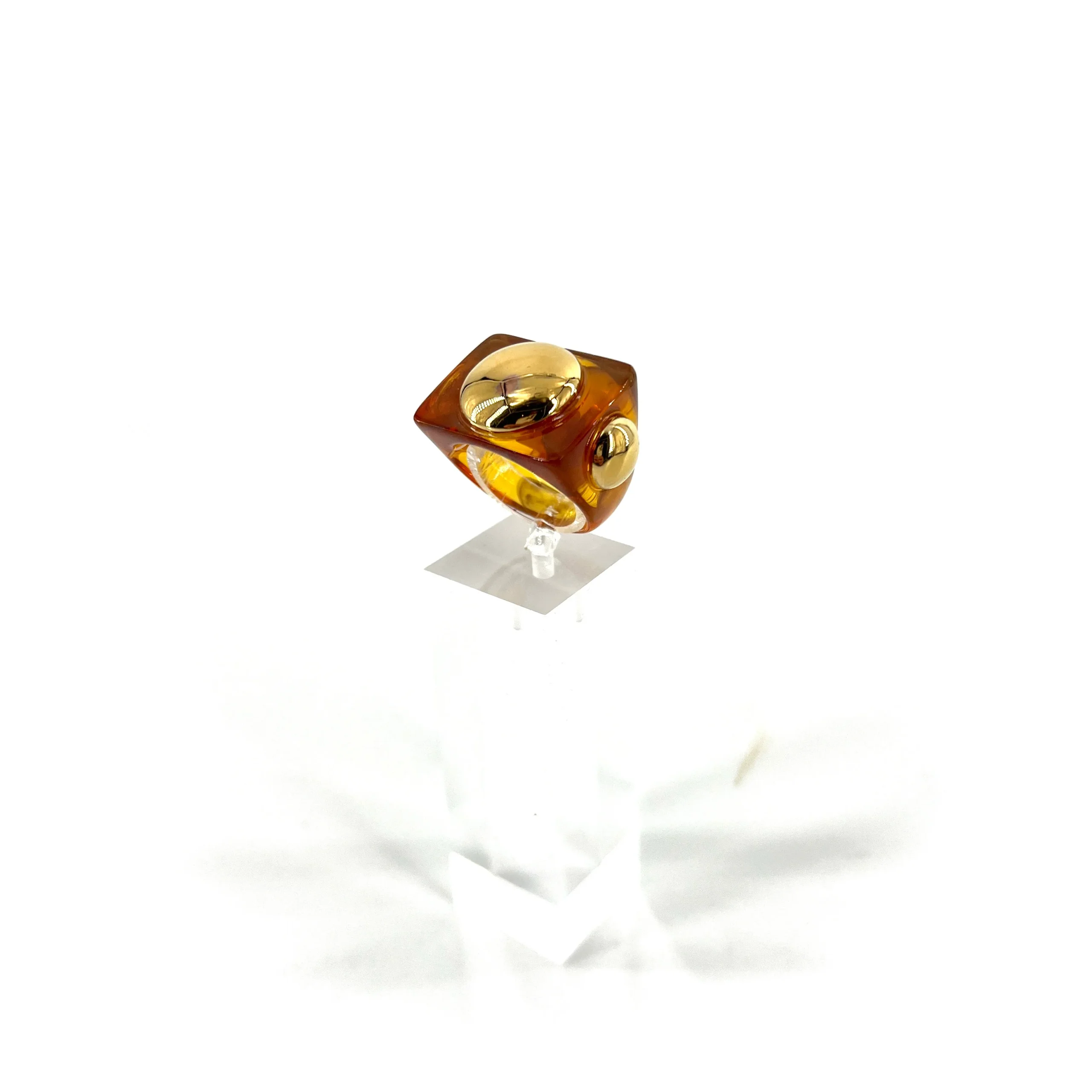 Large Bague en Acétate Tortoise Agrémentée de Trois Cabochons Plaqué Or