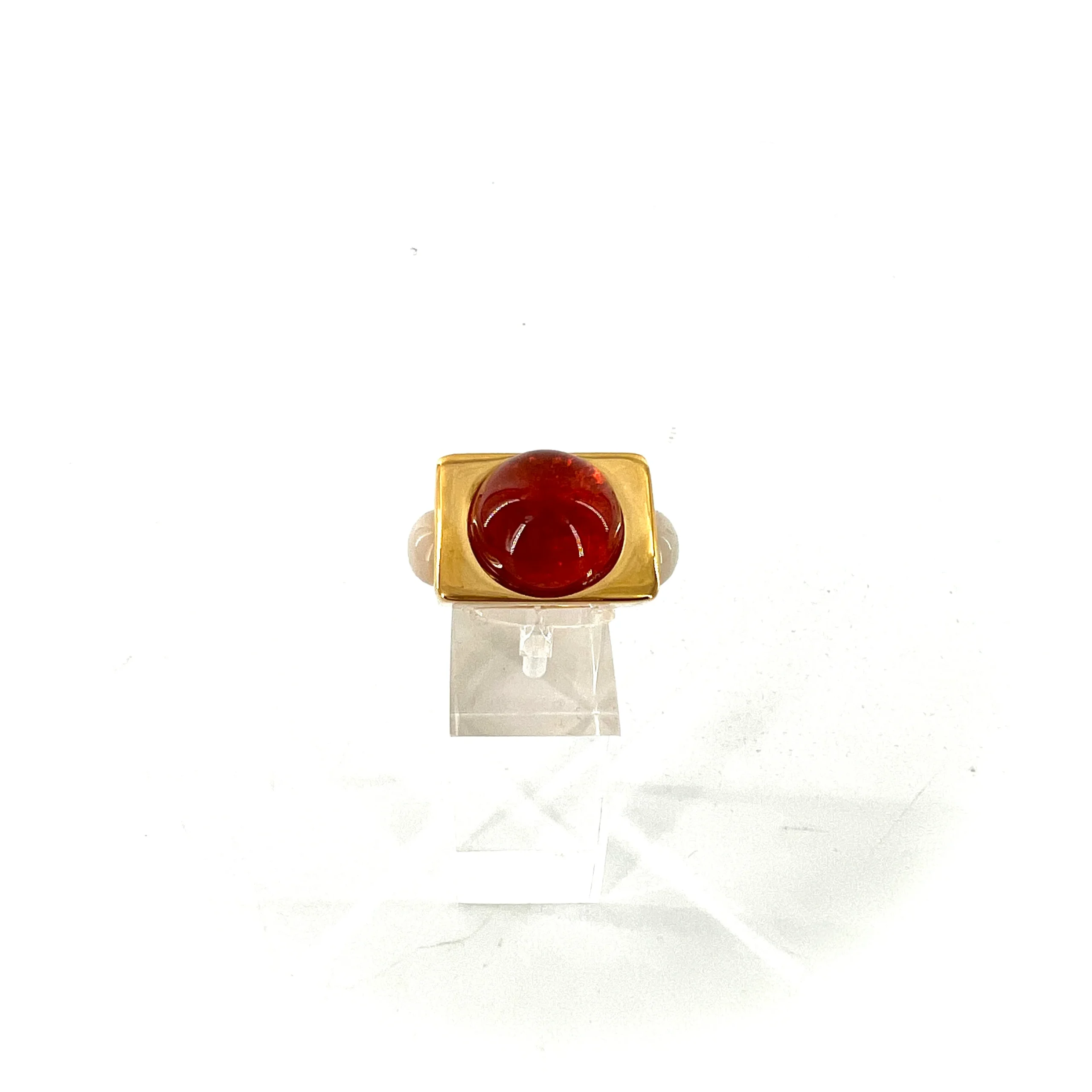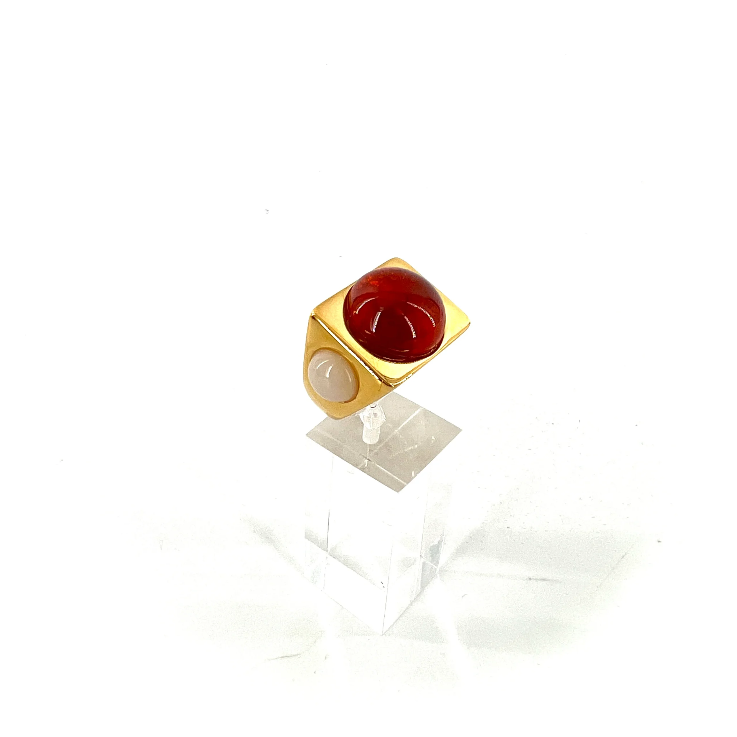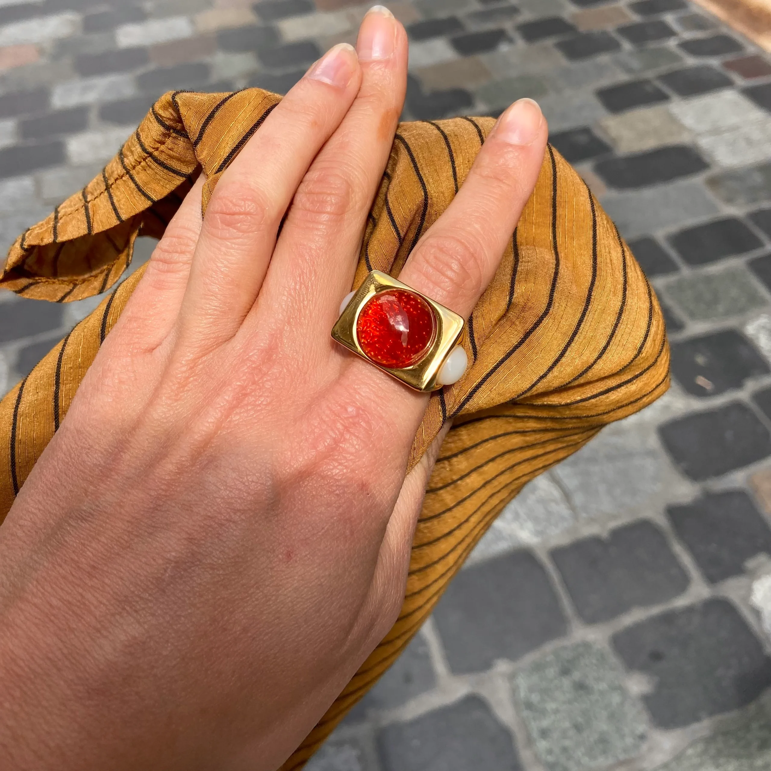 Large Bague en Plaqué Or et Pâte de Verre Brique